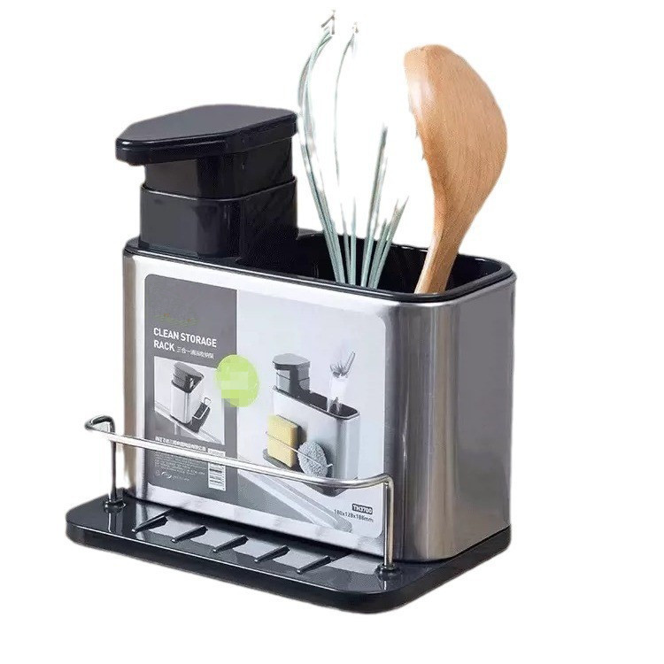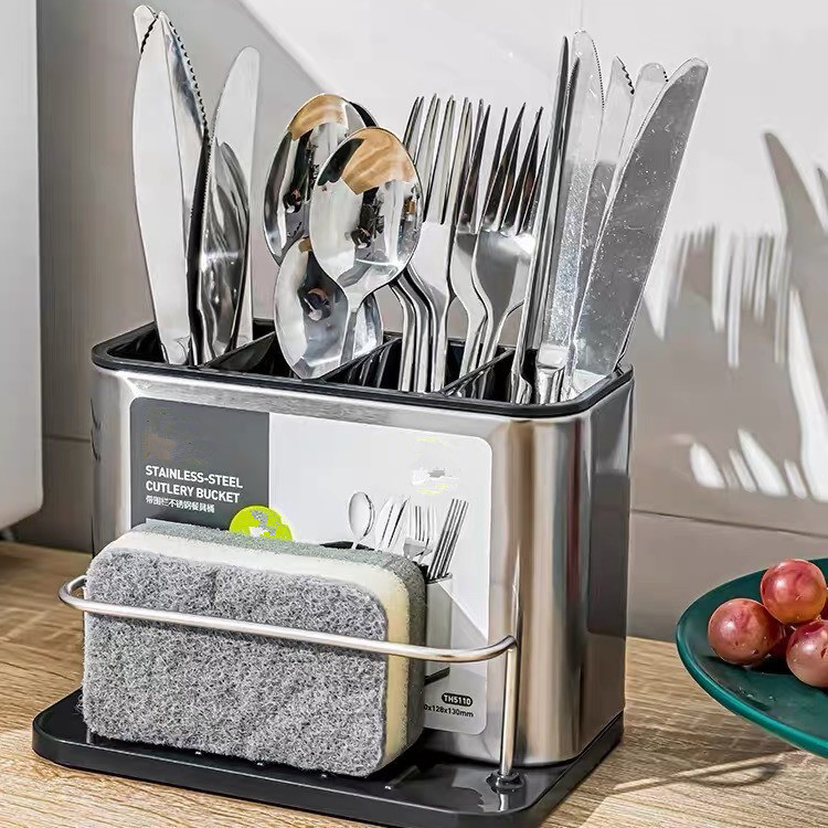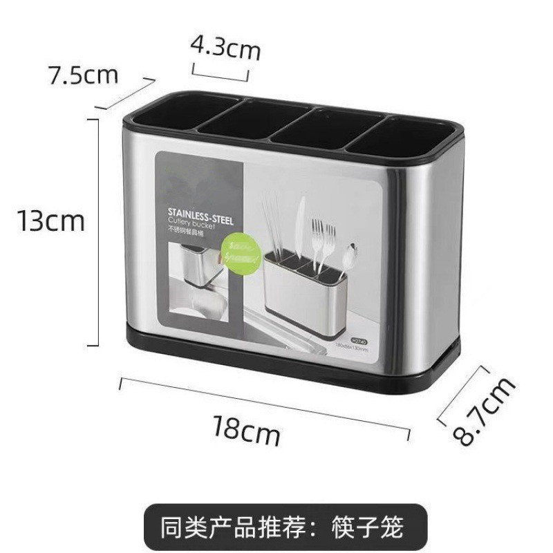 跨境新款三合一厨房家用多功能不锈钢筷子餐具沥水收纳盒筷子笼