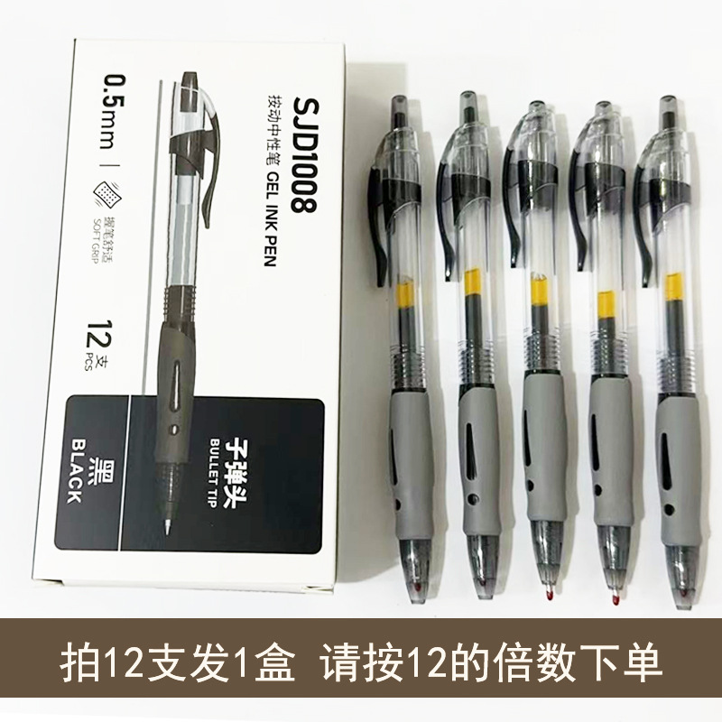 按动中性笔黑色红色GP1008学生学习圆珠笔签字笔办公笔芯文具批发