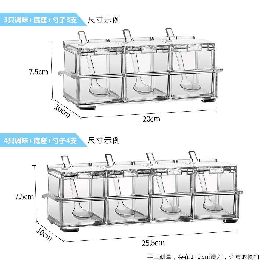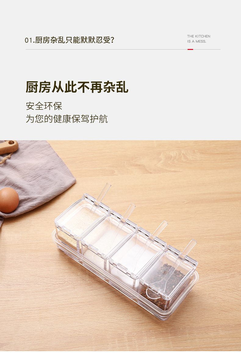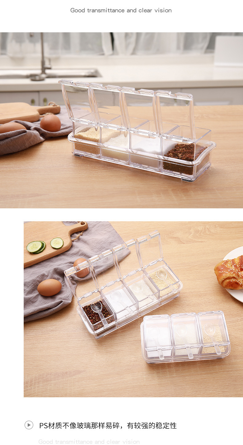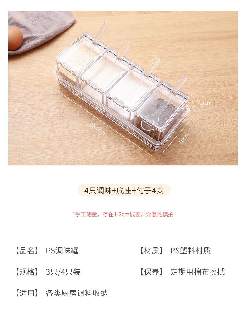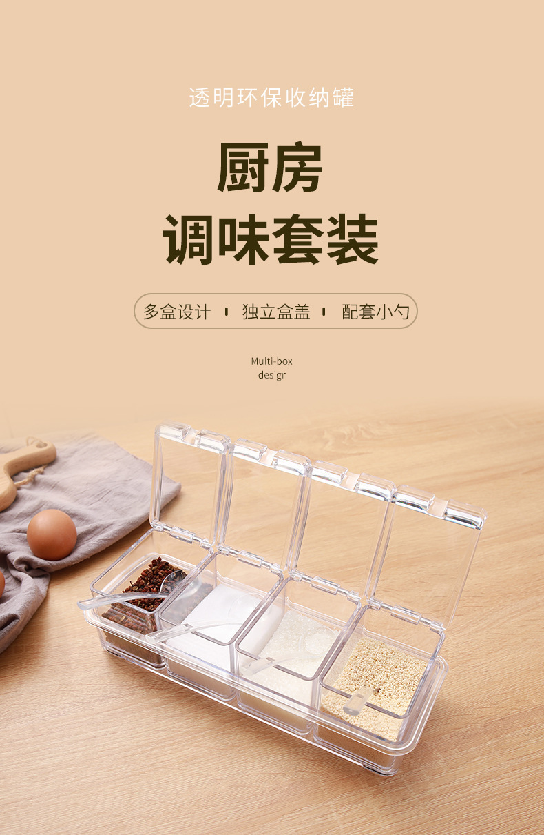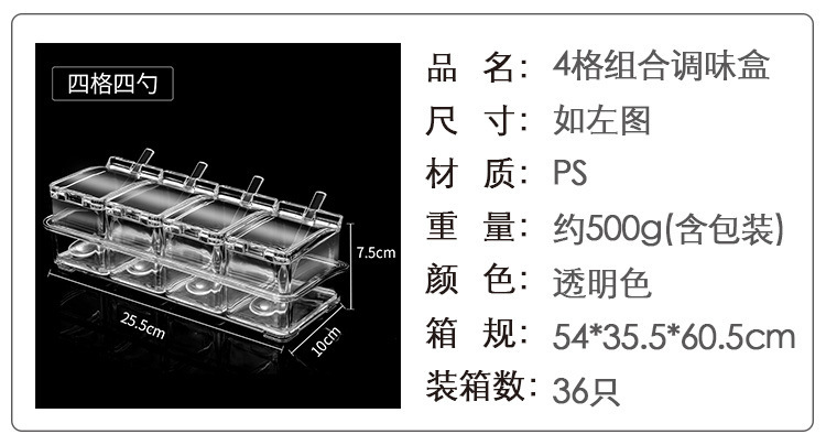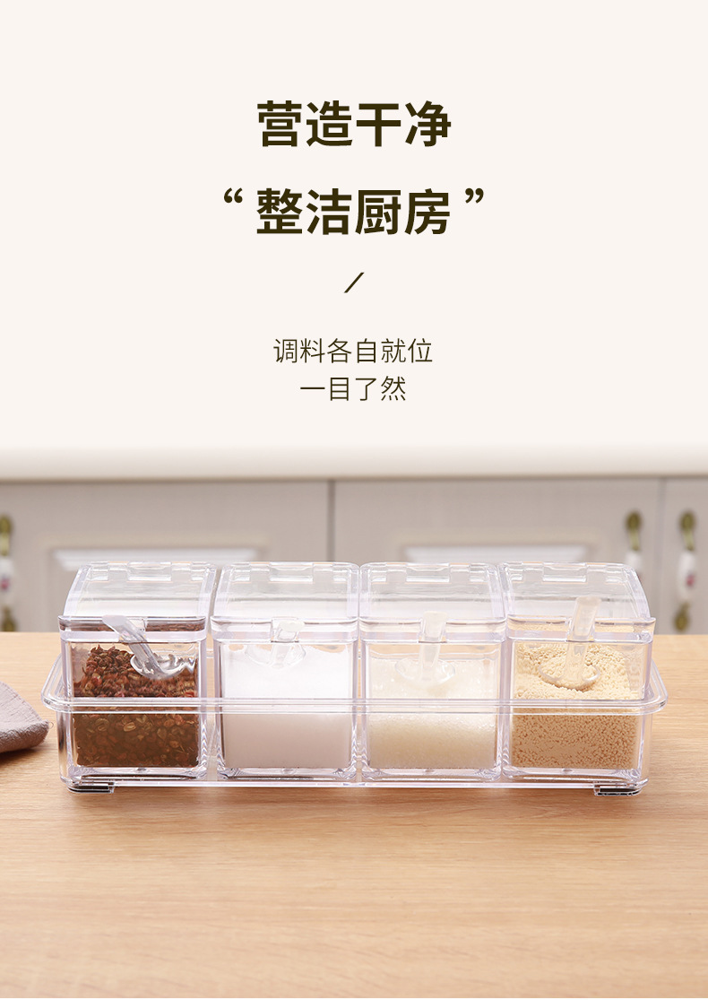 高透明四合一调味盒调味罐瓶厨房盐佐料盒干料家用调料收纳套装