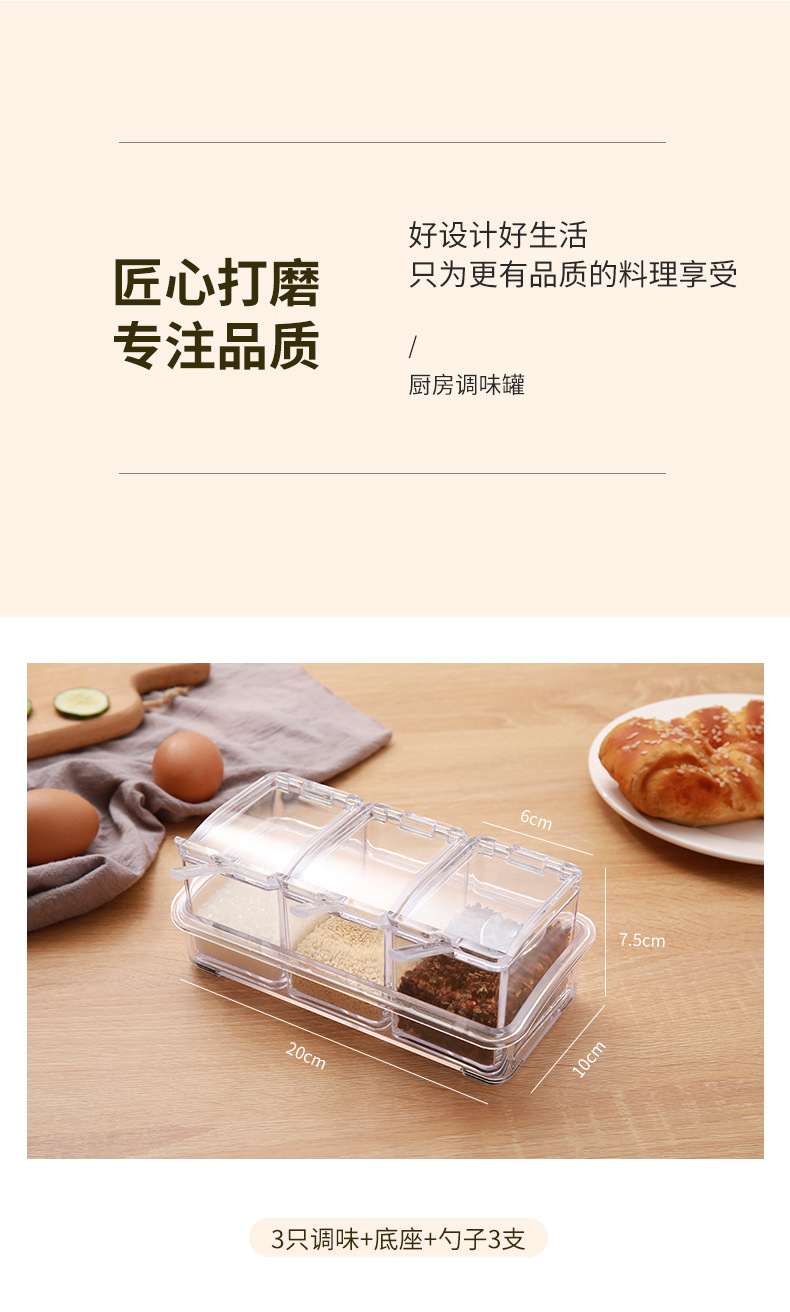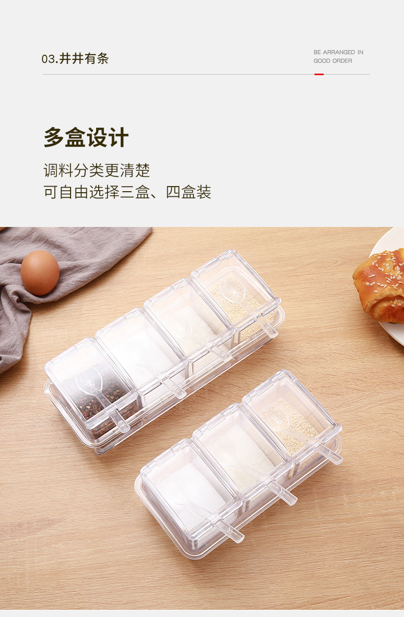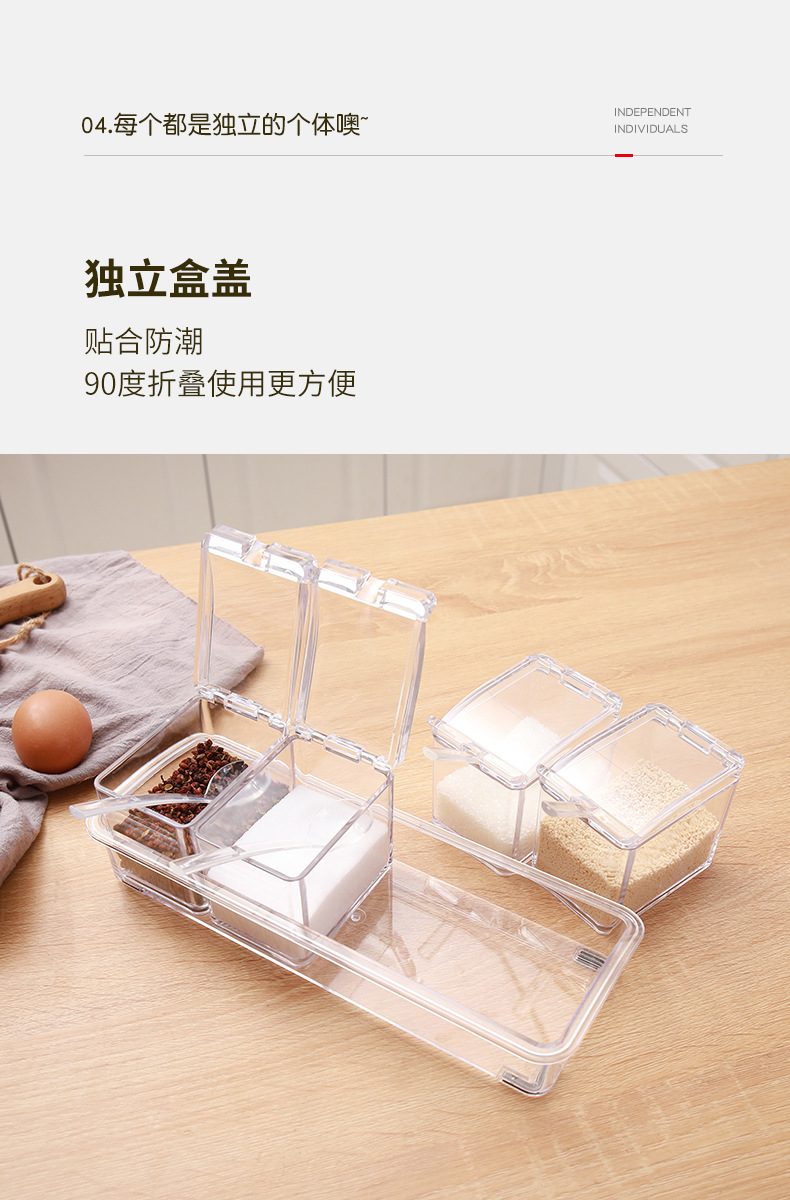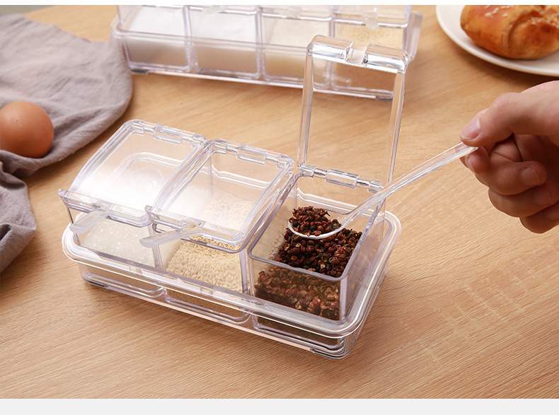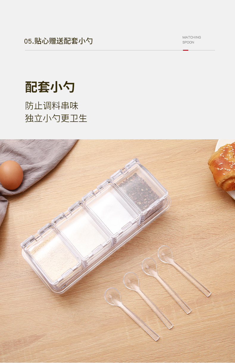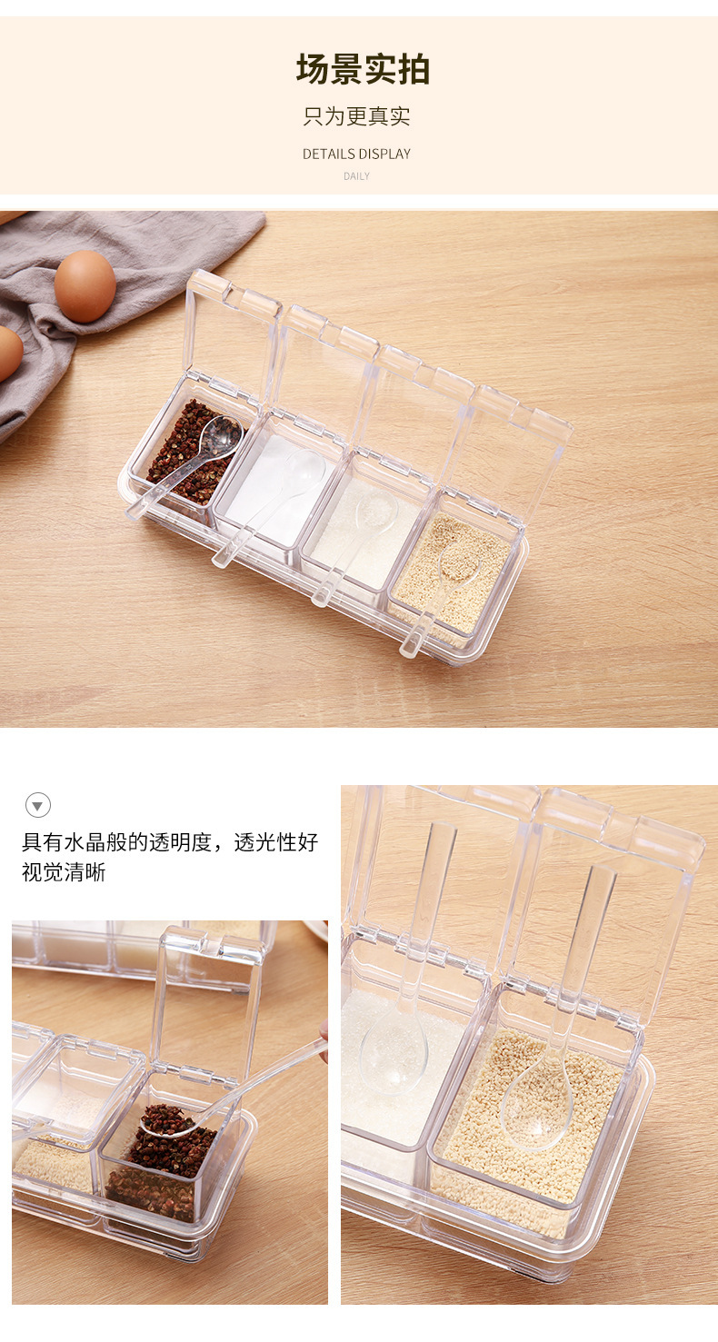 高透明四合一调味盒调味罐瓶厨房盐佐料盒干料家用调料收纳套装