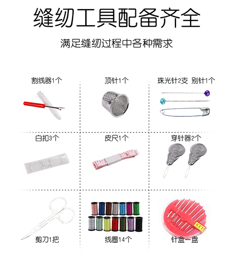 跨境便携式家用缝纫工具针线盒套装缝纫线套装针线包一件起批