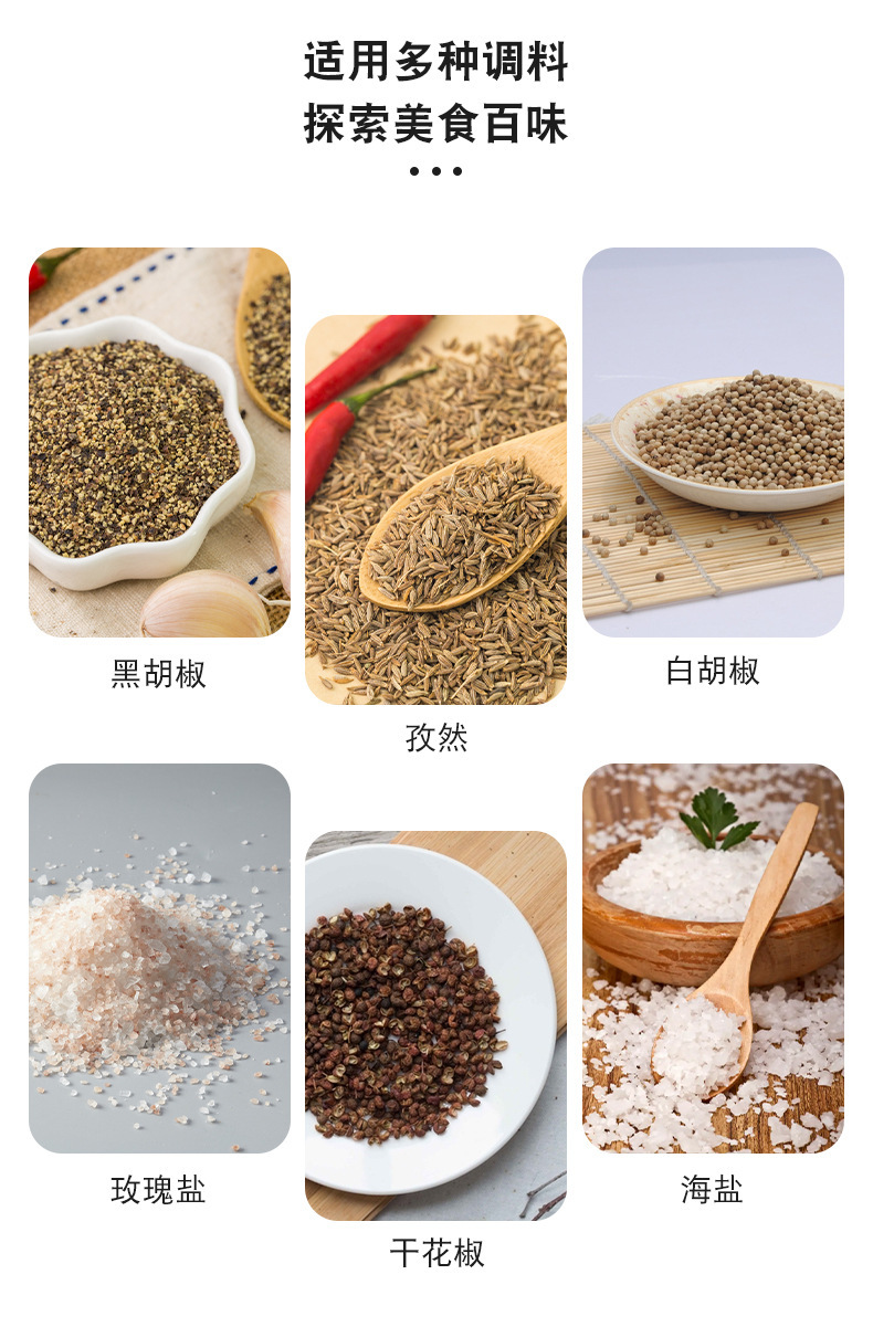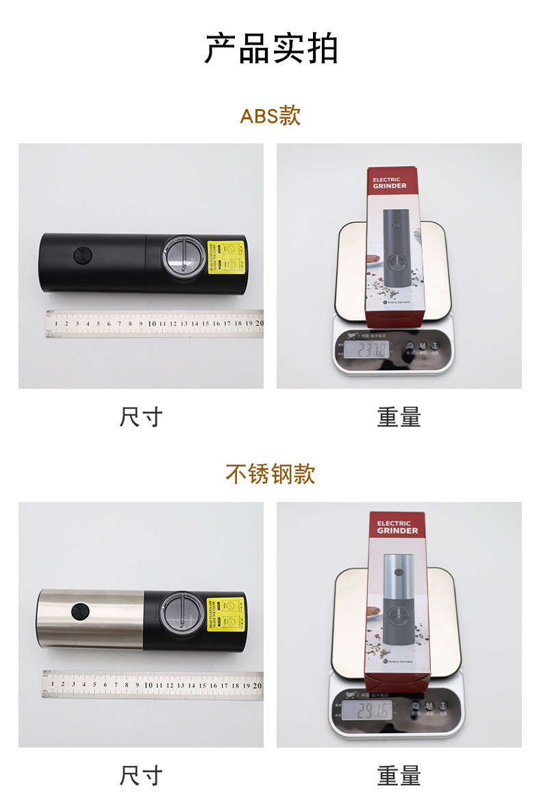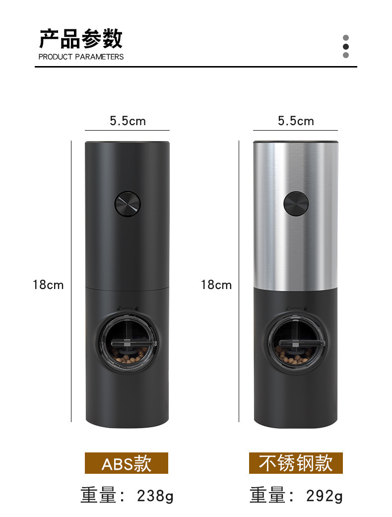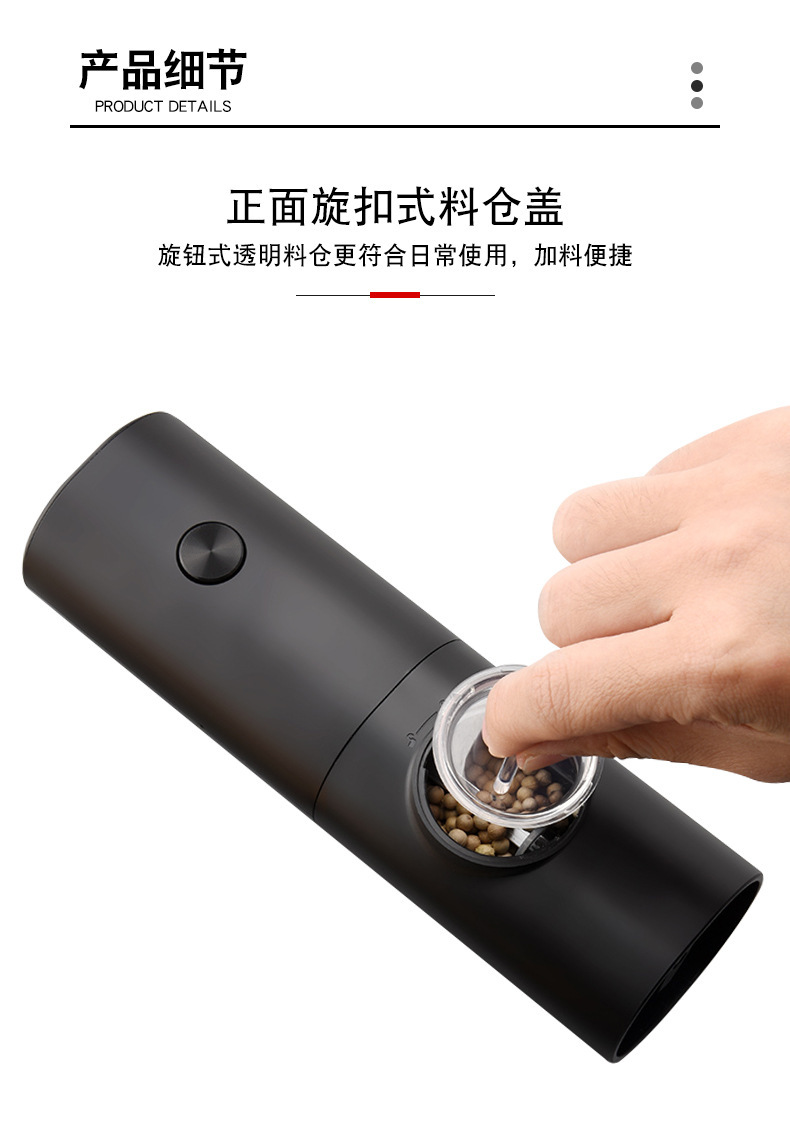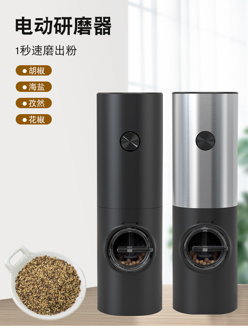 不锈钢无线电动研磨器重力感应胡椒碾碎器厨房海盐调味香料研磨机