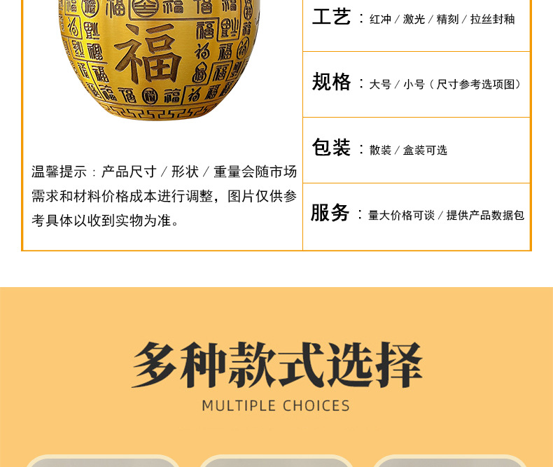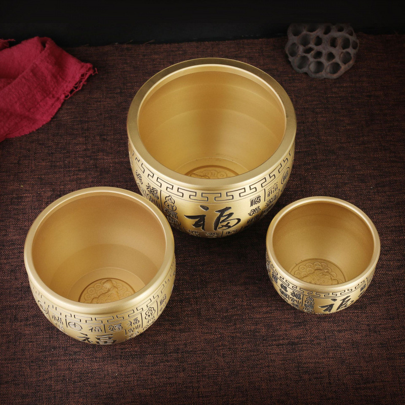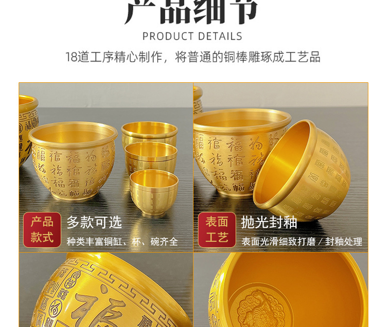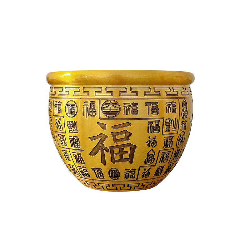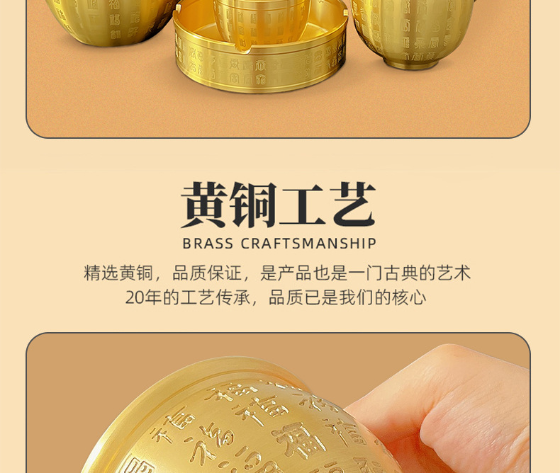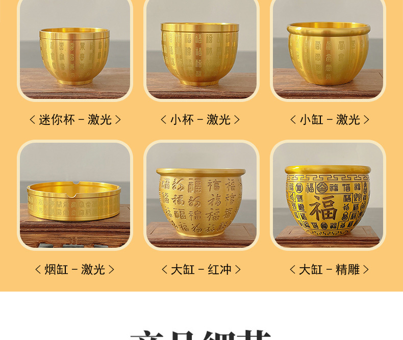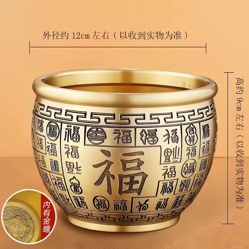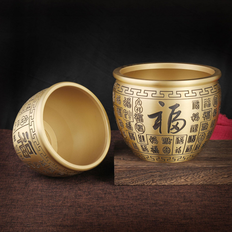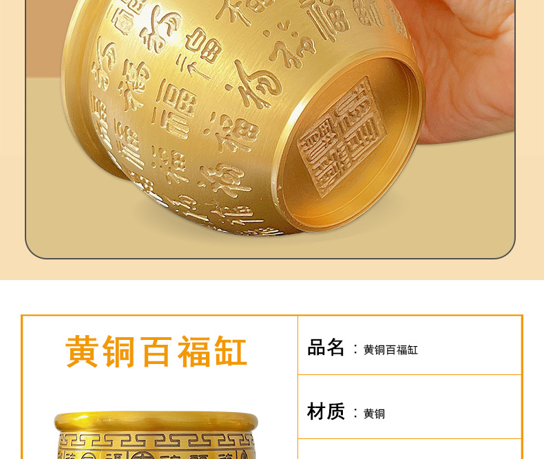 黄铜百福缸桌面摆件招米财缸聚宝盆多款摆件烟灰缸五虎纳福工艺品