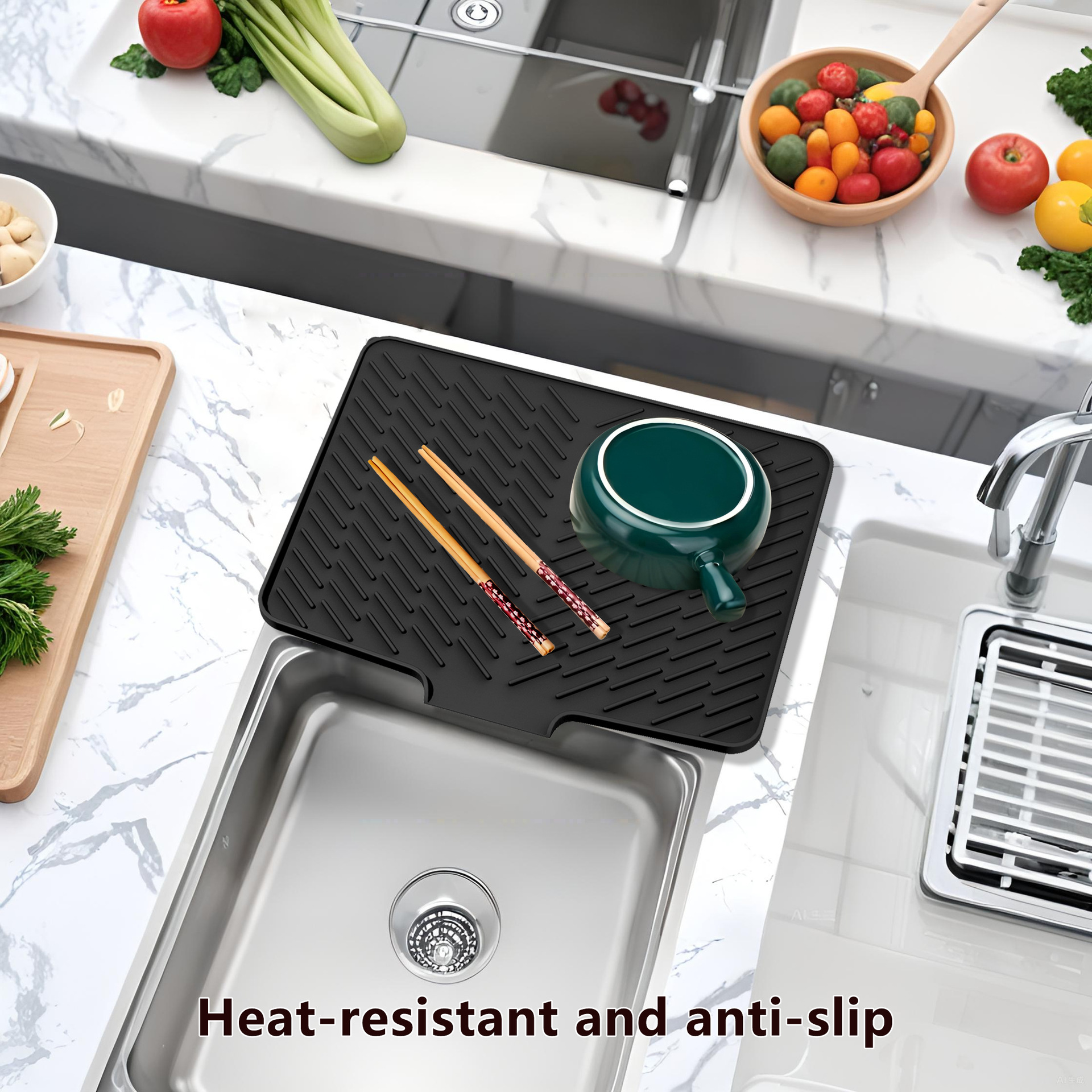 跨境耐高温超大硅胶沥水垫厨房水槽餐具排水垫多功能砧板防滑垫