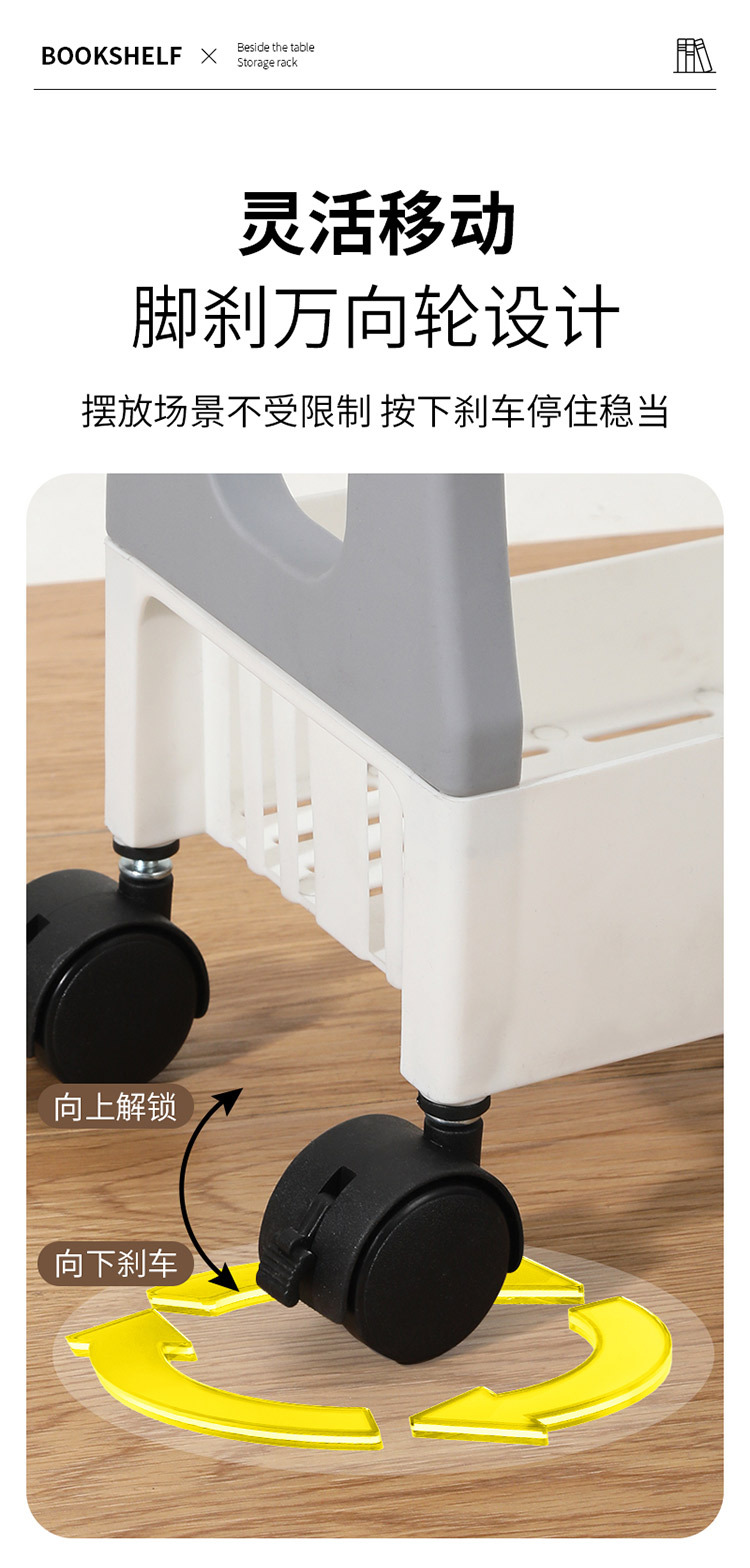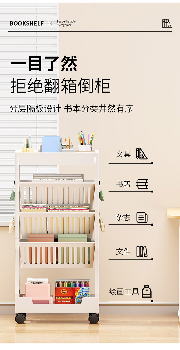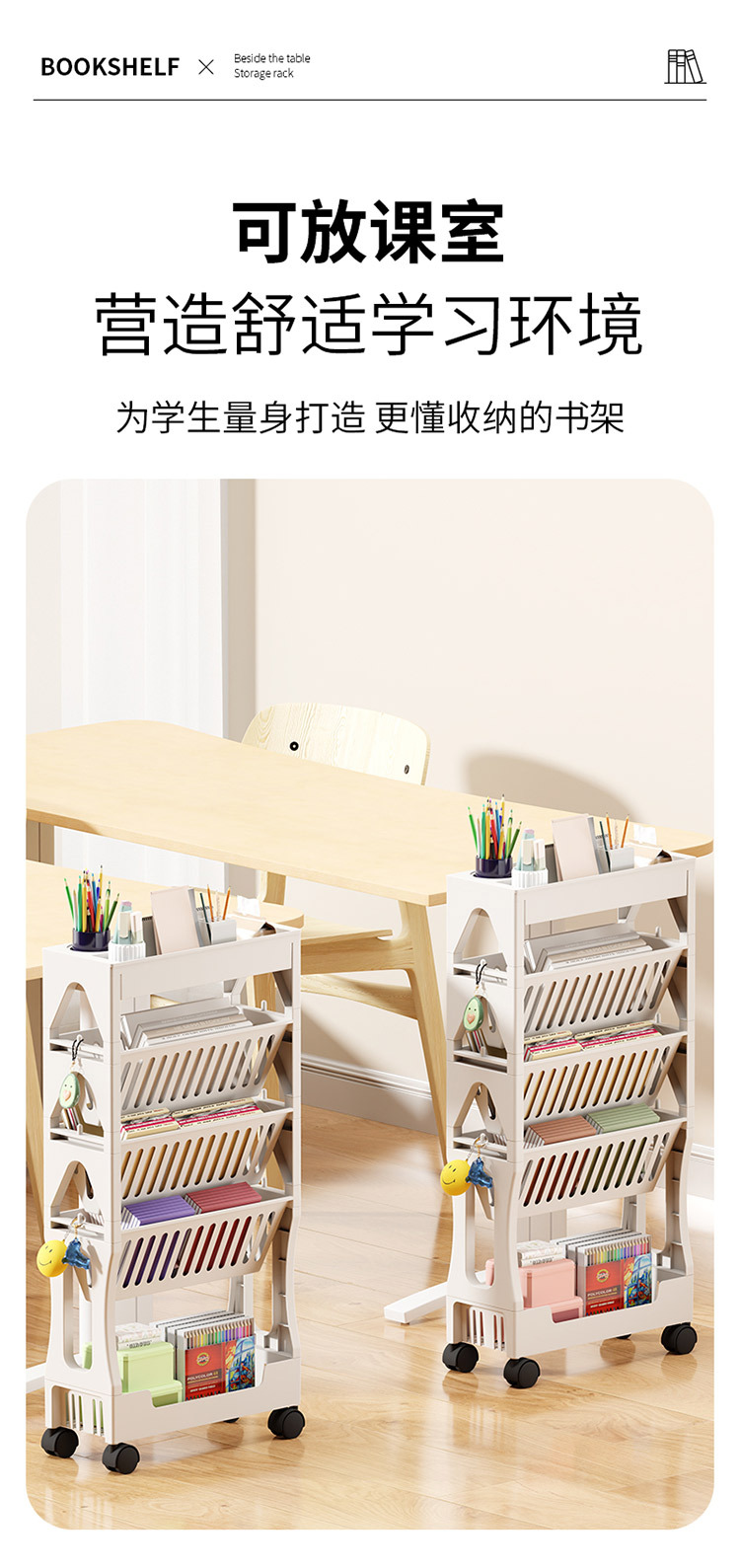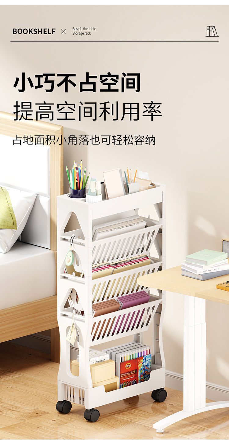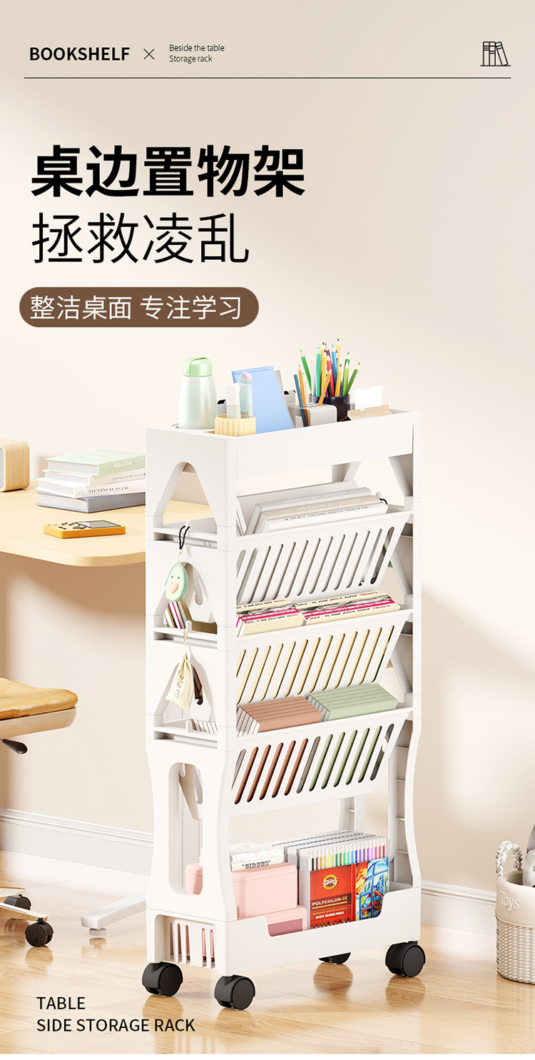 简易组装万向轮落地置物架书立小推车高中课室桌边可移动收纳书架