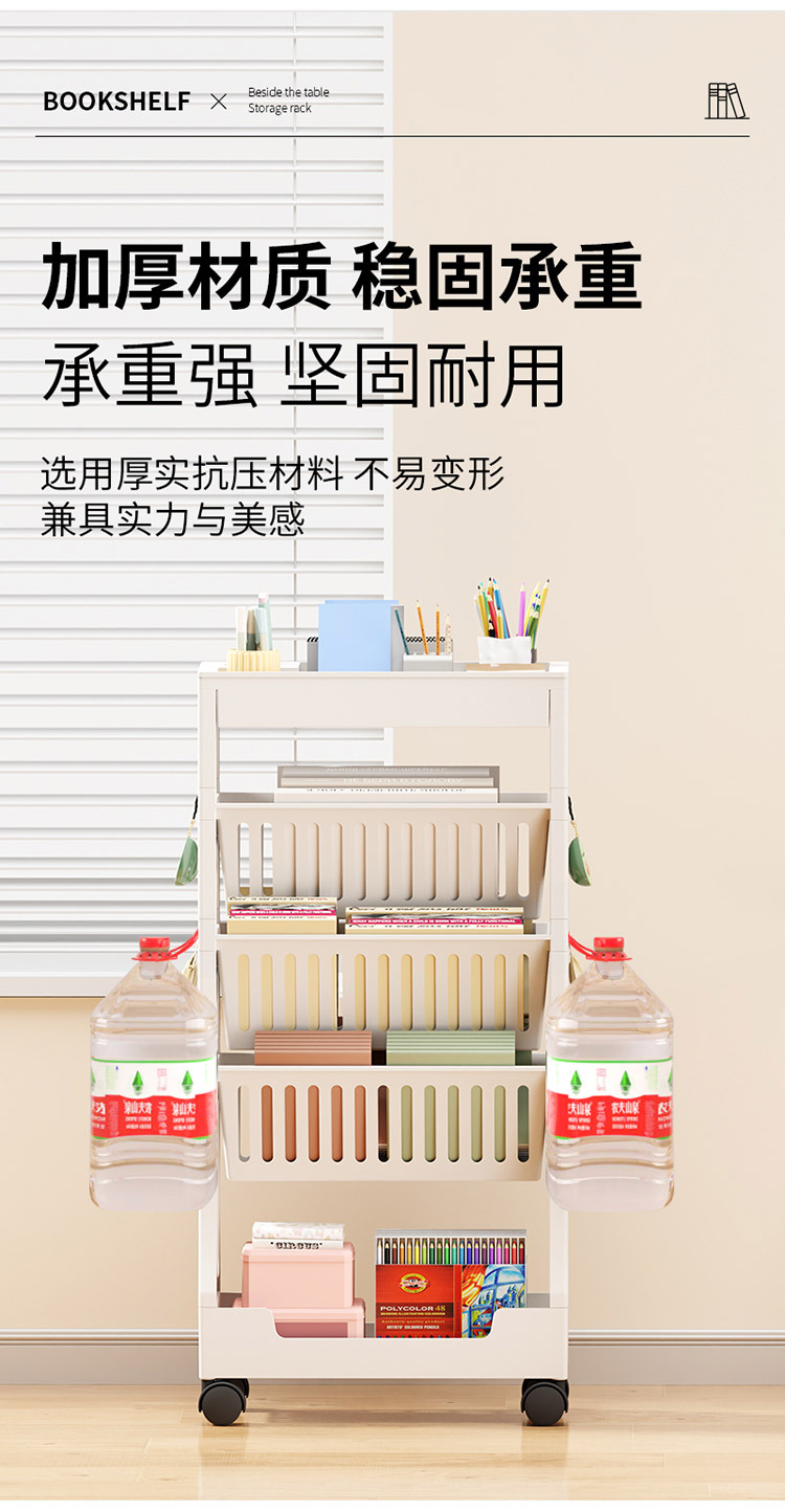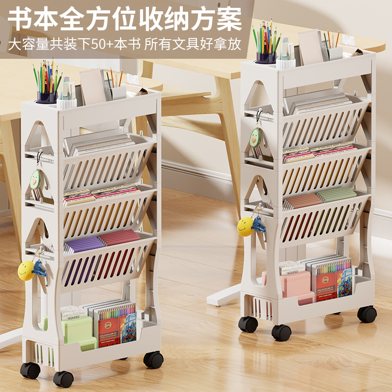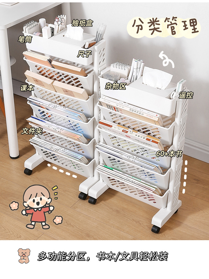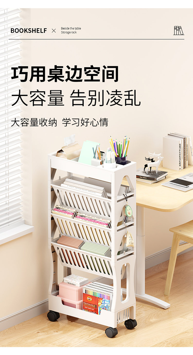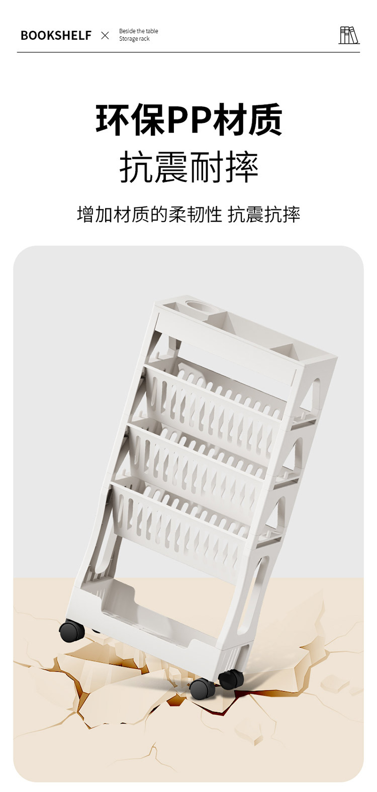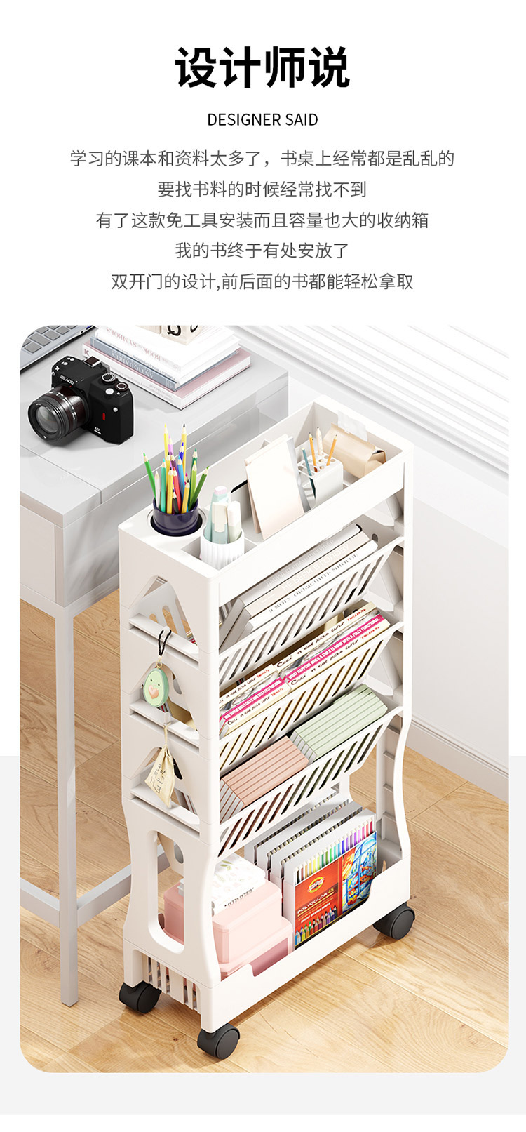 简易组装万向轮落地置物架书立小推车高中课室桌边可移动收纳书架