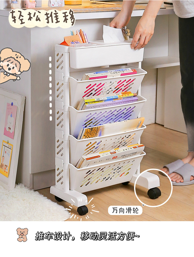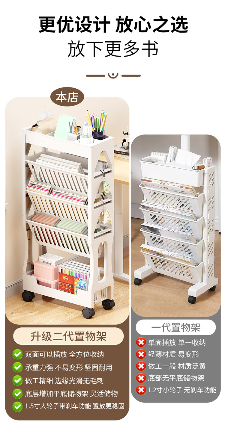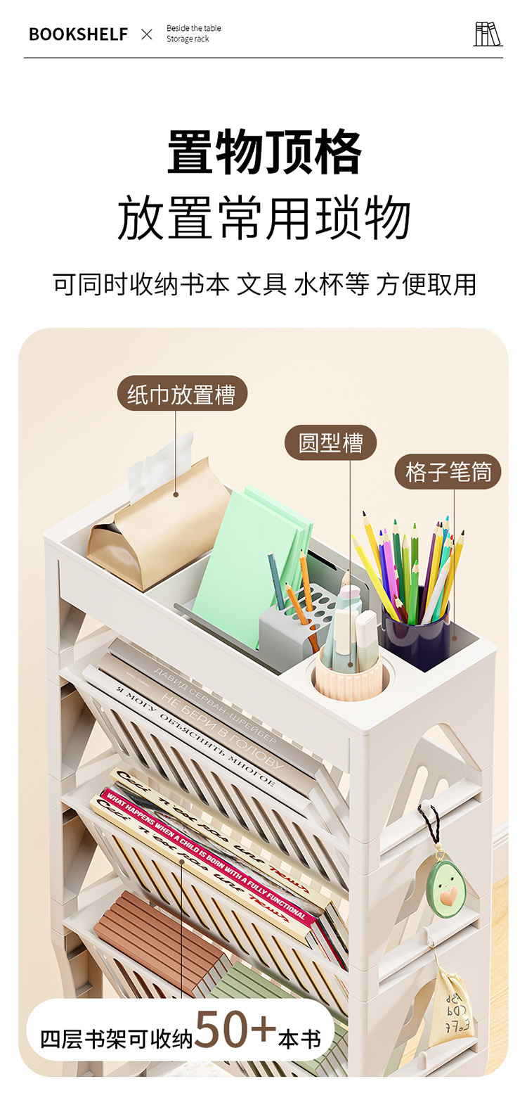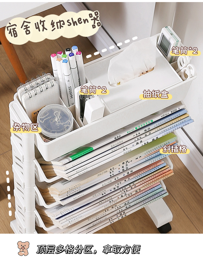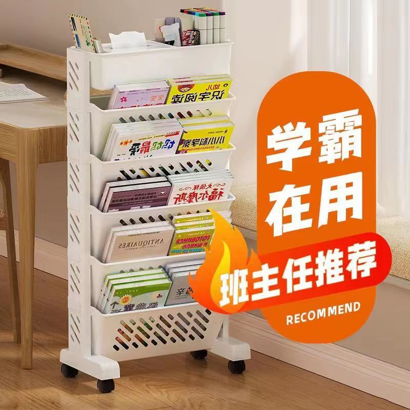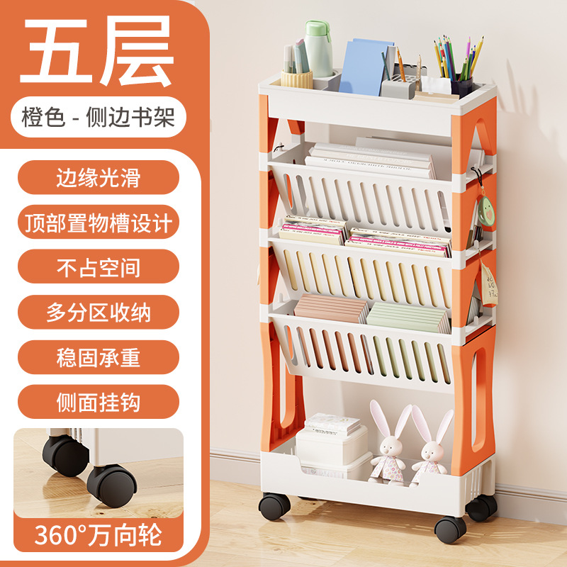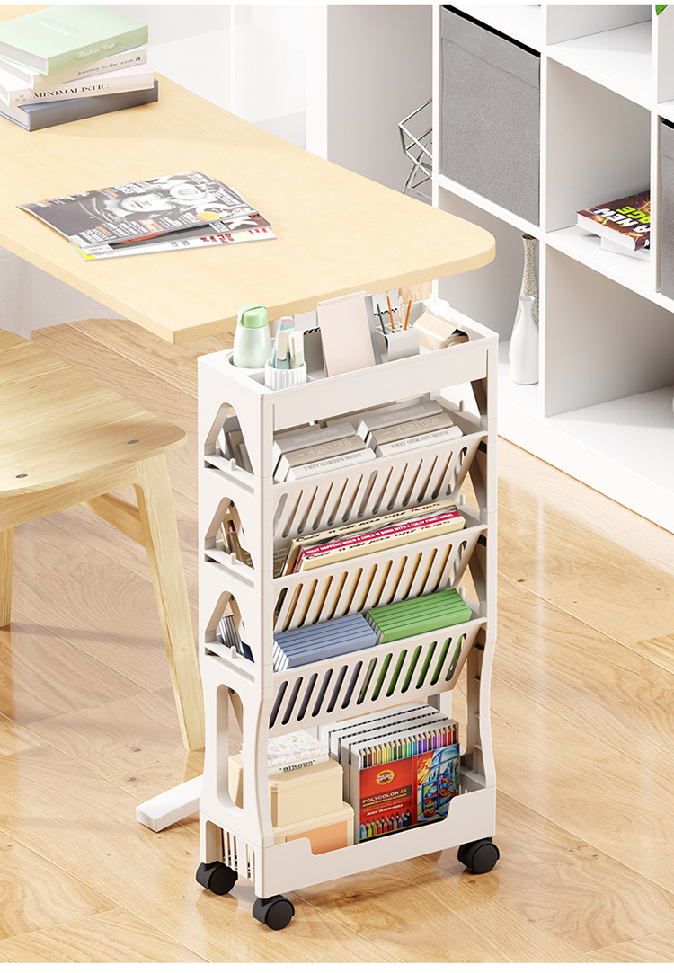 简易组装万向轮落地置物架书立小推车高中课室桌边可移动收纳书架