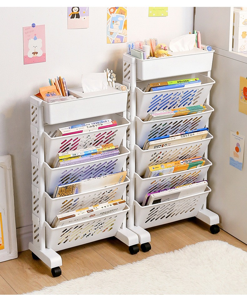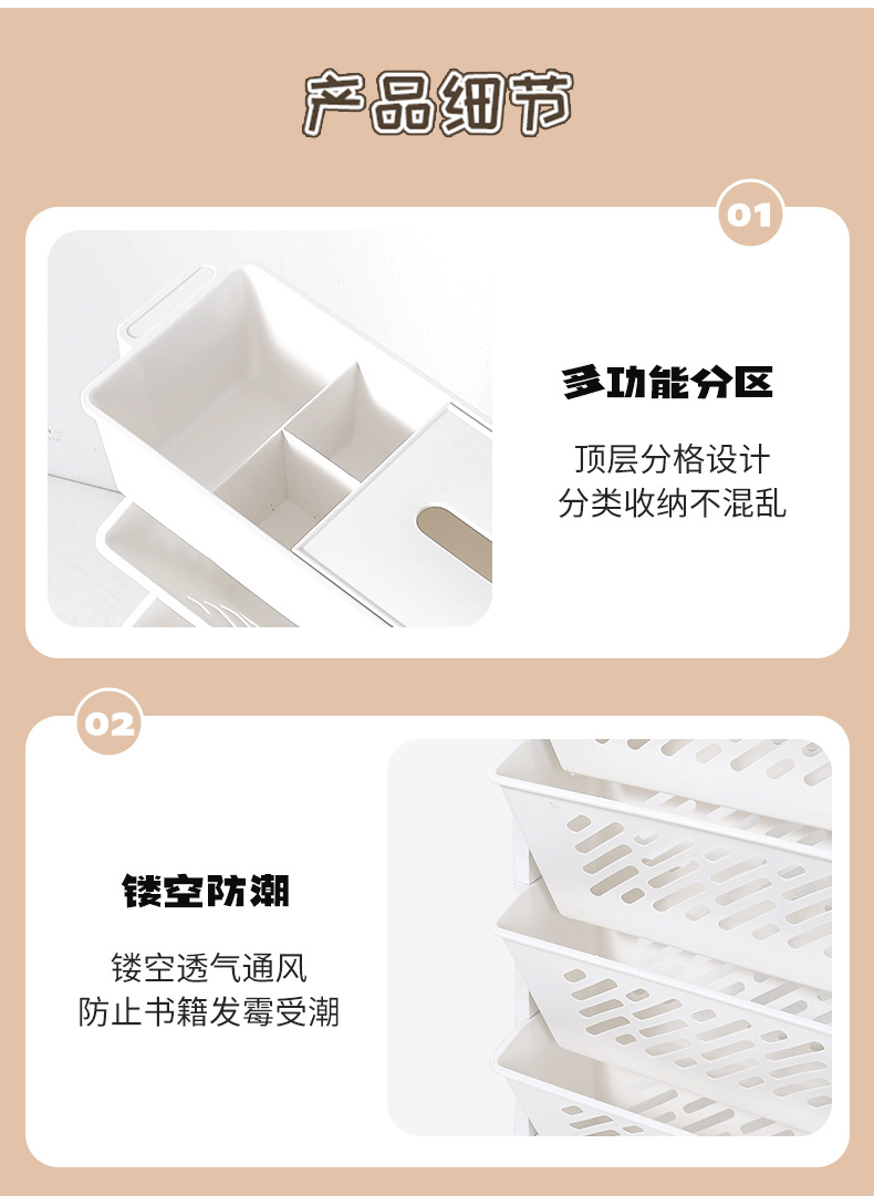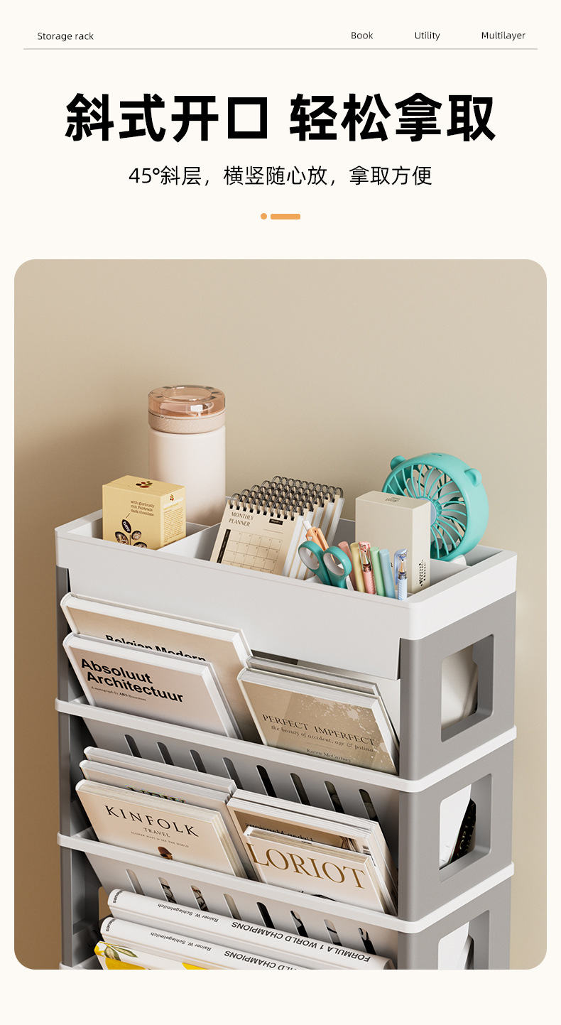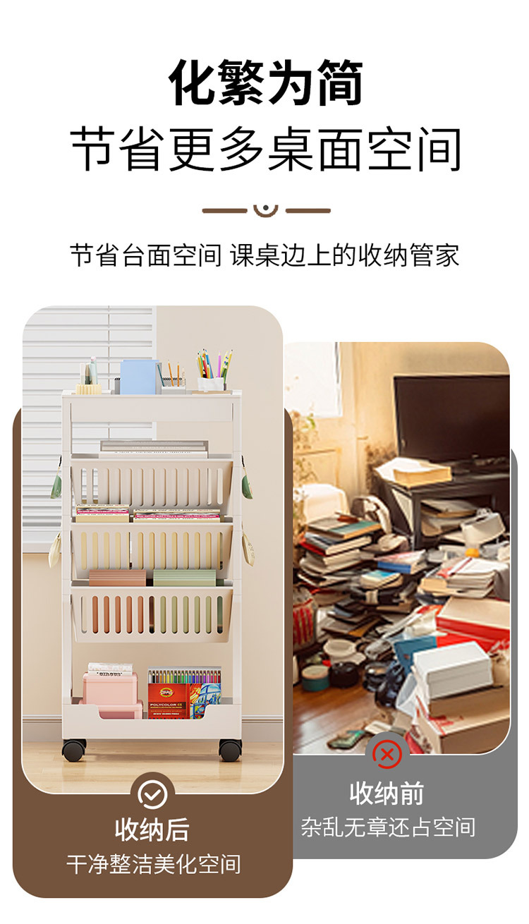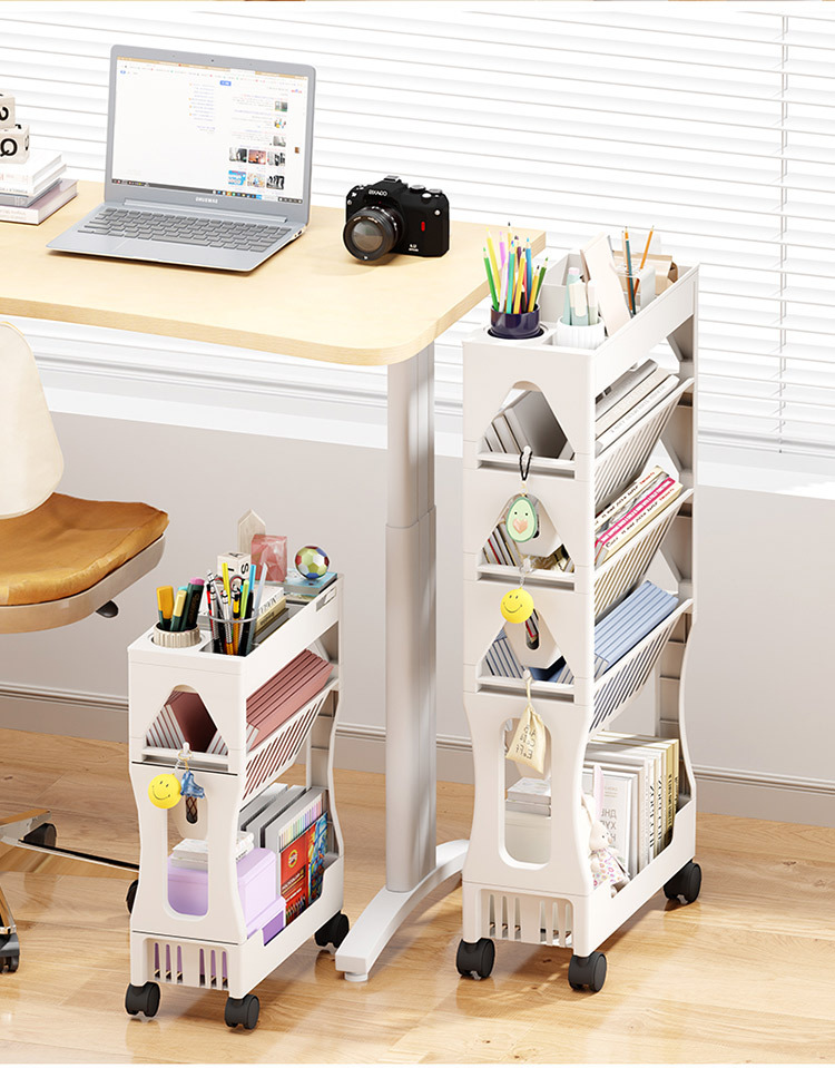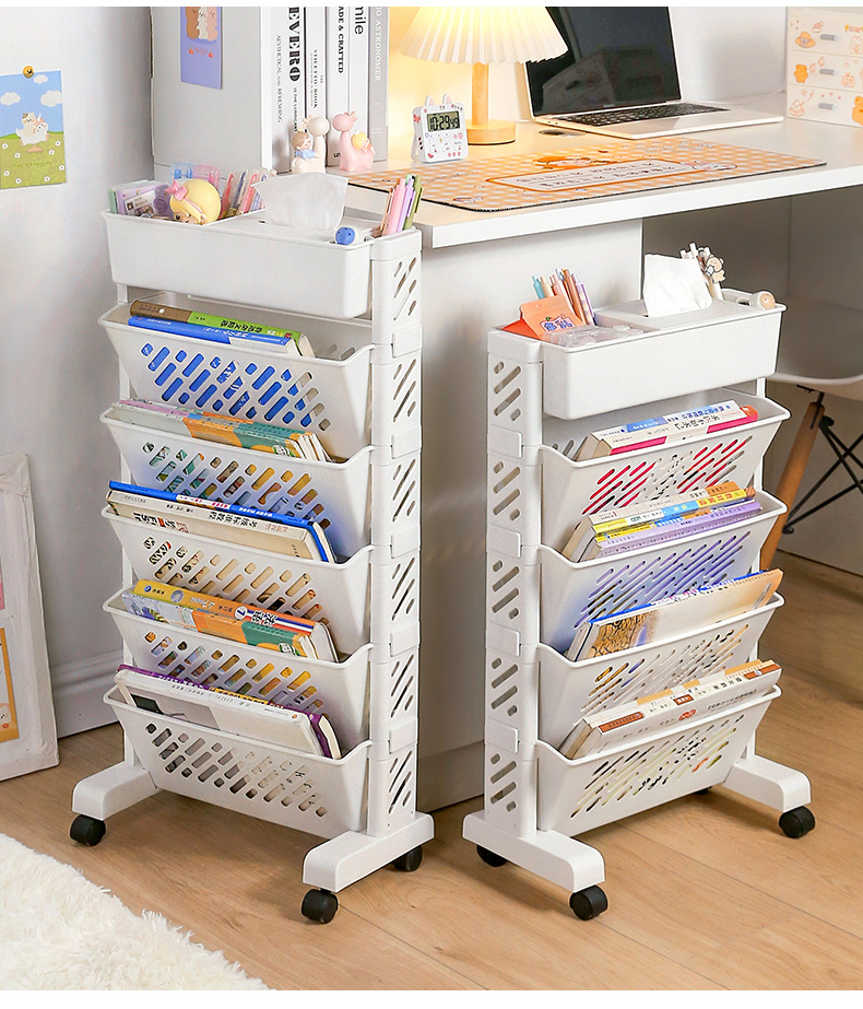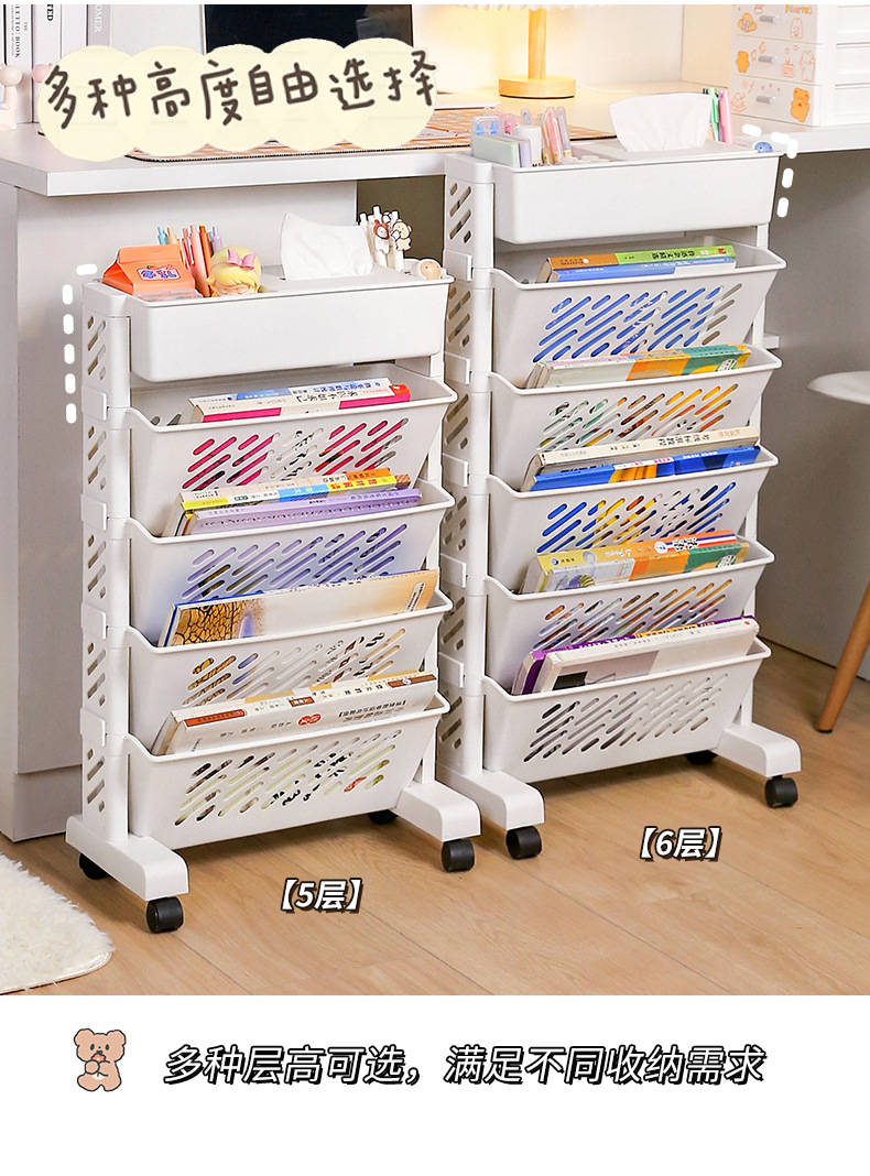 简易组装万向轮落地置物架书立小推车高中课室桌边可移动收纳书架