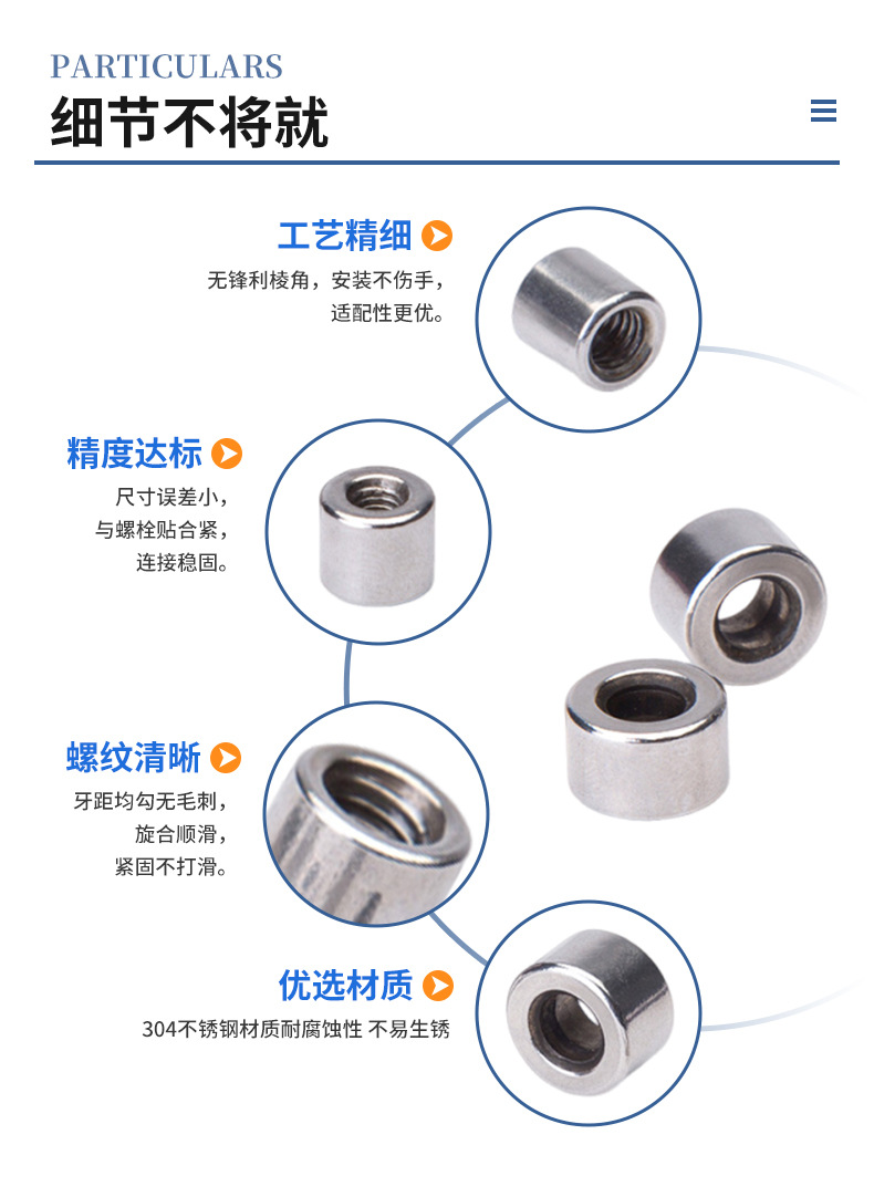 批发304不锈钢圆螺母加长加厚圆柱连接螺母丝杆接头螺母焊接螺母