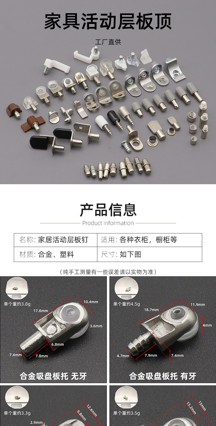 迪斯威 活动层板托家具橱柜合金隔板钉一字光身板托玻璃防滑板托