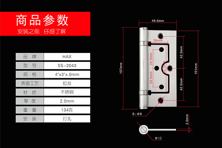 SS-2543 不锈钢橱柜门子母合页 房门静音铰链 门窗平合页五金配件