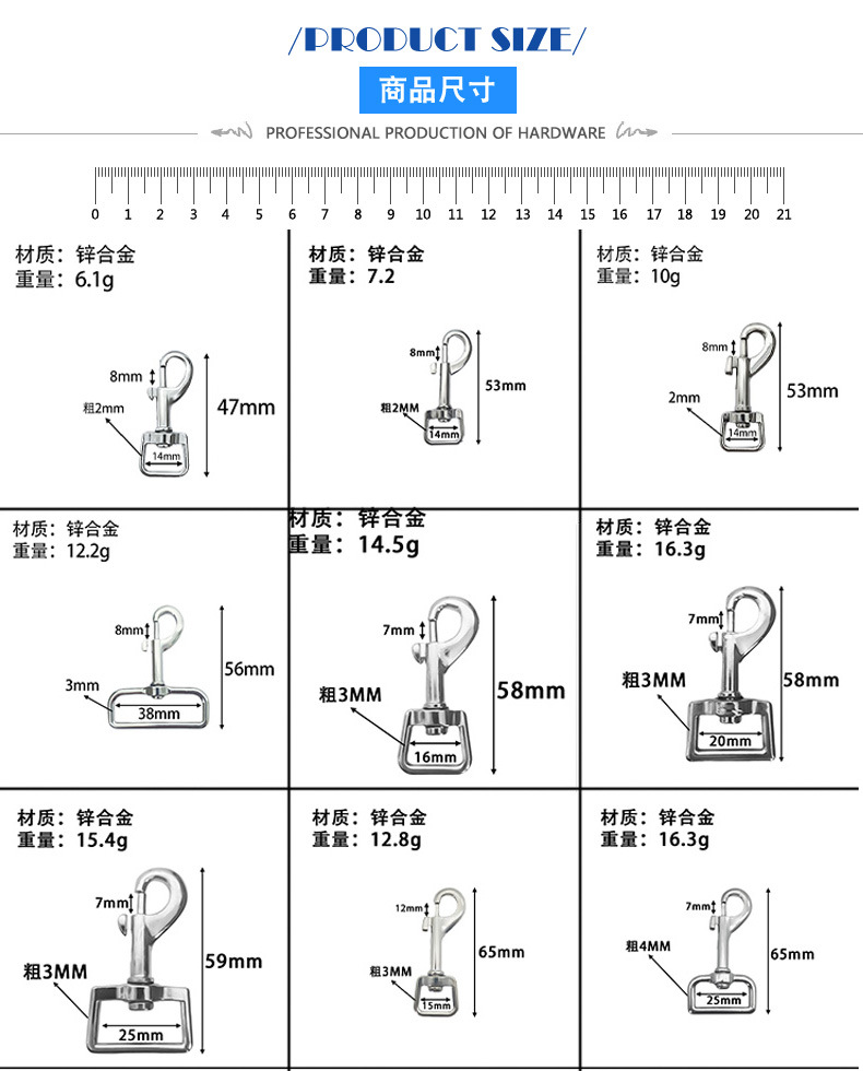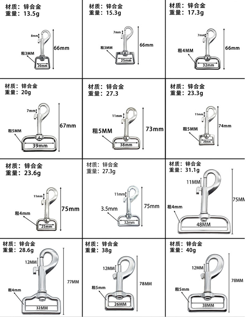 厂家现货批发锌合金狗扣牵引扣20MM P字钩扣箱包锁扣锌合金万向扣