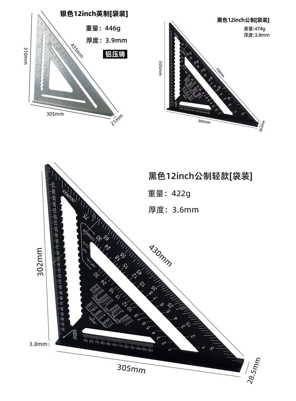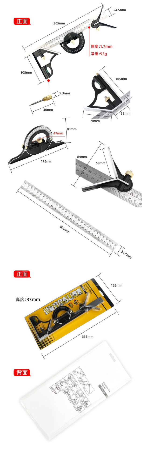 水平活动角尺不锈钢移动组合角度尺土木测量工具300MM可调式直尺