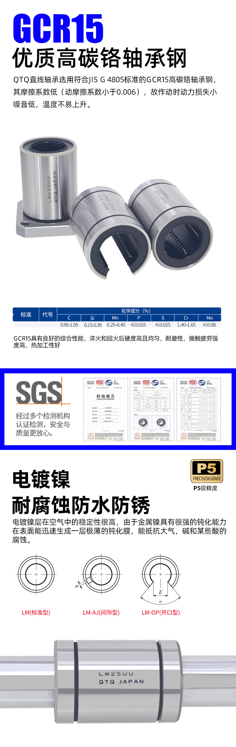 QTQ原装进口 直线轴承 LM20LUU 低摩擦 耐负荷 纺织机械 现货直发