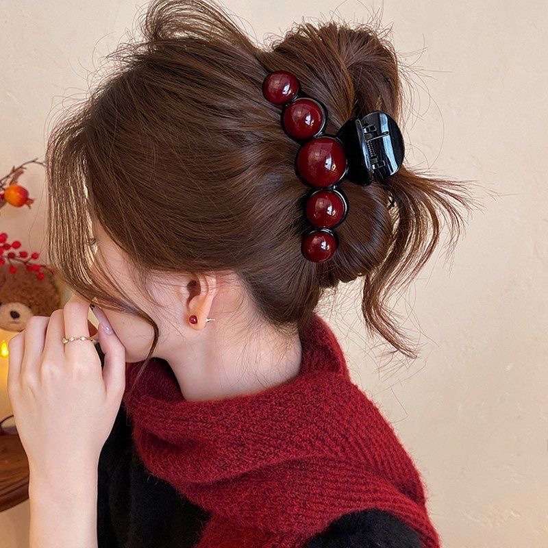 轻奢高级感珍珠抓夹大号鲨鱼夹新款发量多后脑勺盘发夹子发饰