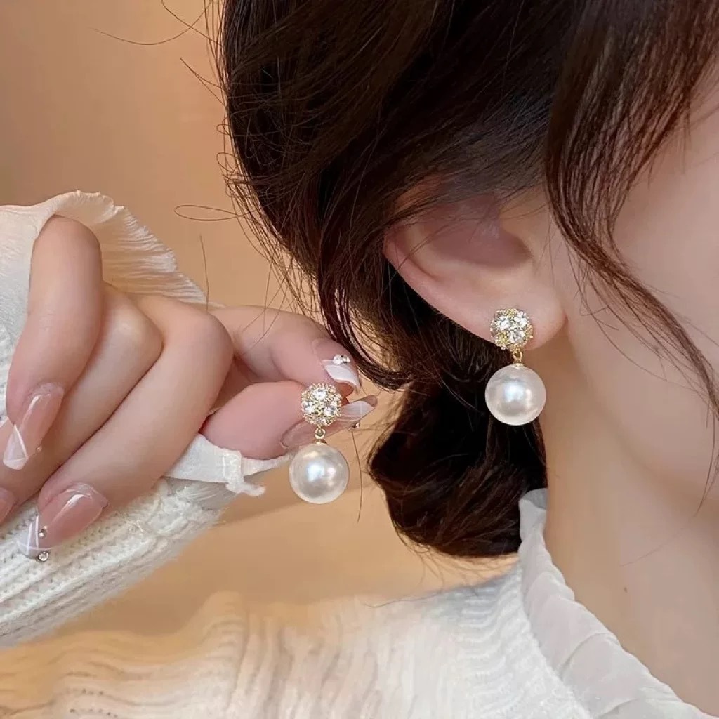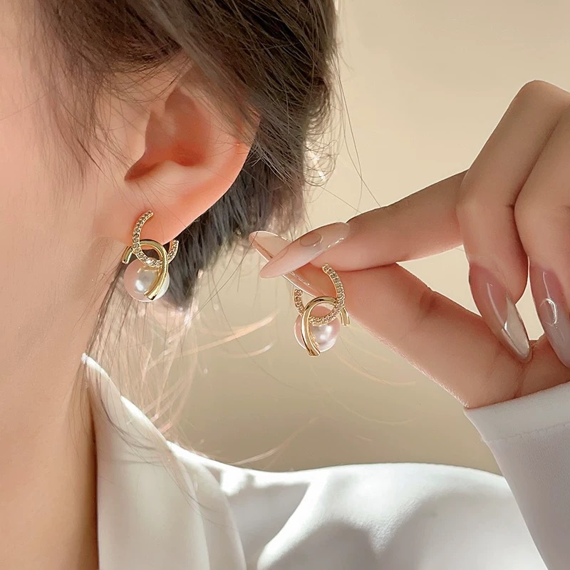 欧美轻奢高级感耳环新款ins风小众设计感珍珠耳钉百搭耳饰
