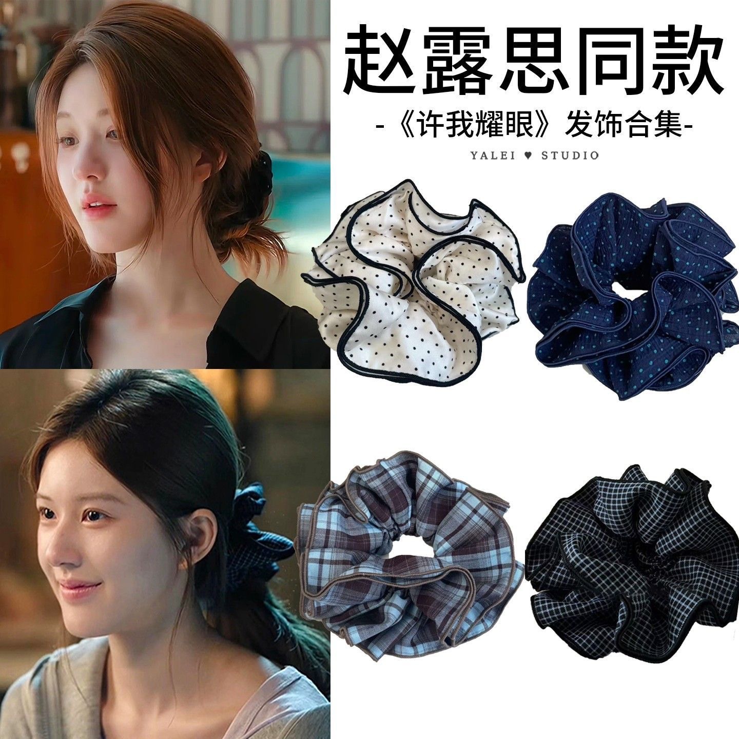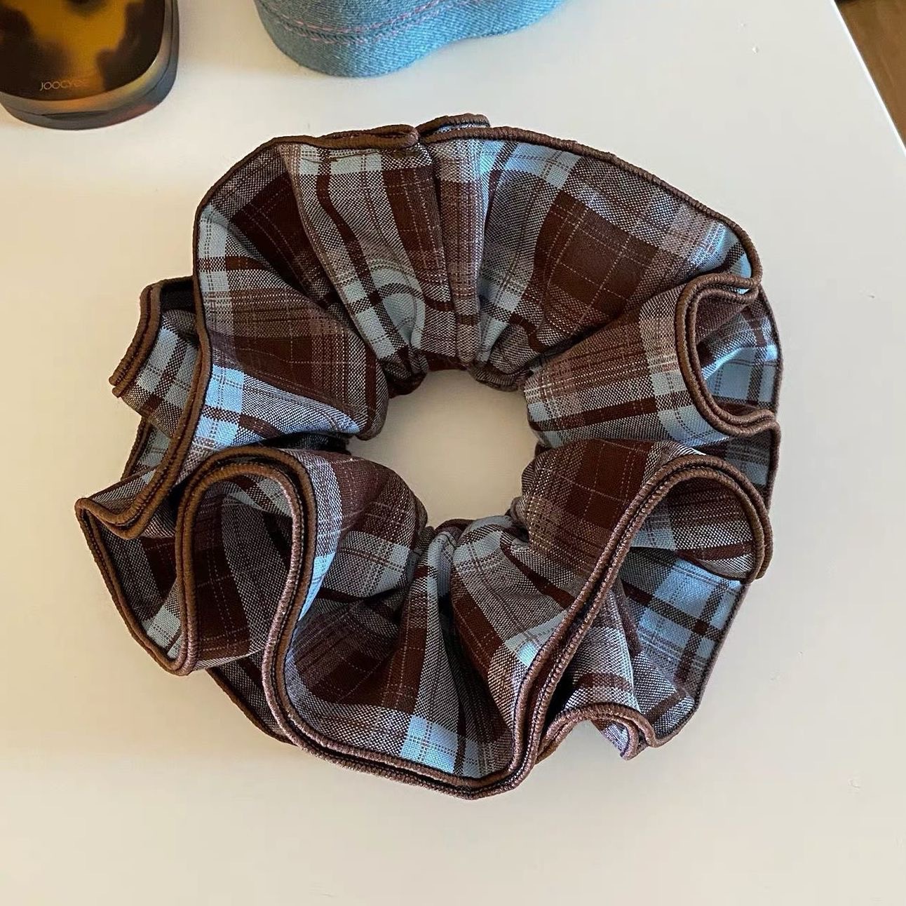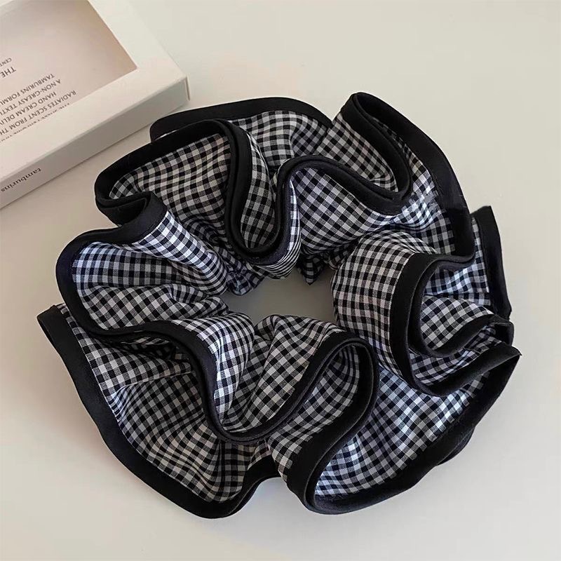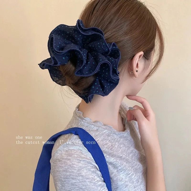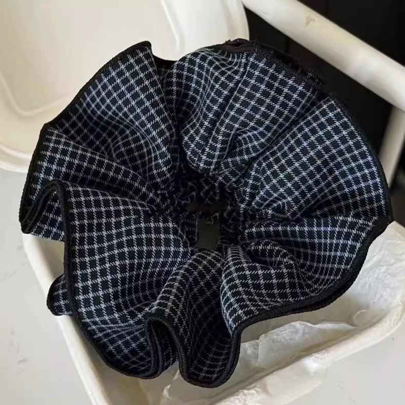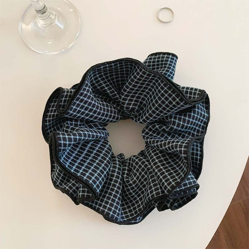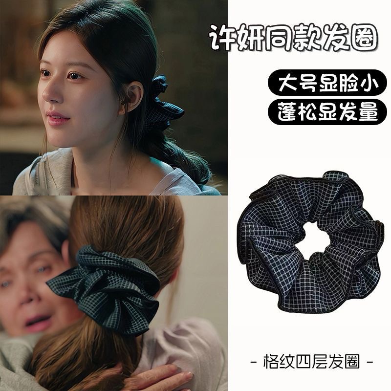 许我耀眼~赵露思同款韩系藏青格子四层大肠发圈发绳扎丸子头发饰