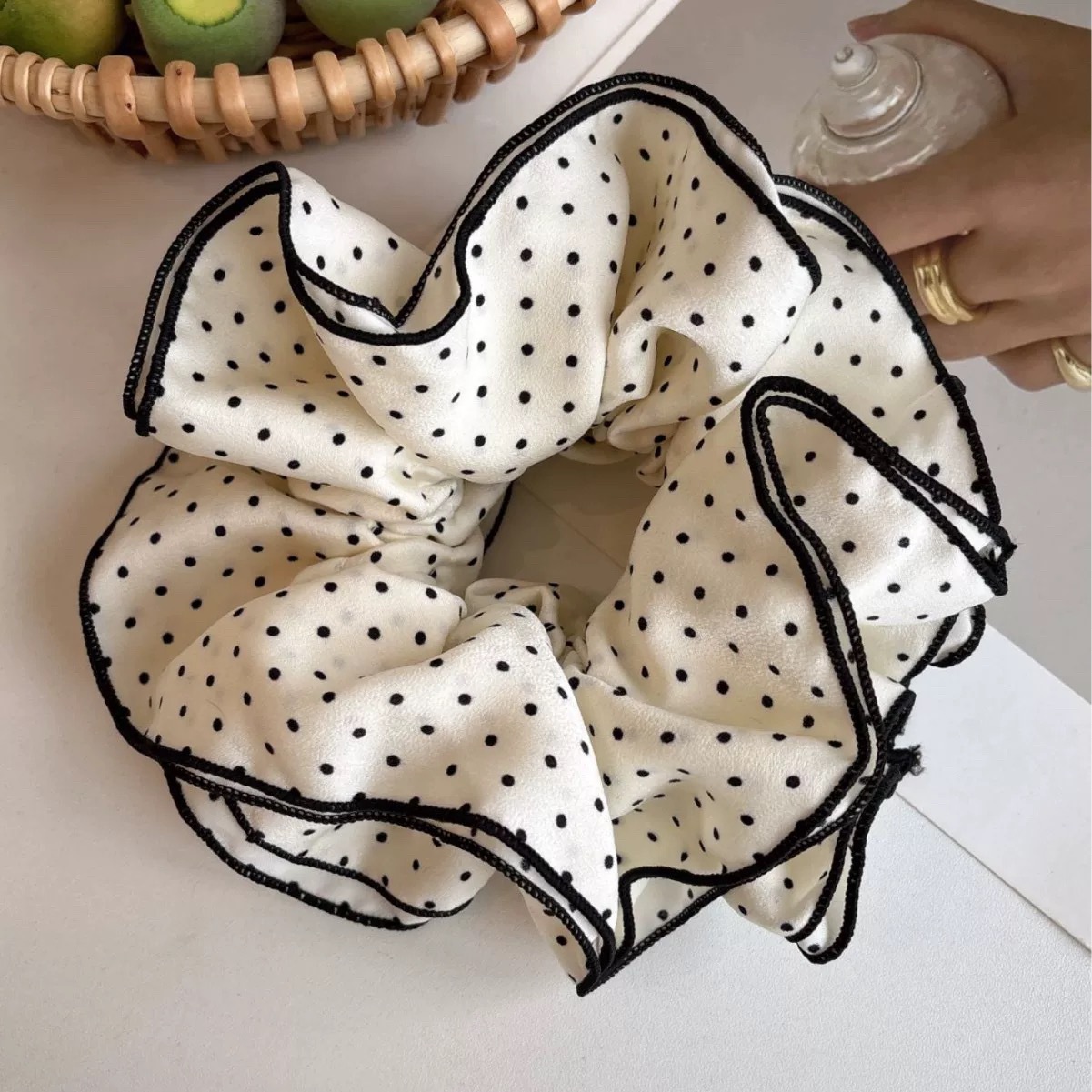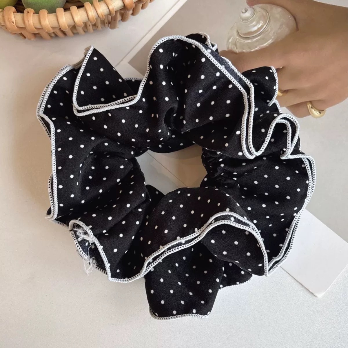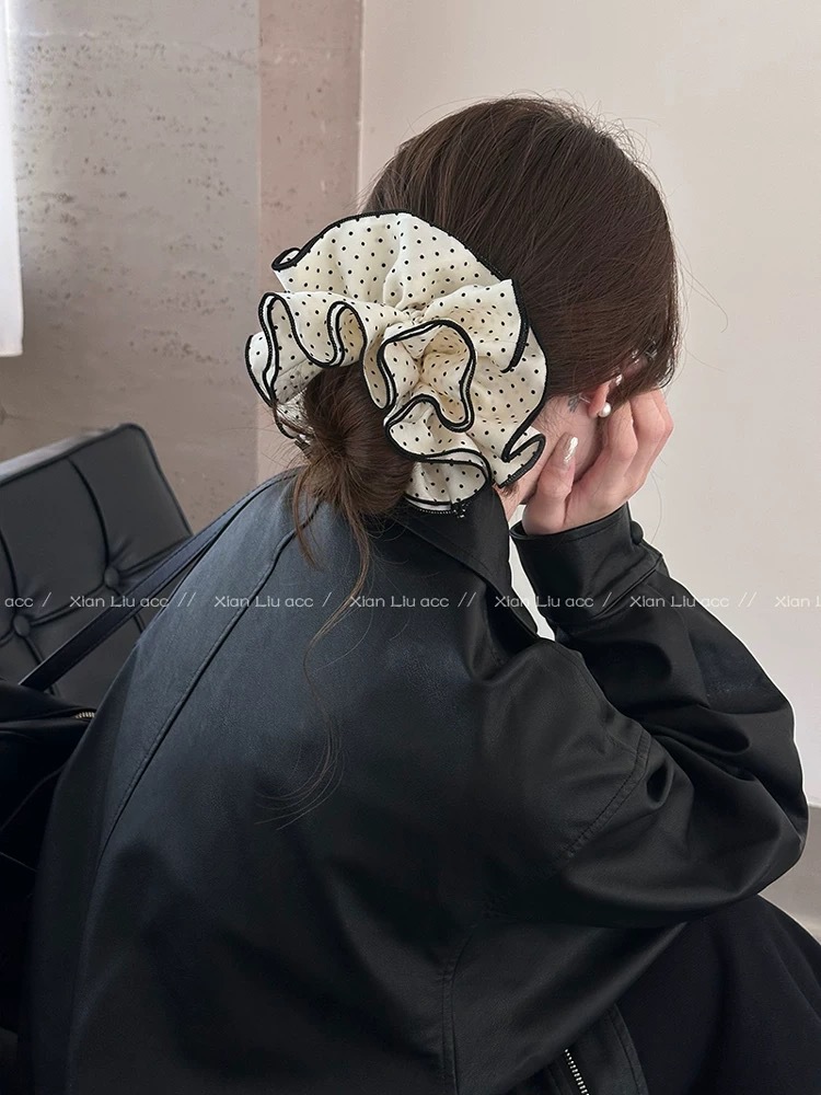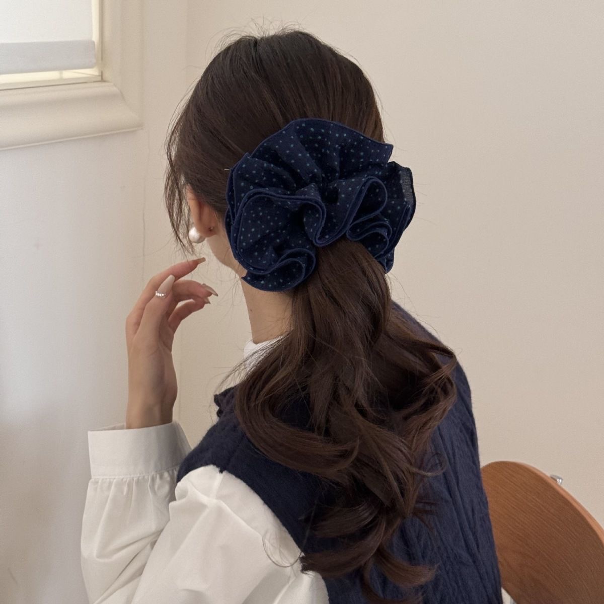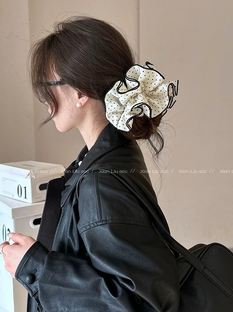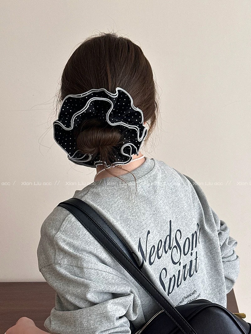 许我耀眼~赵露思同款韩系藏青格子四层大肠发圈发绳扎丸子头发饰