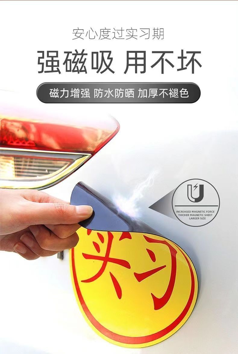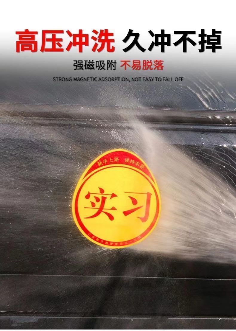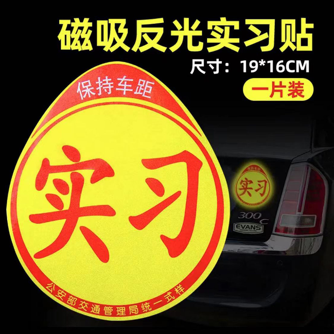 实习磁性车贴标志磁贴新手上路汽车贴纸女司机实习期磁车用反光贴