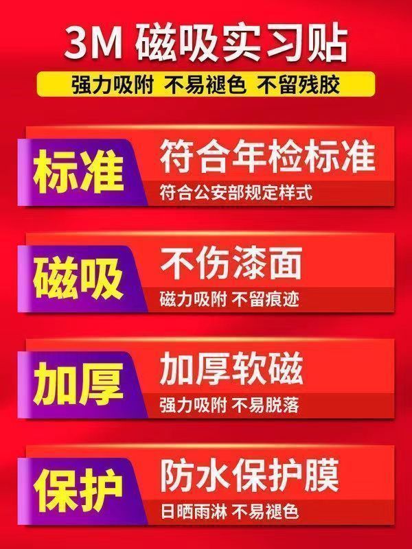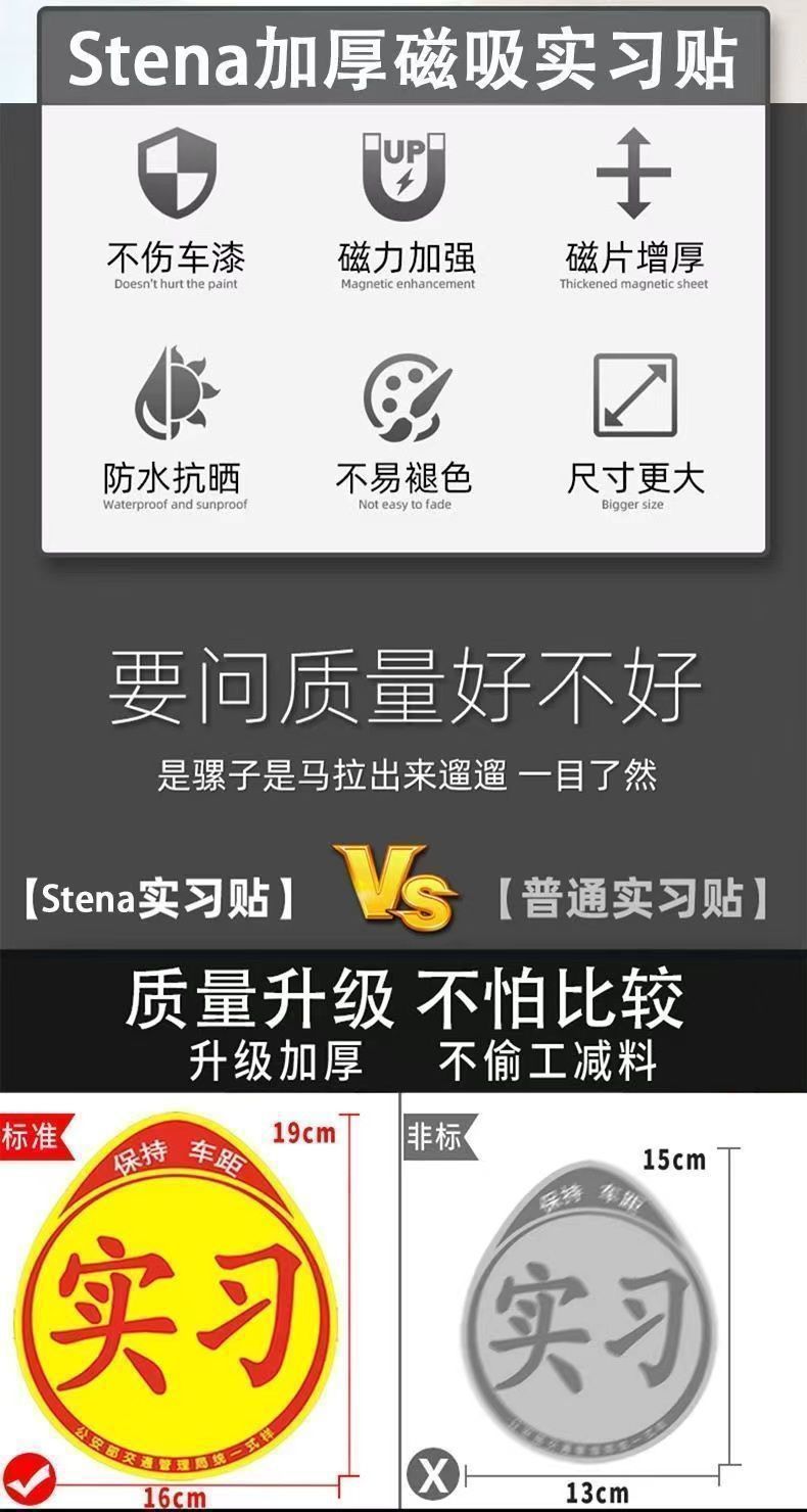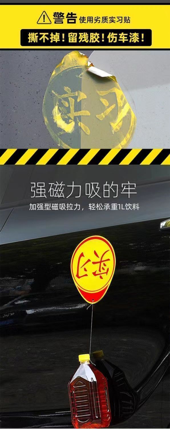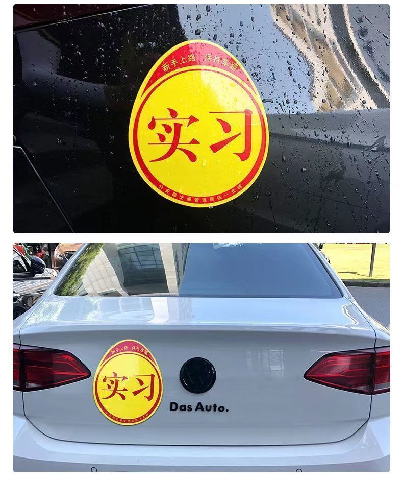 实习磁性车贴标志磁贴新手上路汽车贴纸女司机实习期磁车用反光贴