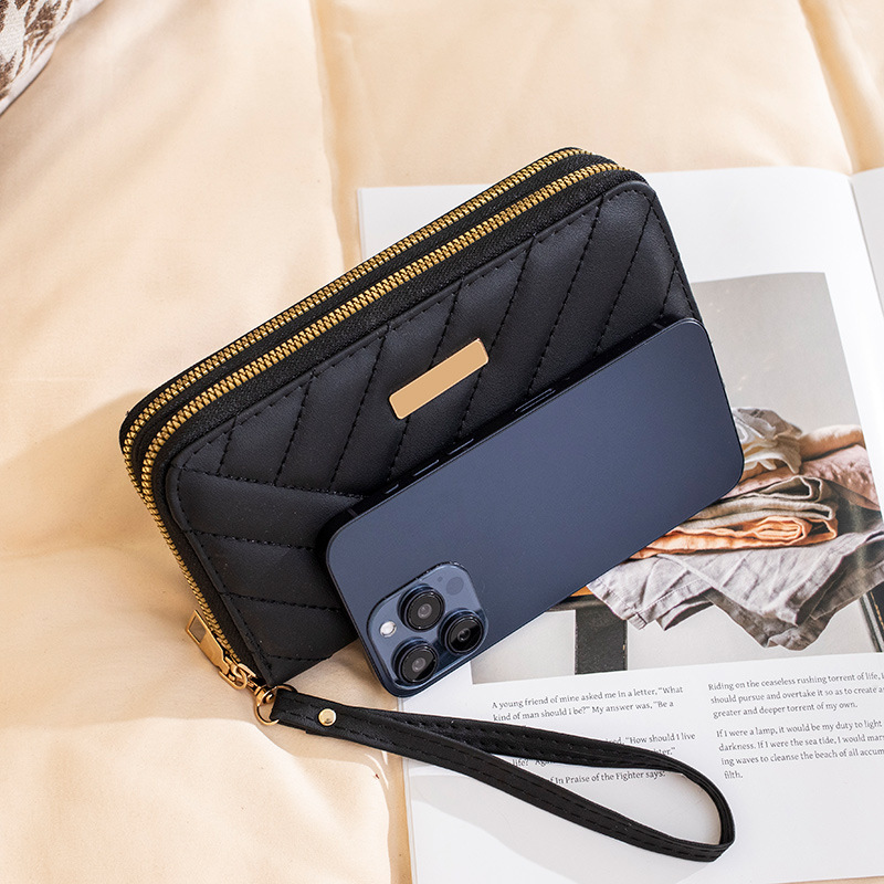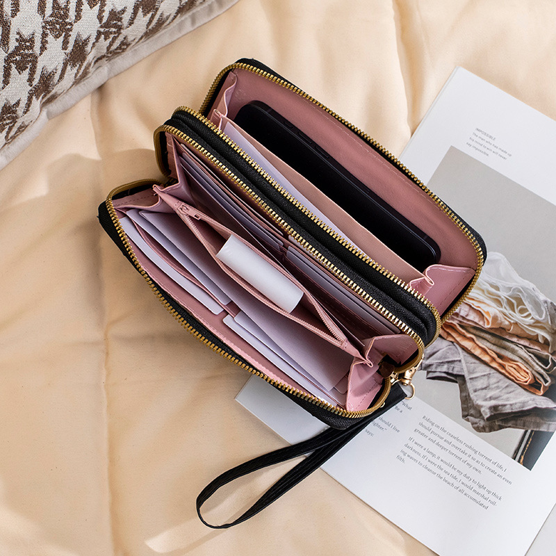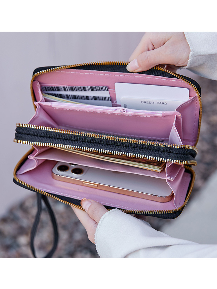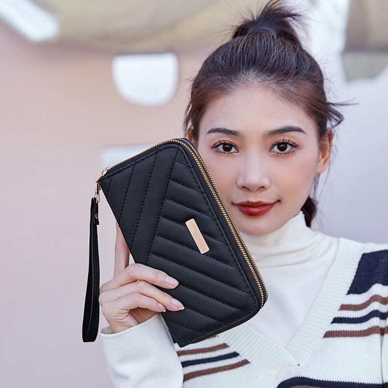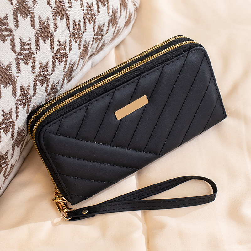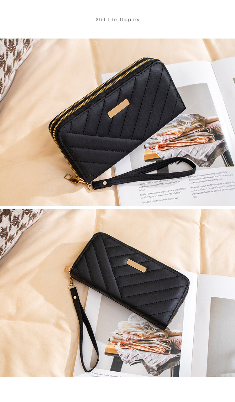长款女士钱包外贸新款时尚双拉链质感手拿包多卡位零钱包bags