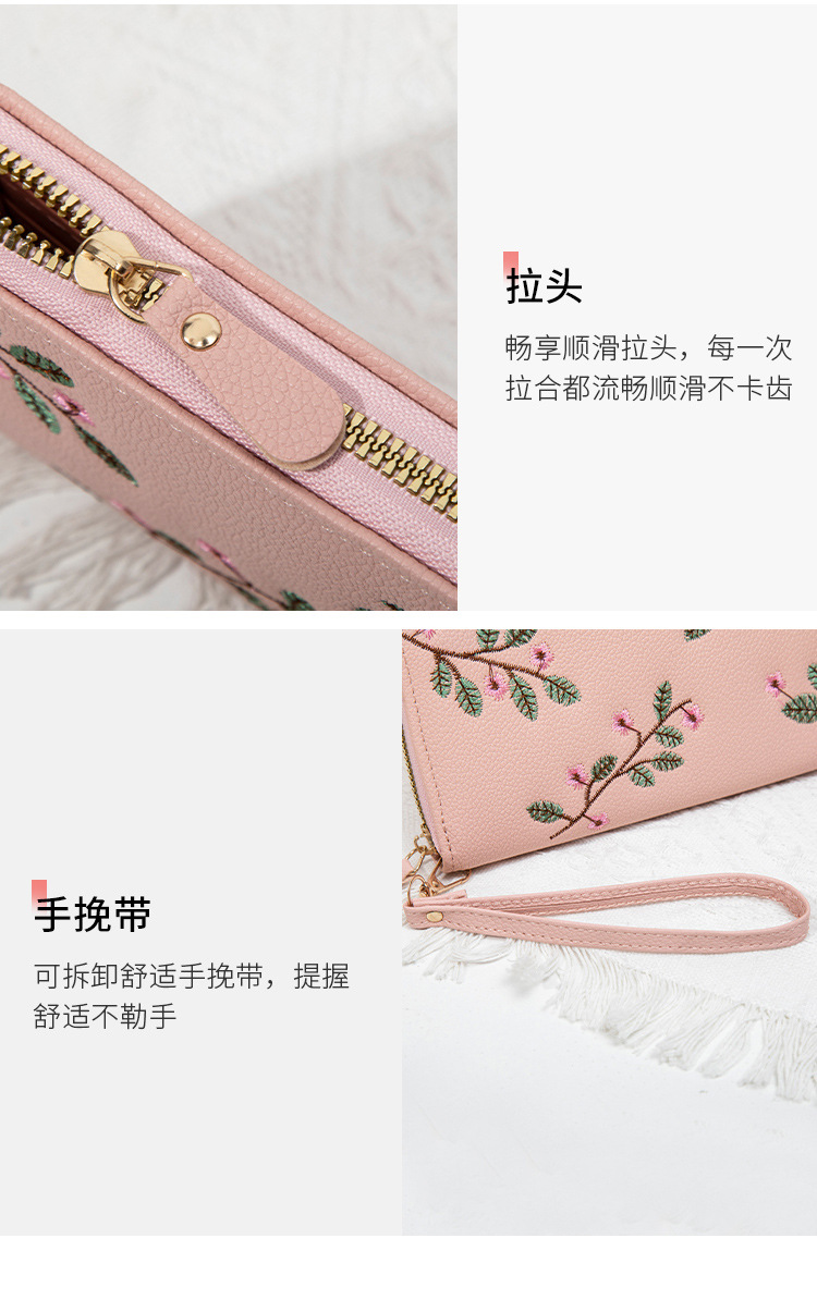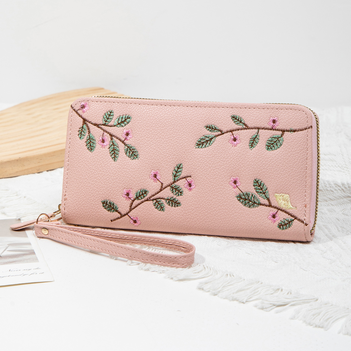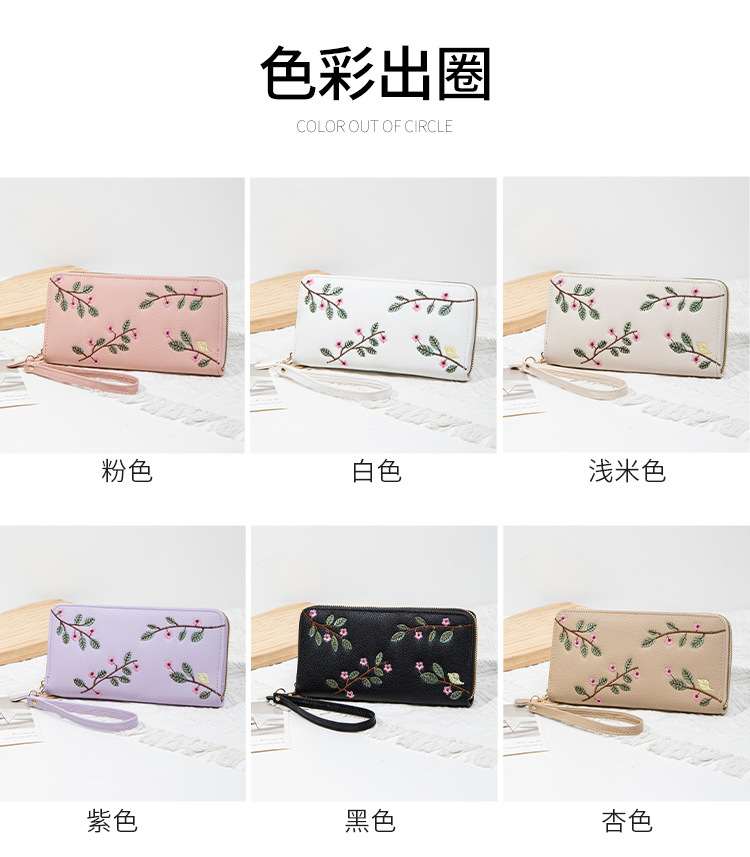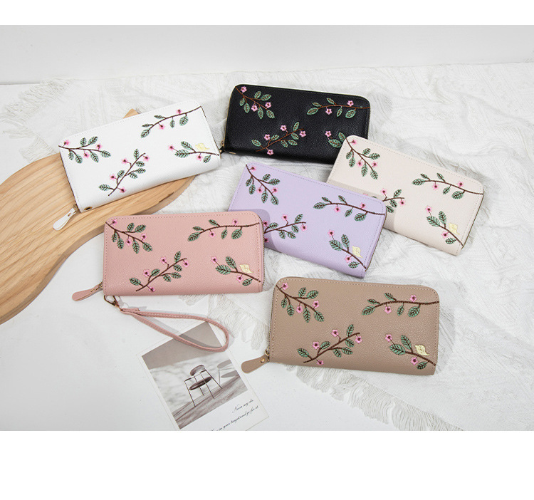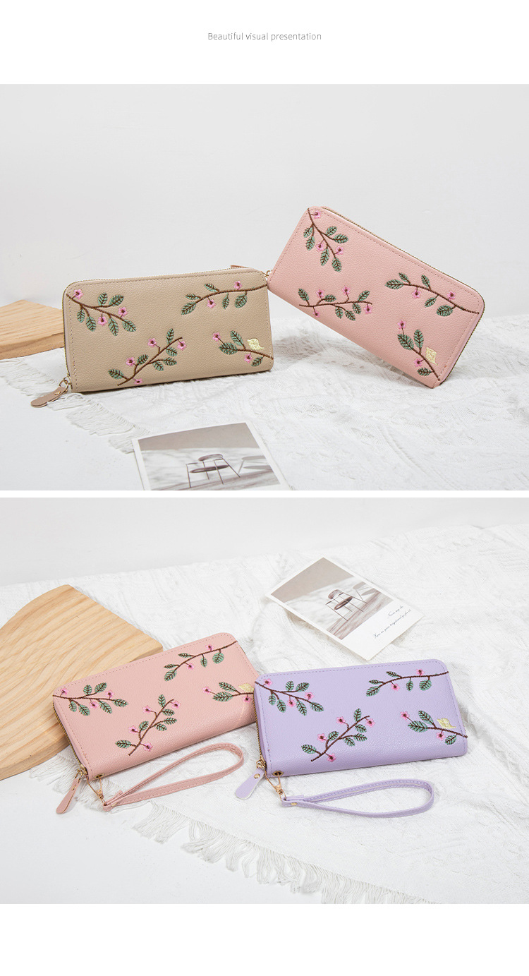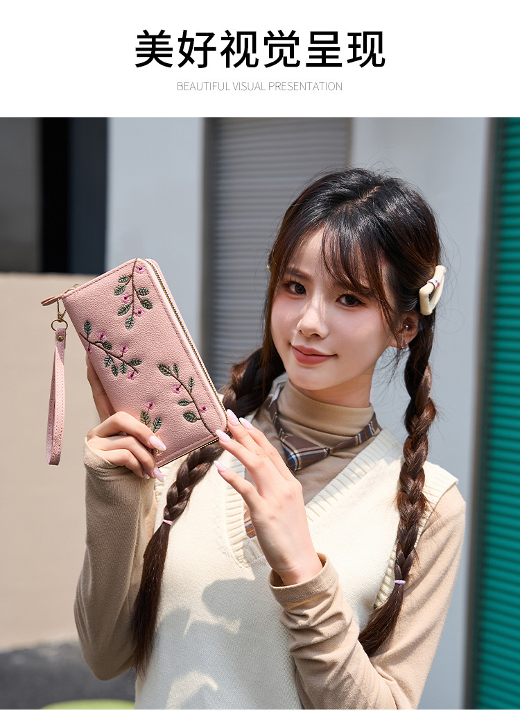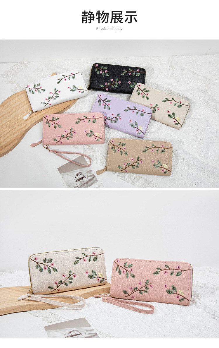 刺绣花朵钱包2025新款时尚感女士手拿包多卡位零钱包women wallet