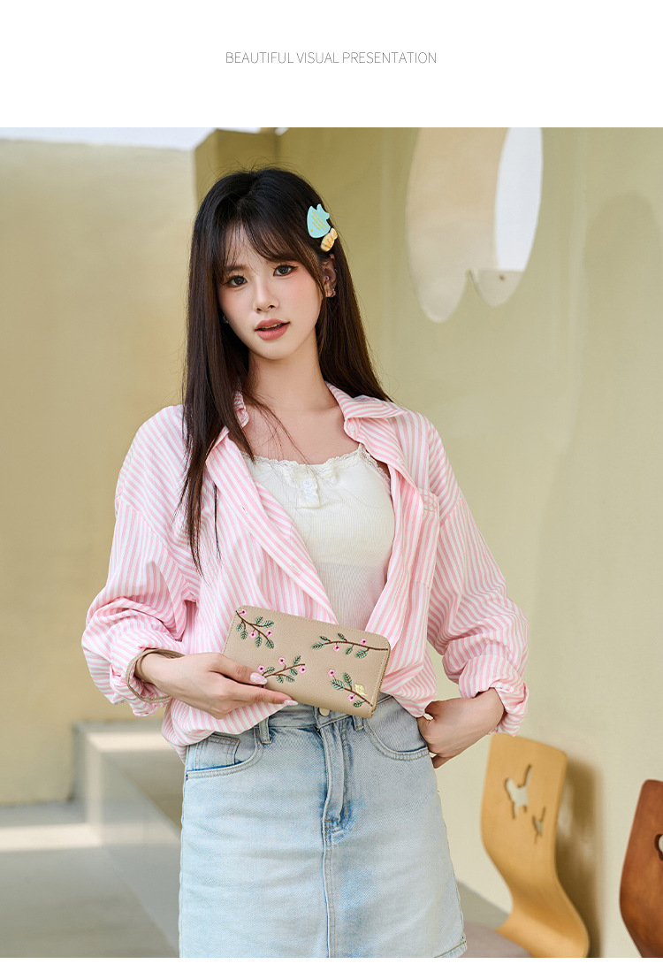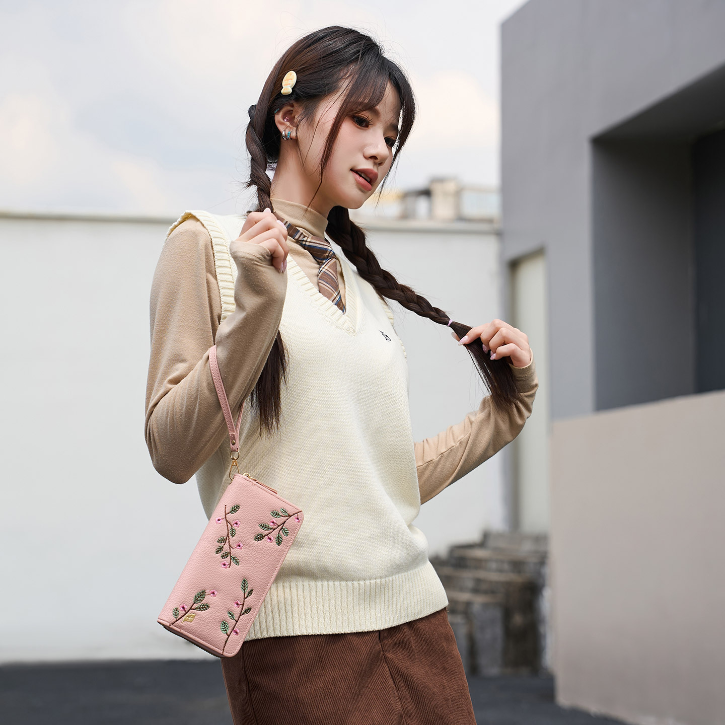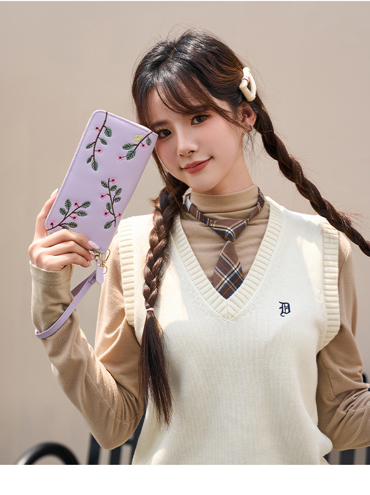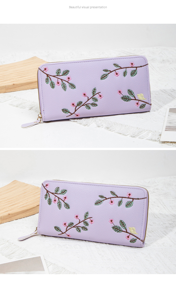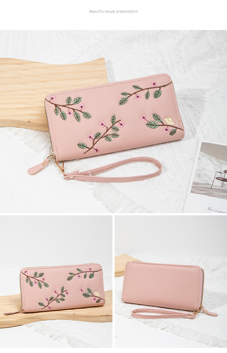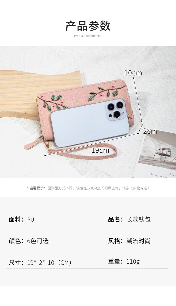 刺绣花朵钱包2025新款时尚感女士手拿包多卡位零钱包women wallet