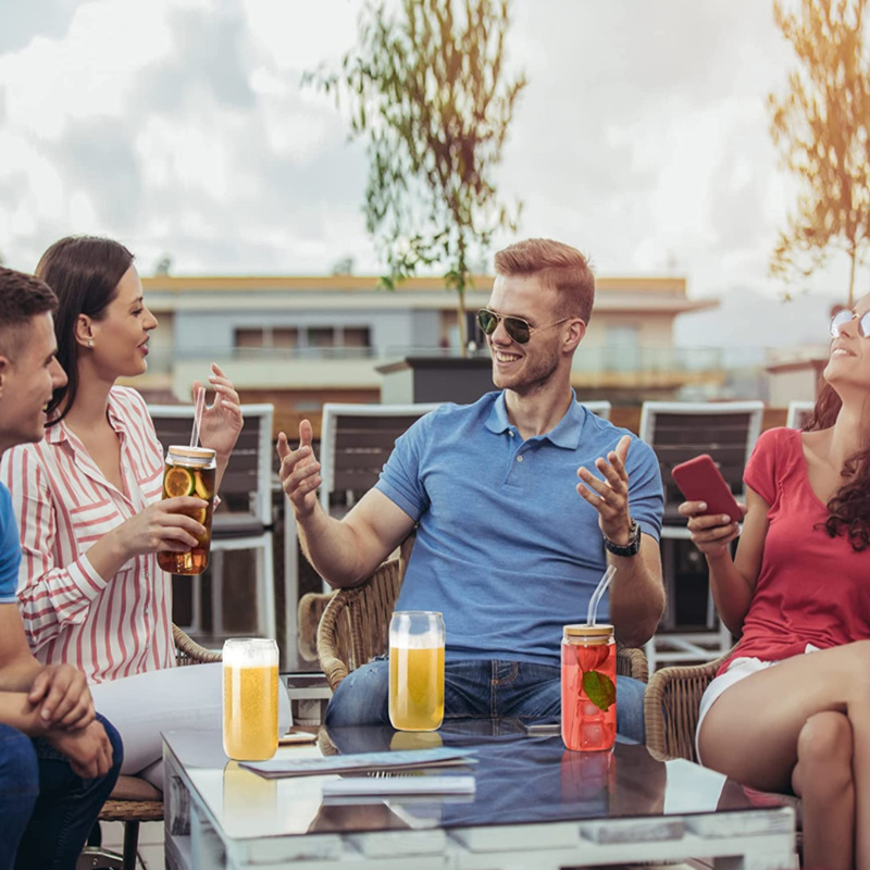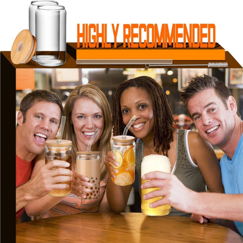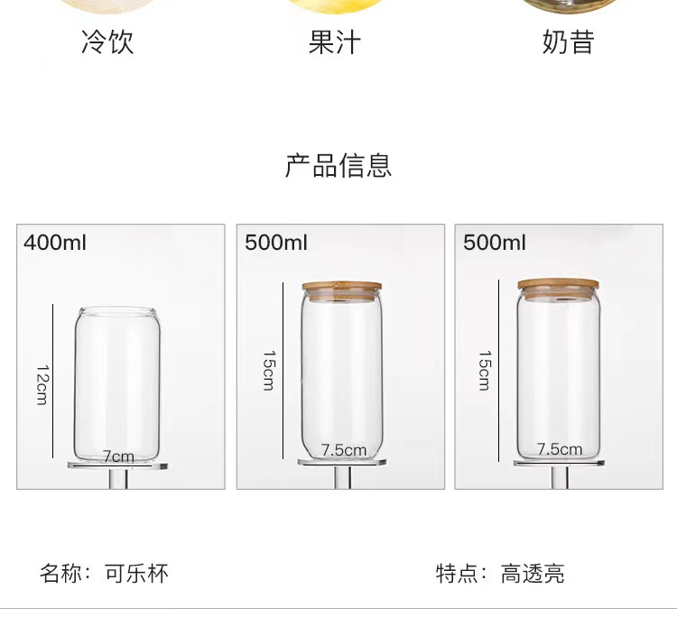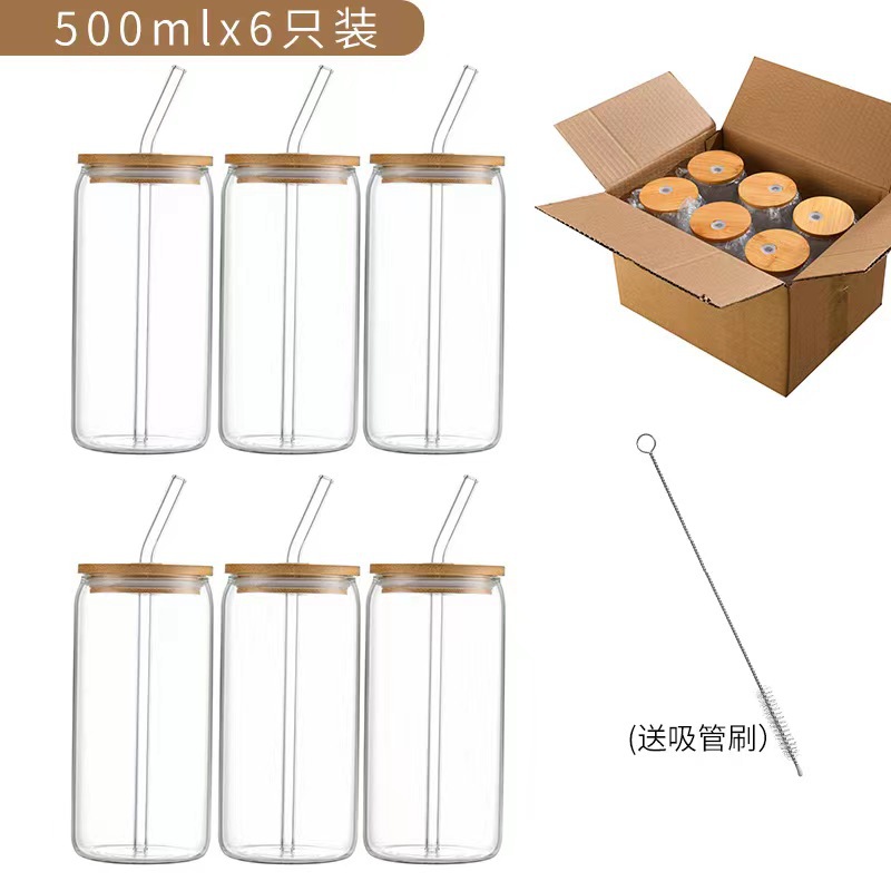 跨境亚马逊新款网红可乐杯16oz梅森杯竹盖玻璃饮料果汁杯带吸管