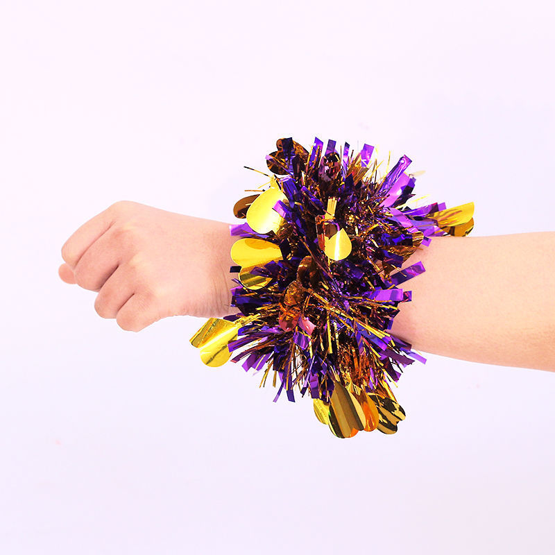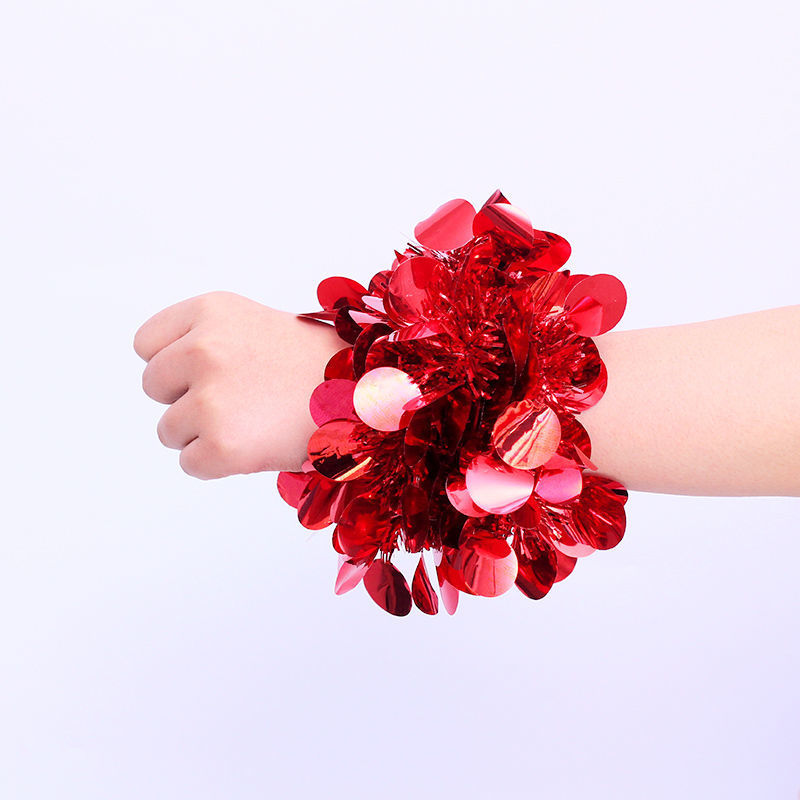 幼儿园跳舞蹈手腕花六一儿童节日表演出亮片手环花运动会道具铃铛