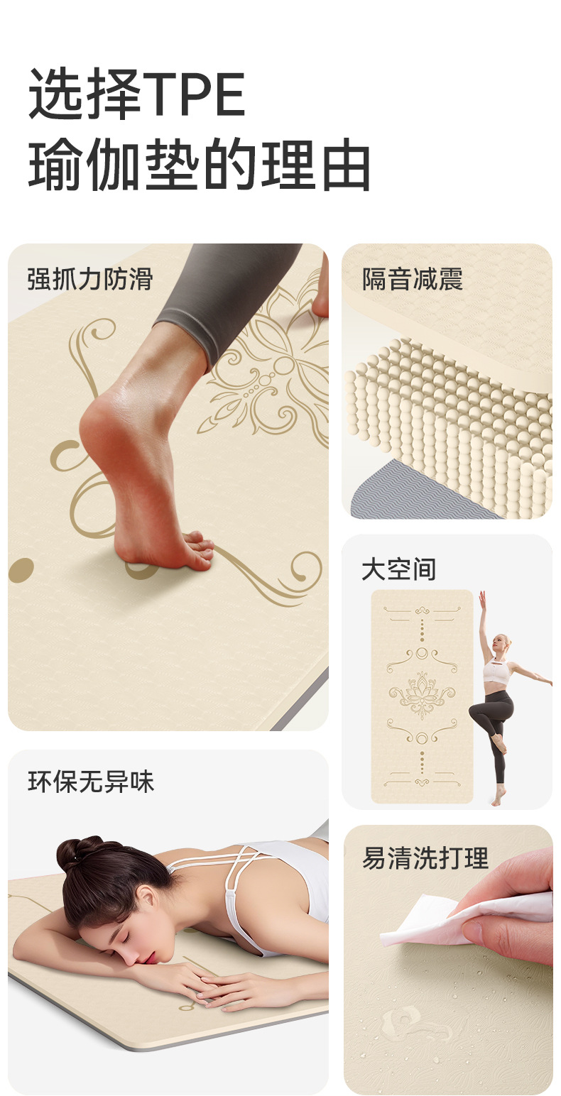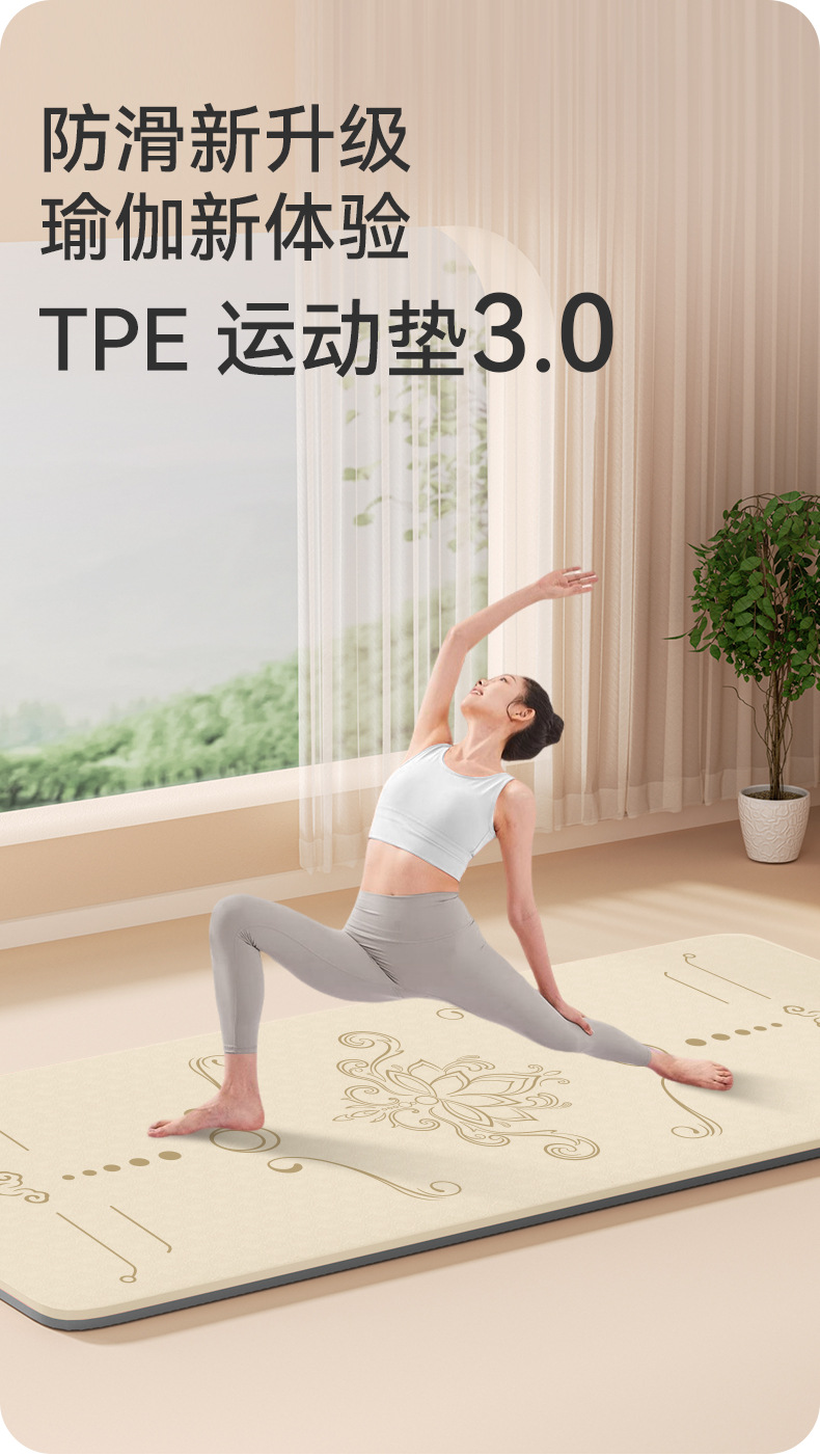加宽tpe瑜伽垫加厚防滑健身垫家用静音运动跳绳舞蹈垫子厂家批发