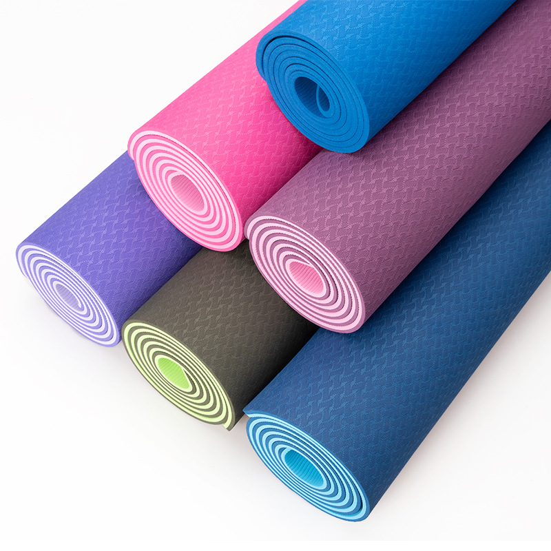 厂家直销TPE瑜伽垫防滑减震加厚加宽家用舞蹈隔音健身地垫批发