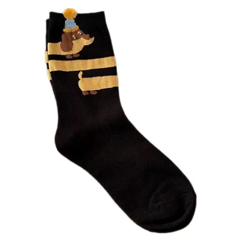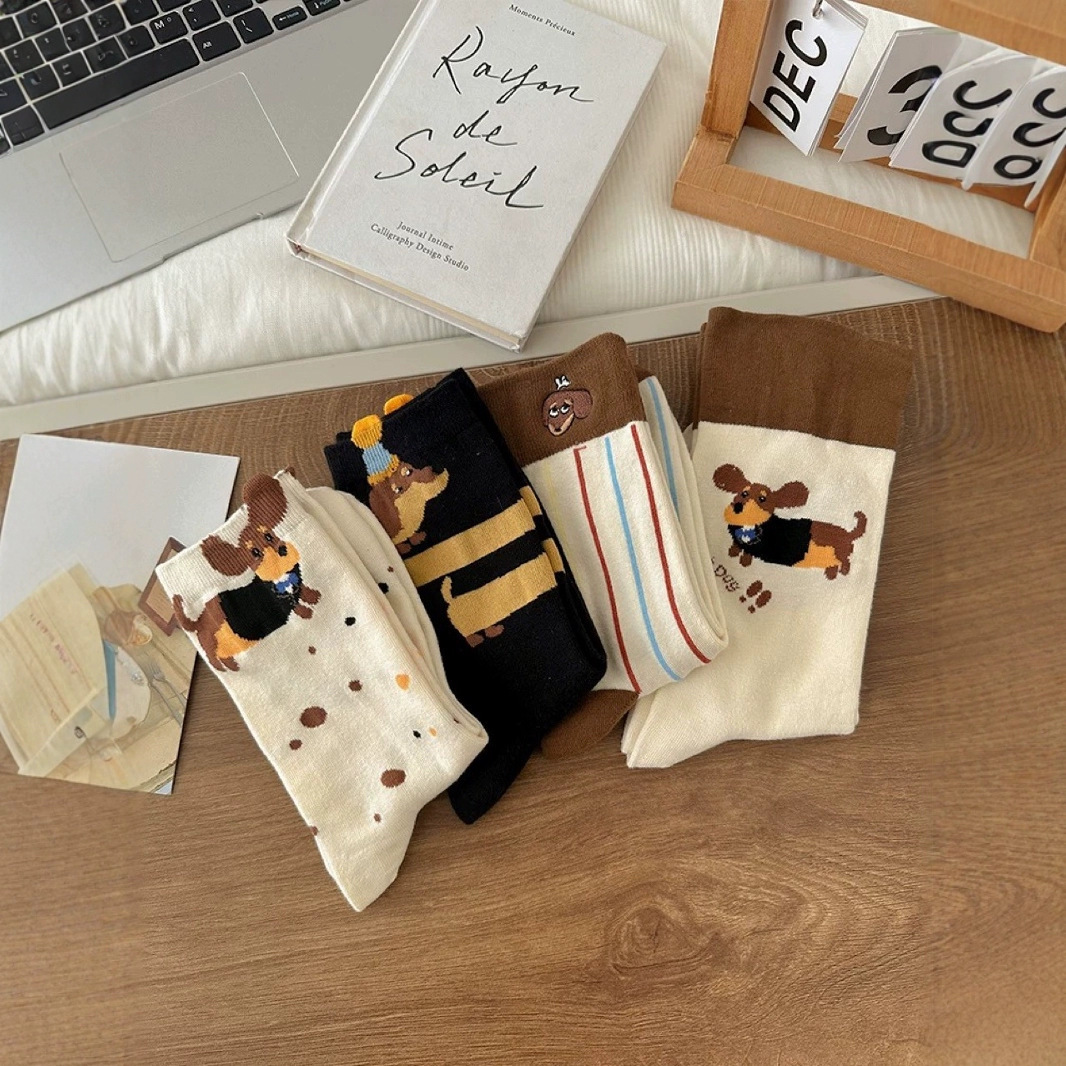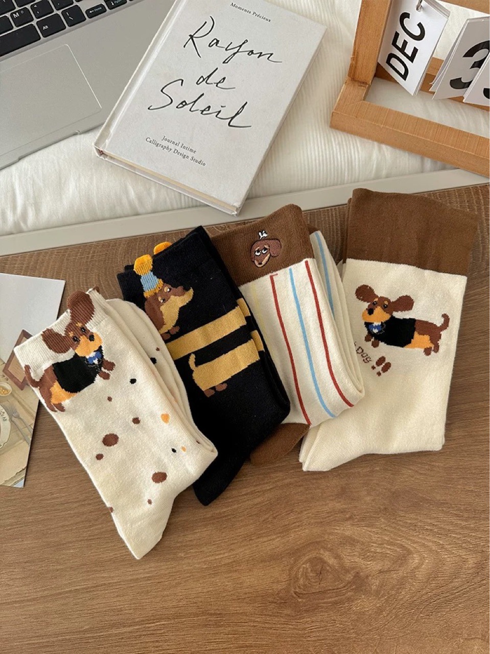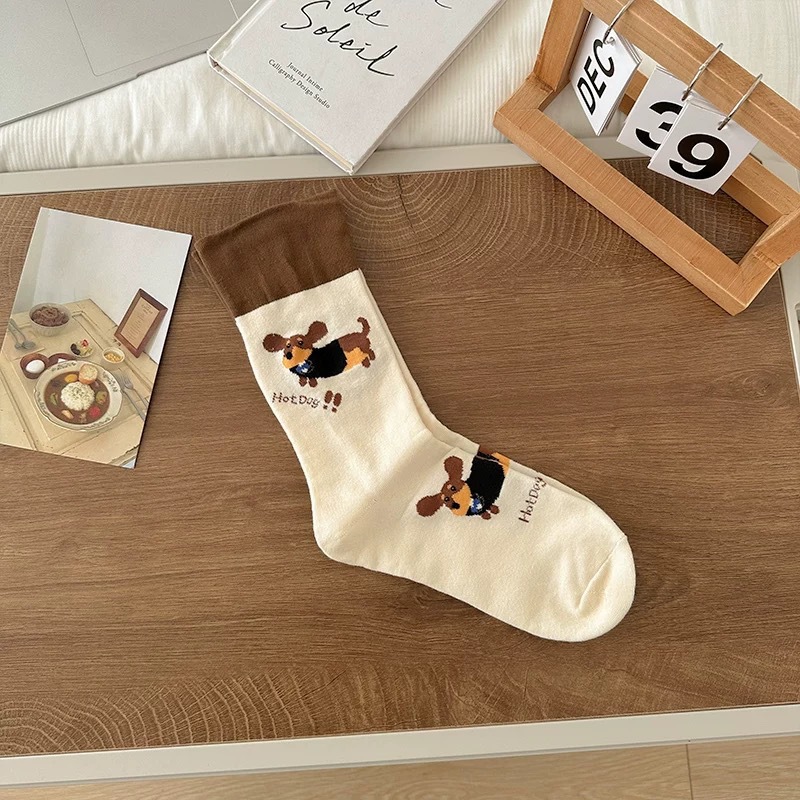 少女可爱腊肠小狗袜子女中筒袜春秋新款棉质日系卡通个性堆堆长袜