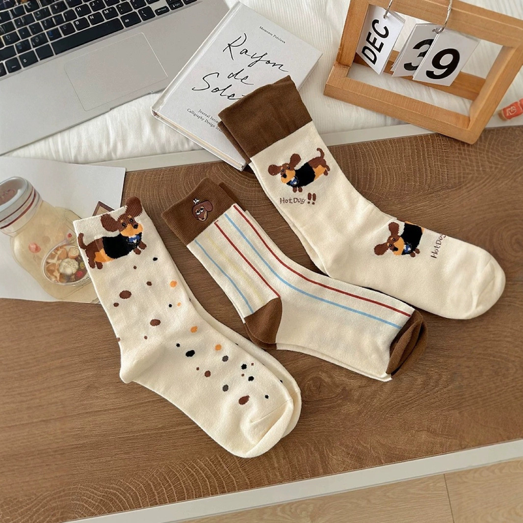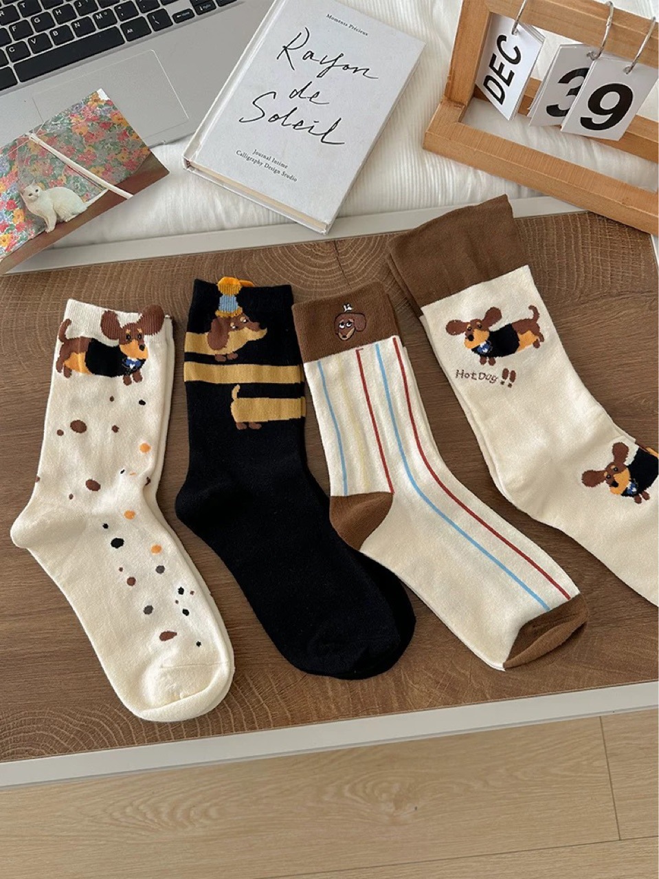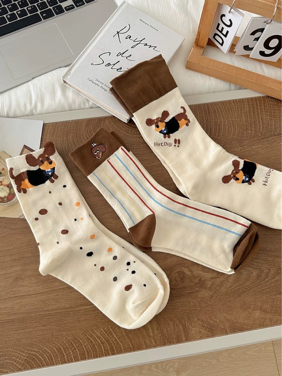 少女可爱腊肠小狗袜子女中筒袜春秋新款棉质日系卡通个性堆堆长袜
