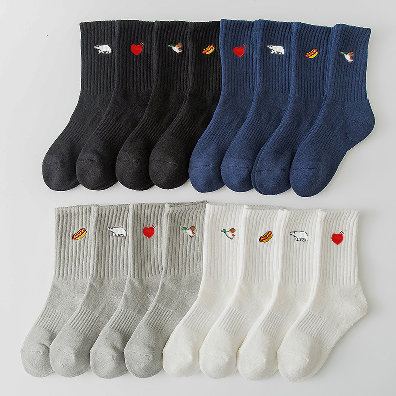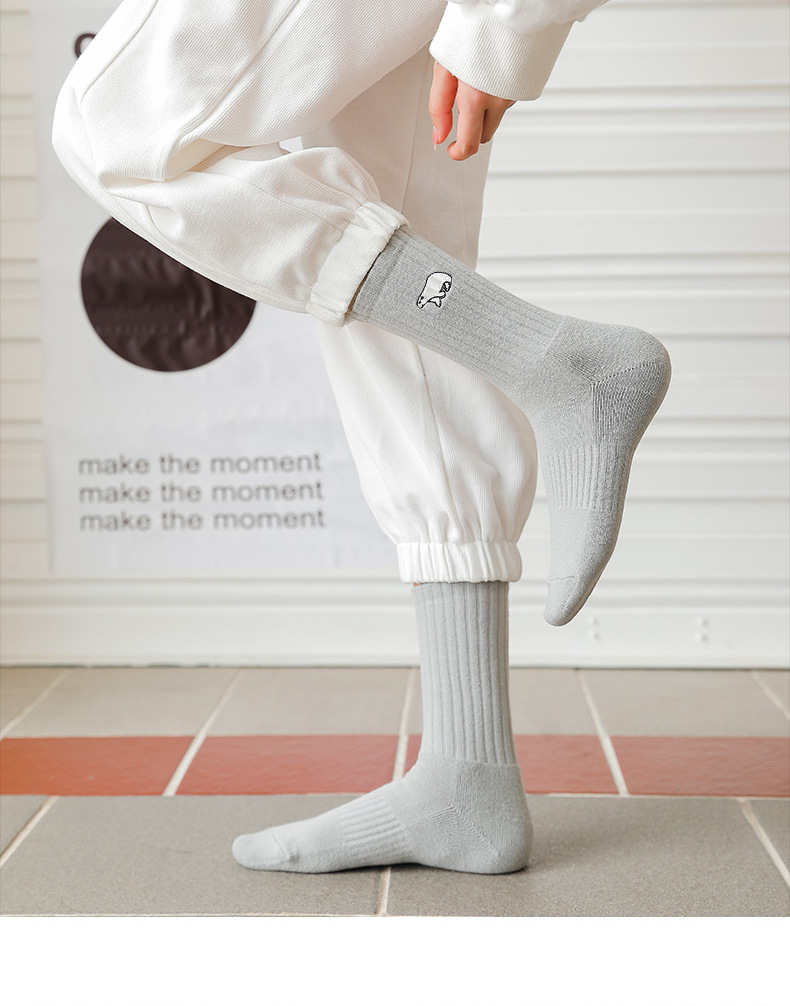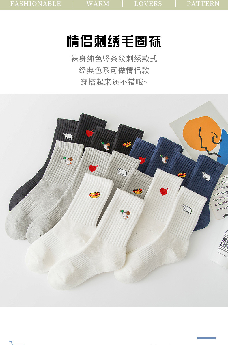 情侣四季袜子厚款毛巾底吸汗中筒毛圈刺绣运动袜诸暨袜子批发