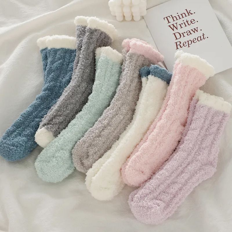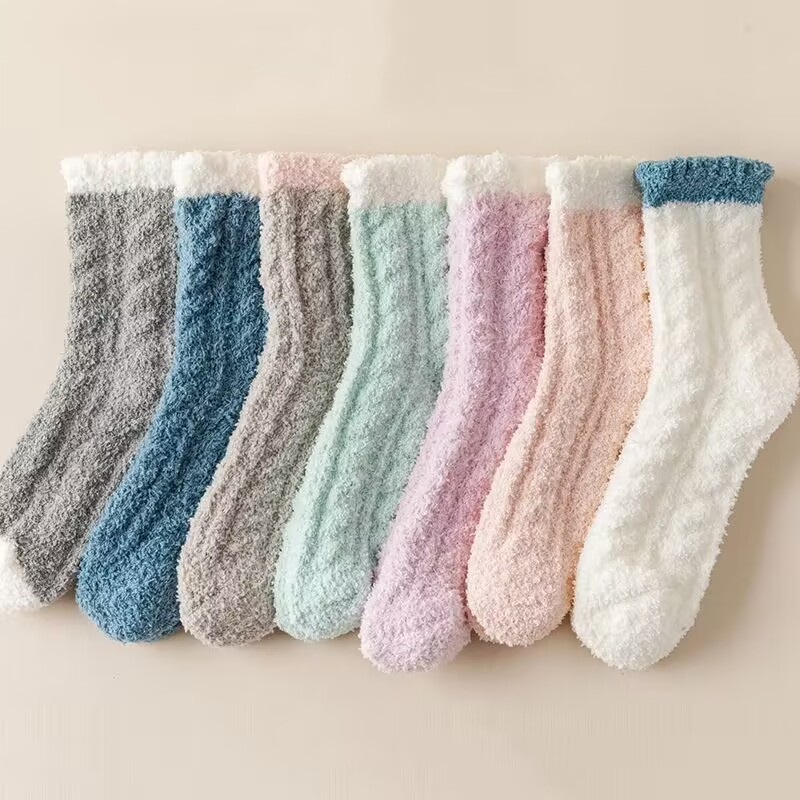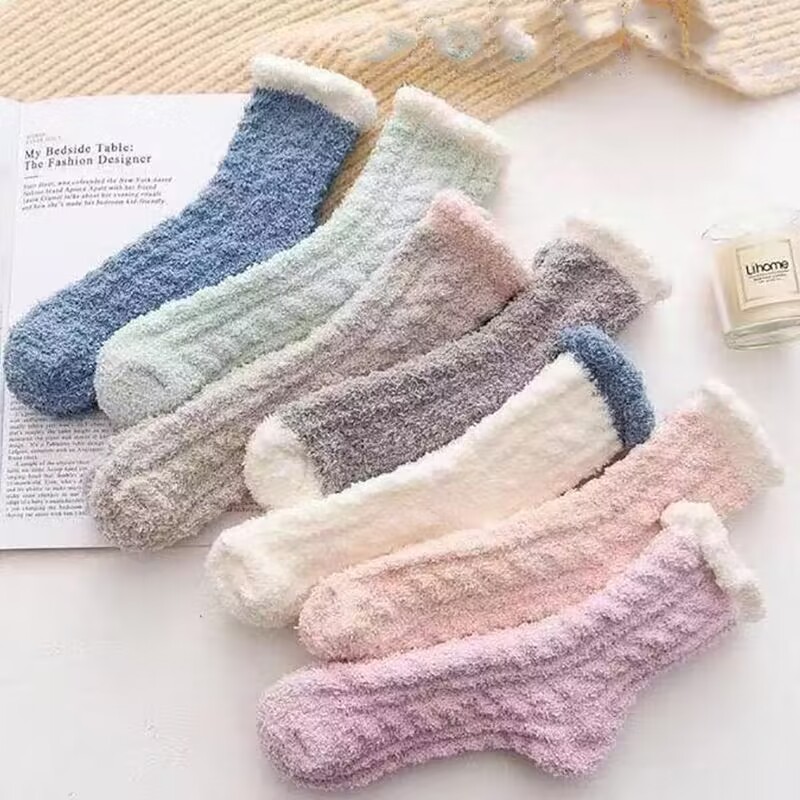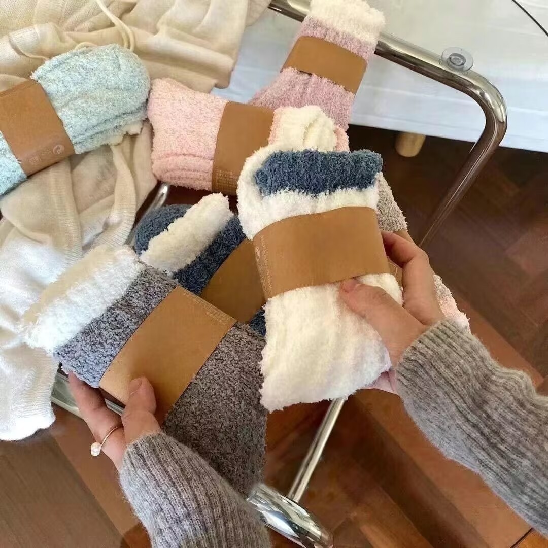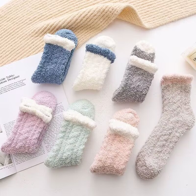 秋冬少女珊瑚绒袜子女加绒居家保暖睡眠地板袜防寒毛绒百搭月子袜