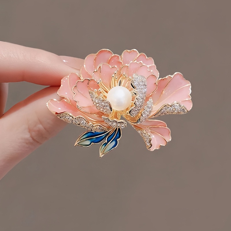 复古花开富贵牡丹花胸针女高档彩绘立体花朵胸花国潮气质别针配饰
