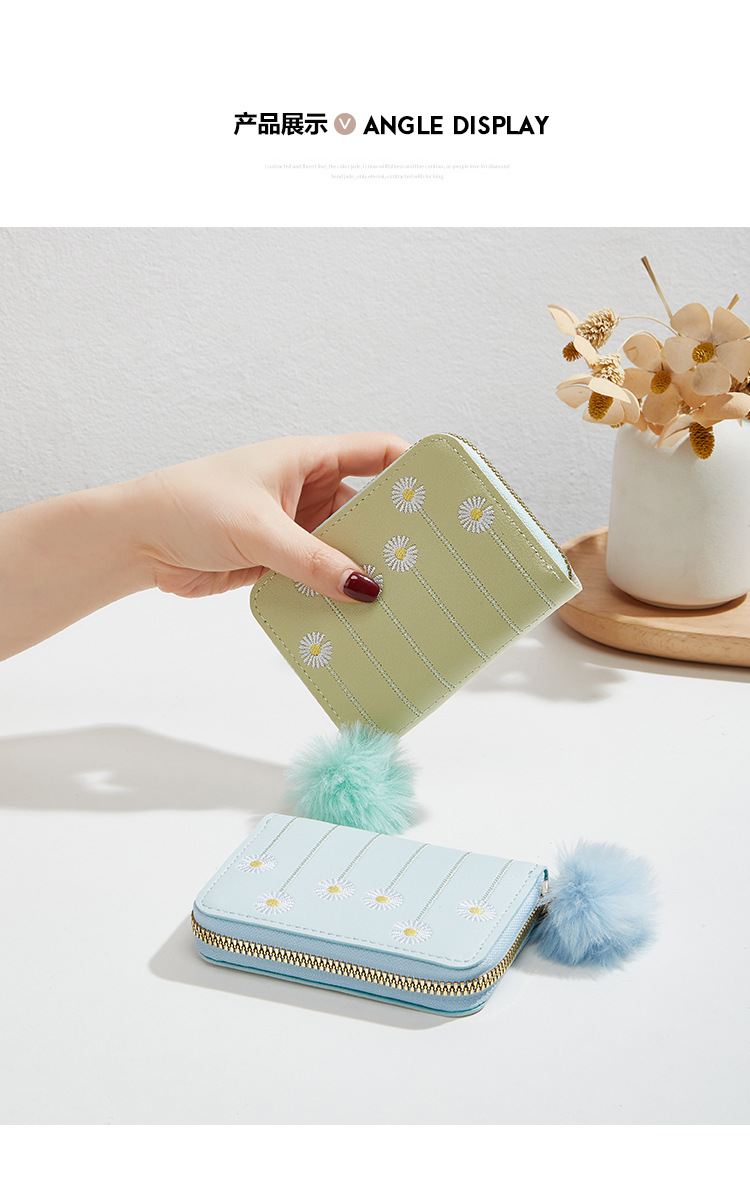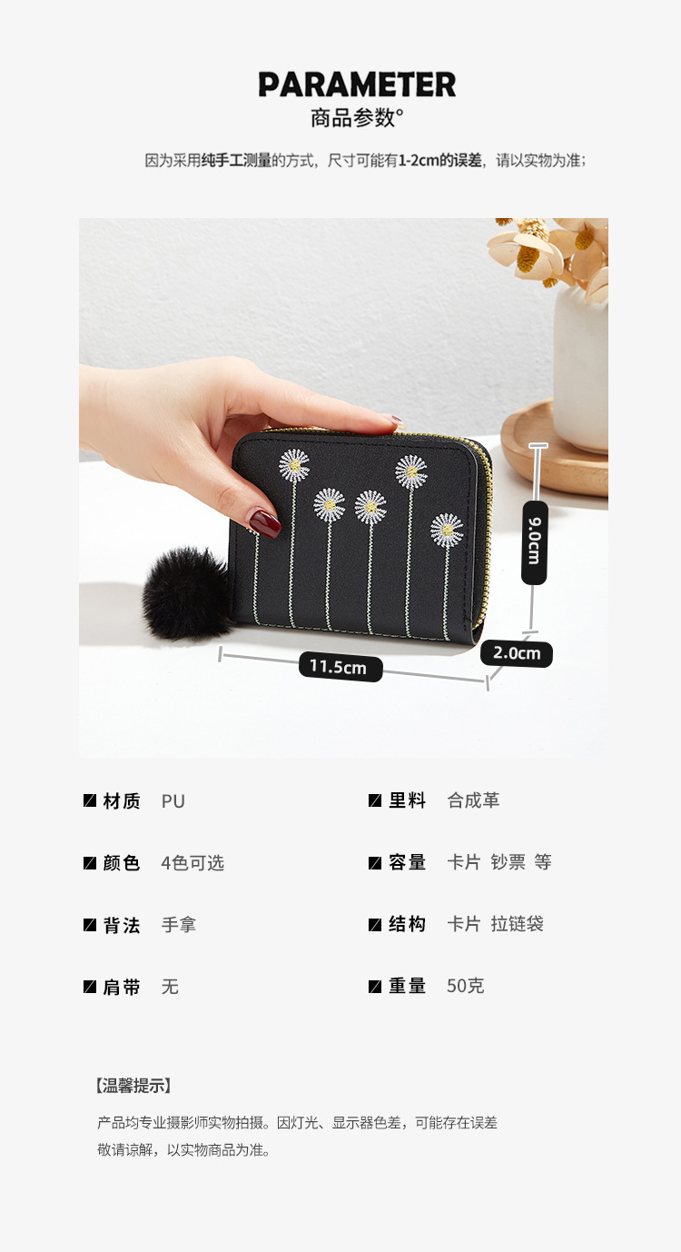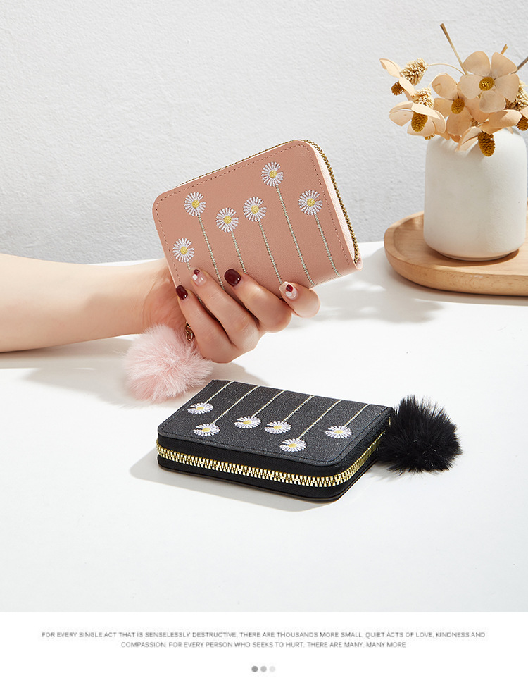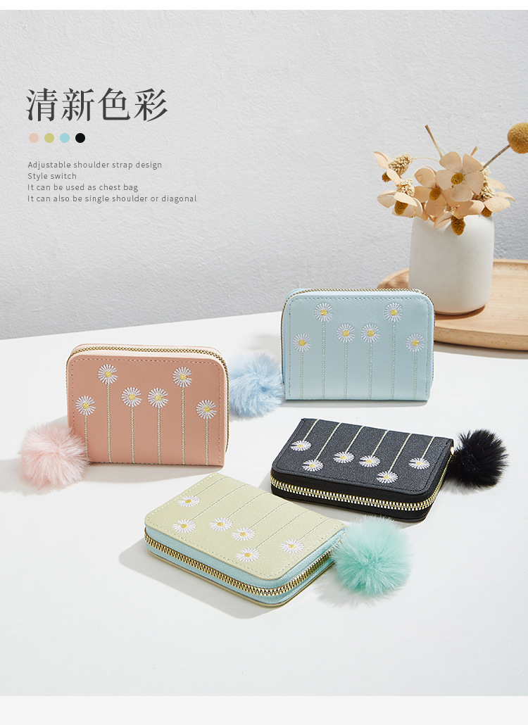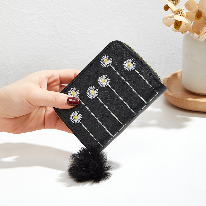 外贸批发短款钱包新款毛绒时尚手拿包卡包刺绣花朵钱包迷你purses