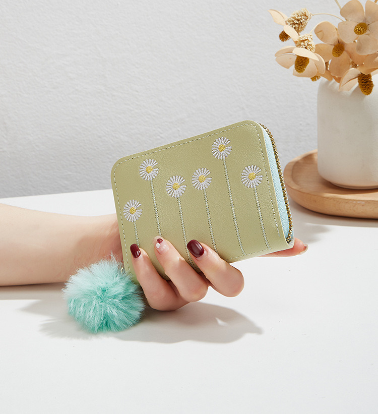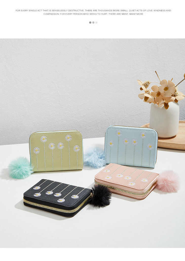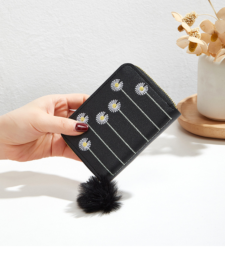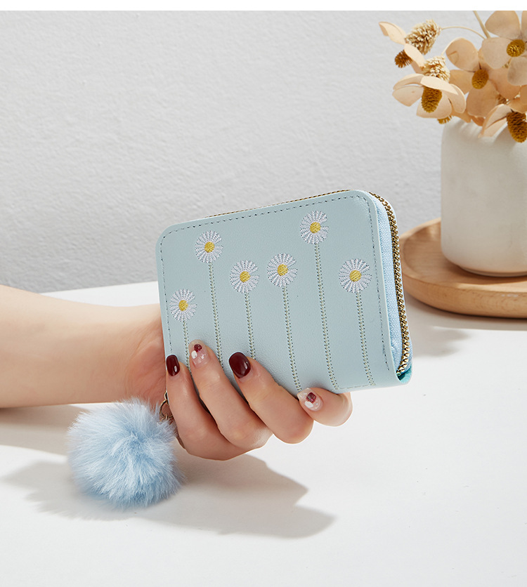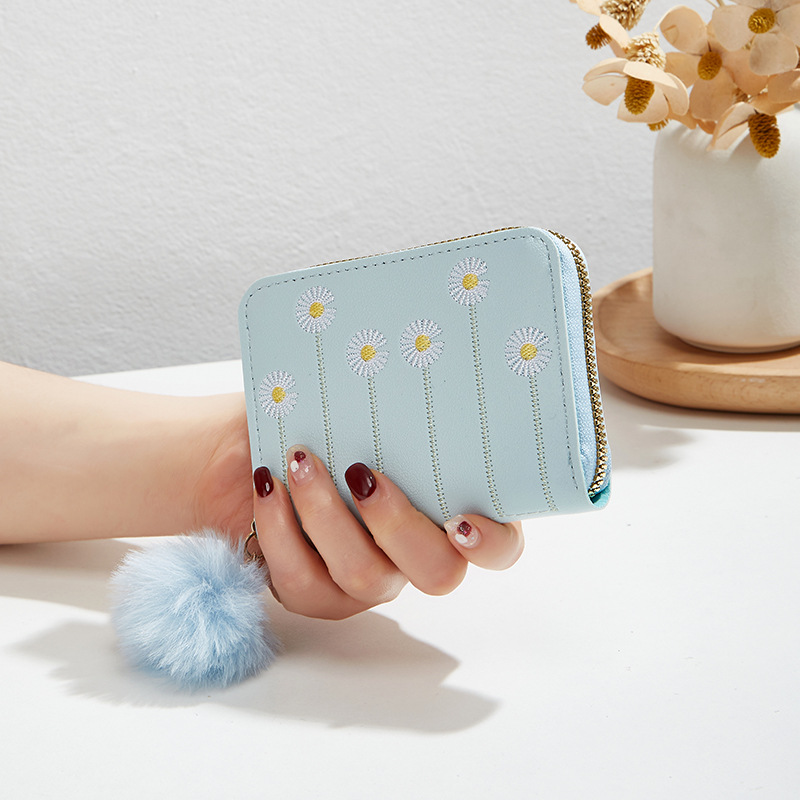 外贸批发短款钱包新款毛绒时尚手拿包卡包刺绣花朵钱包迷你purses