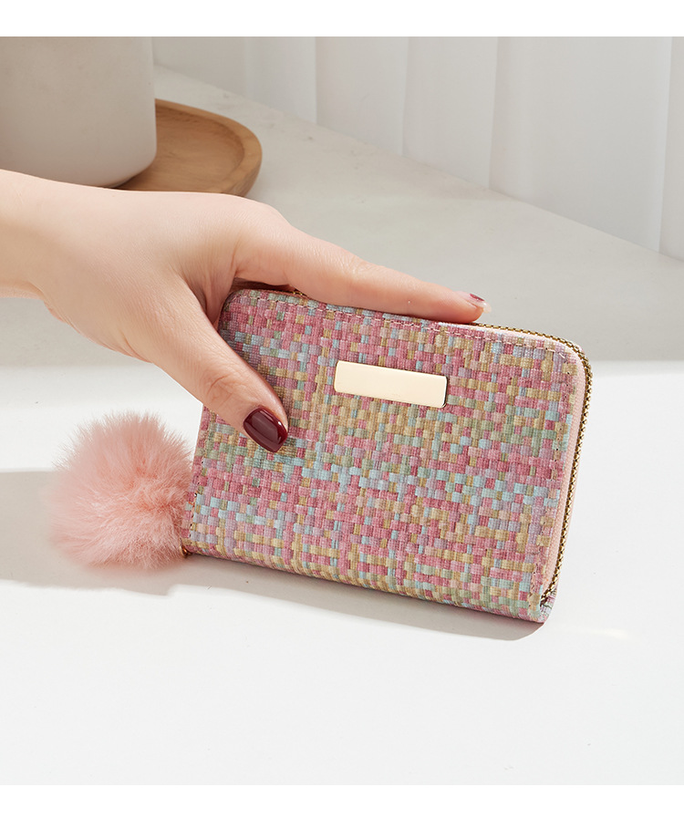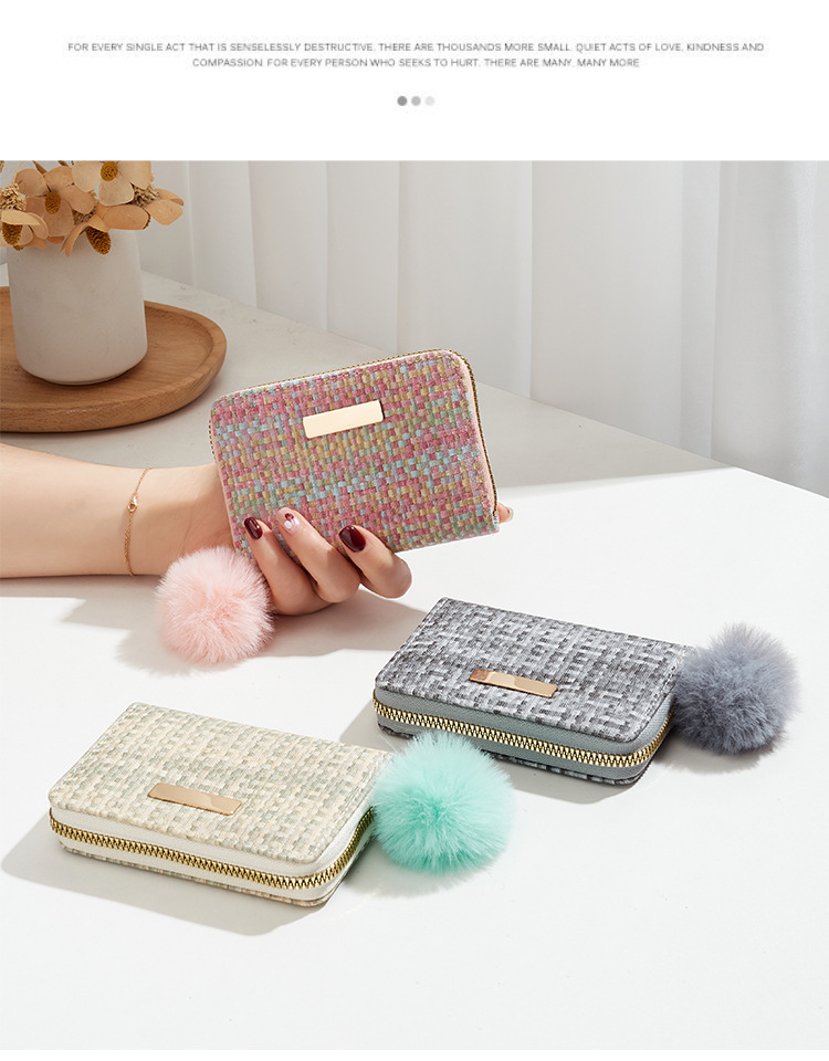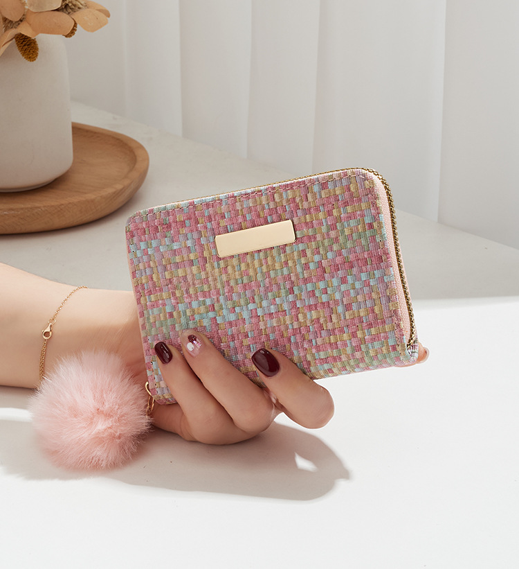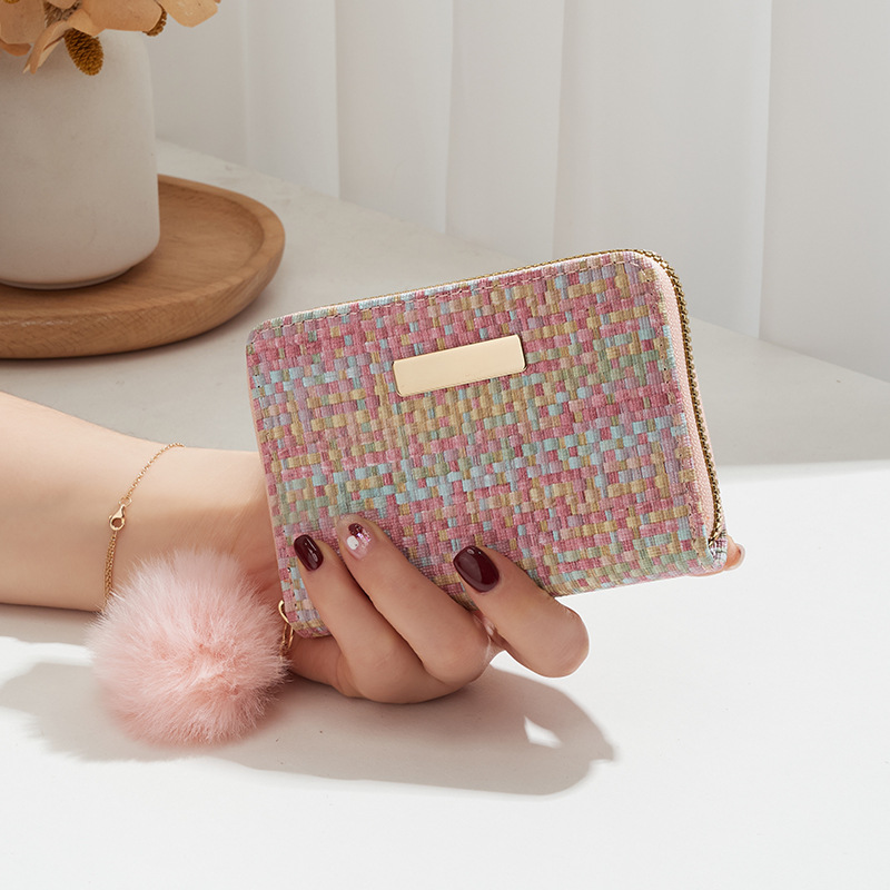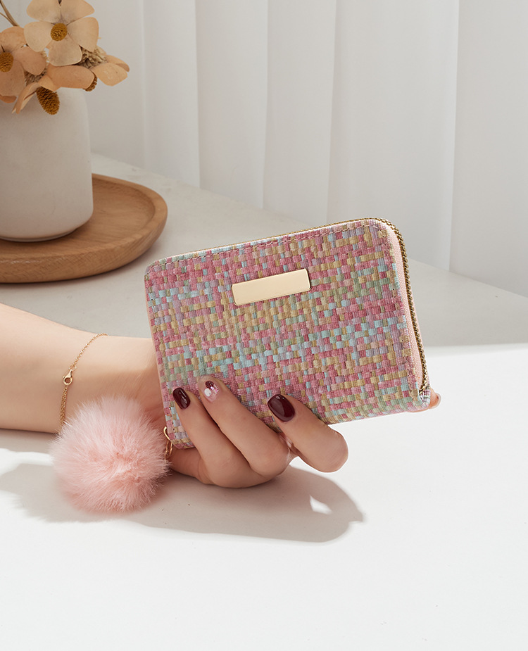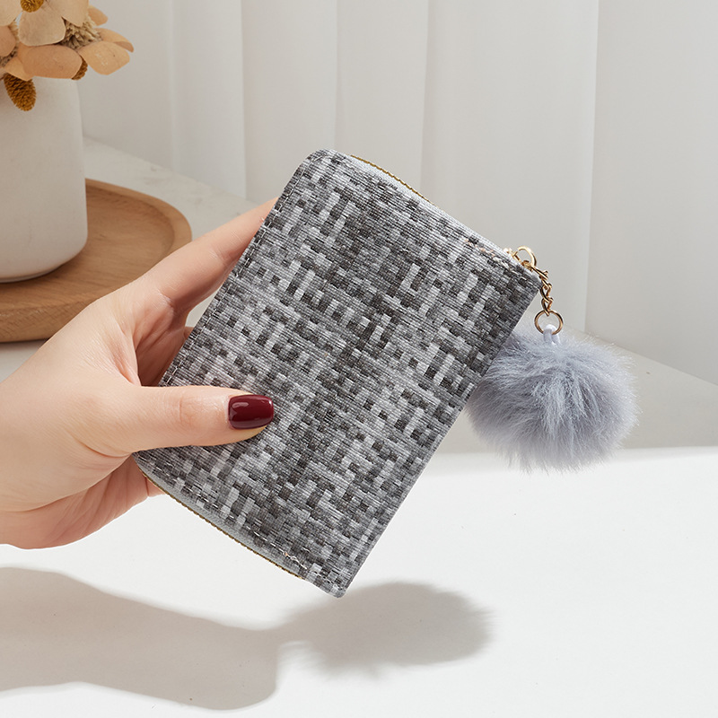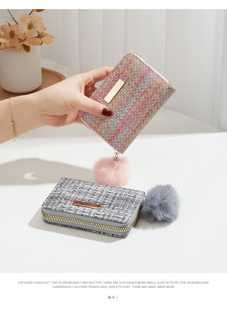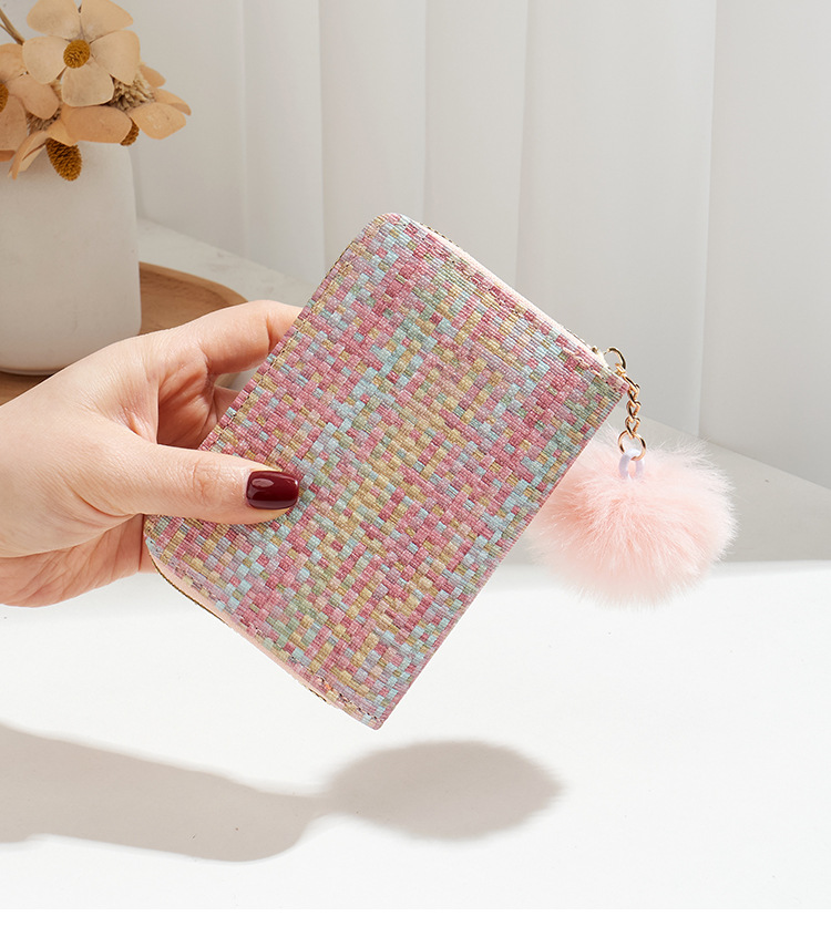 彩色编织小卡包短款钱包新品钱包钱夹女士零钱包毛绒挂件小钱包