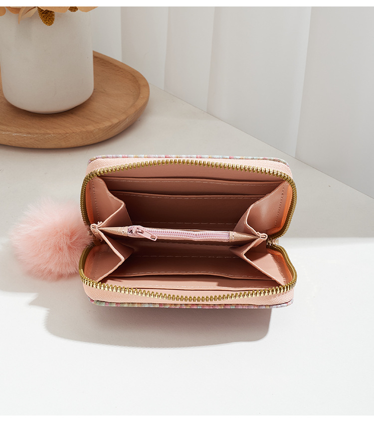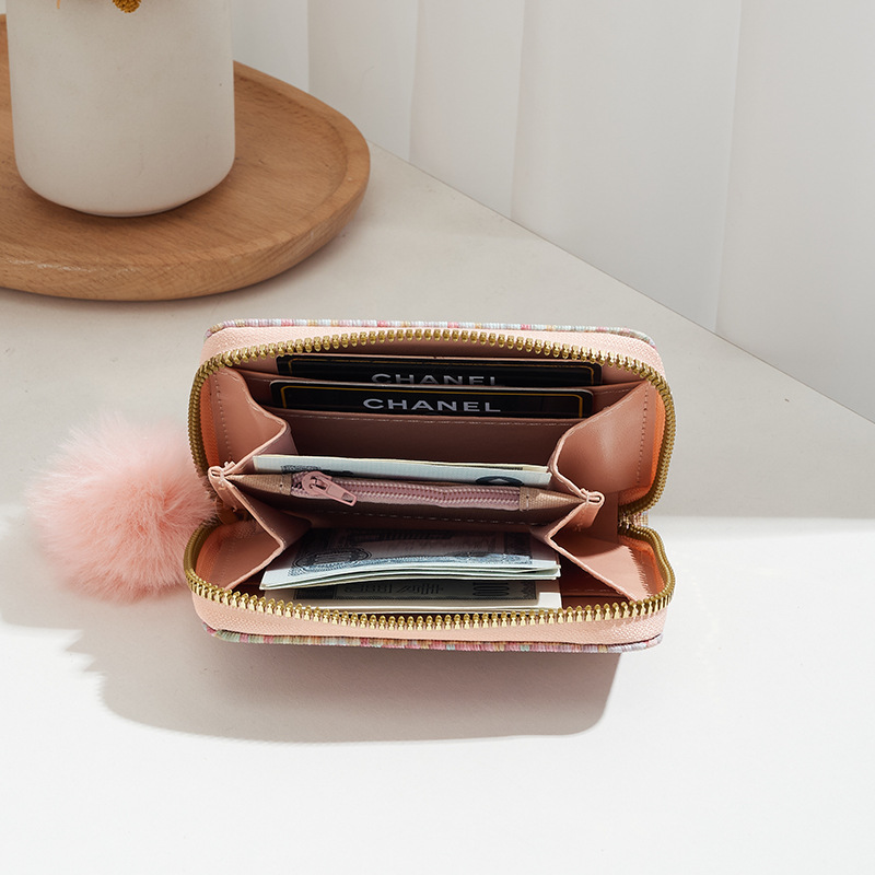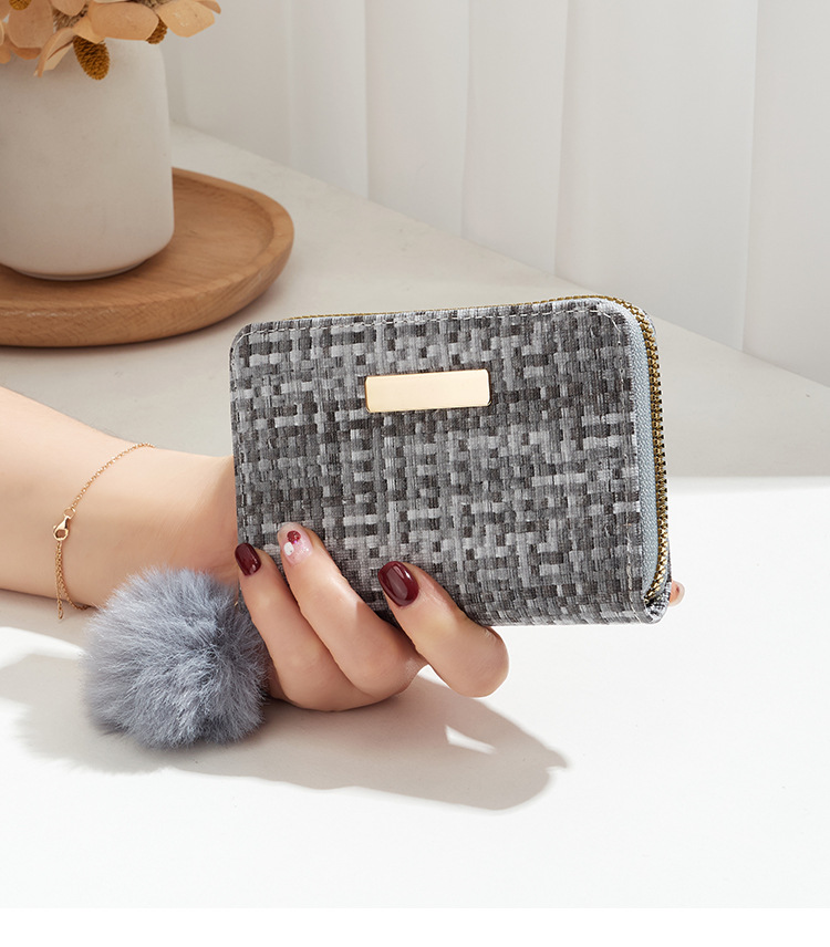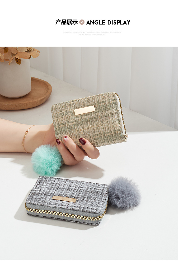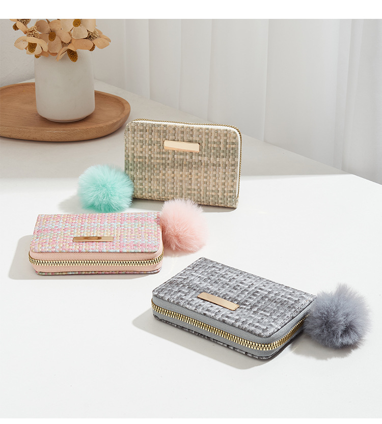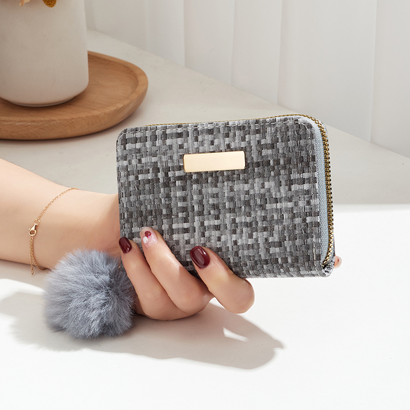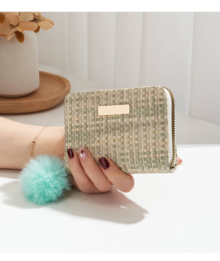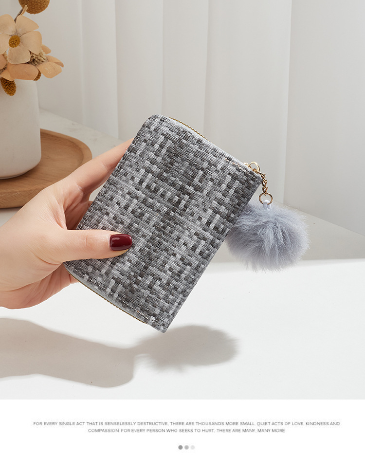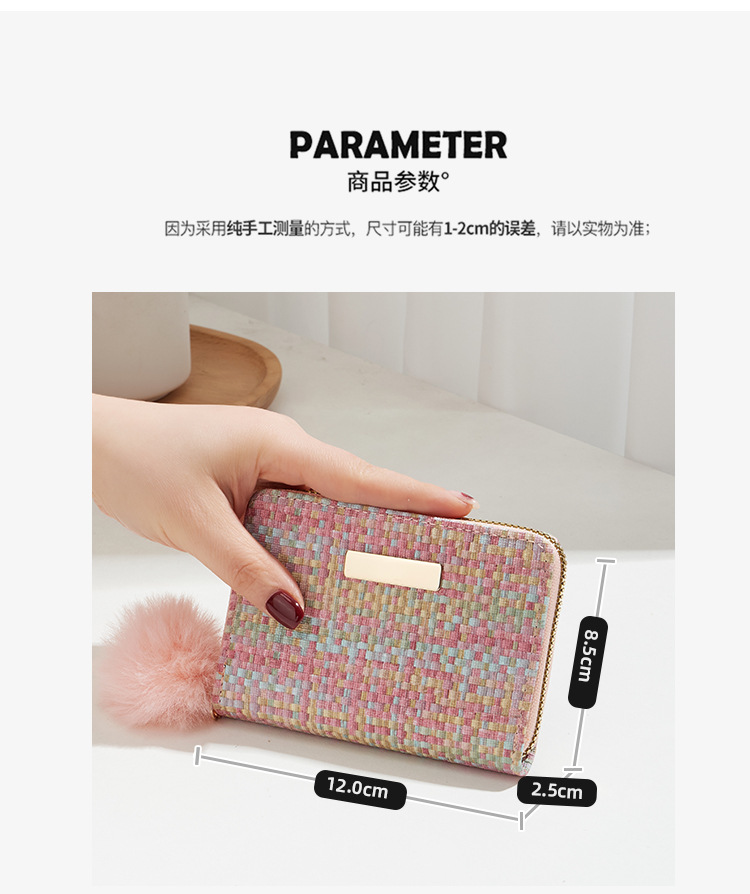 彩色编织小卡包短款钱包新品钱包钱夹女士零钱包毛绒挂件小钱包