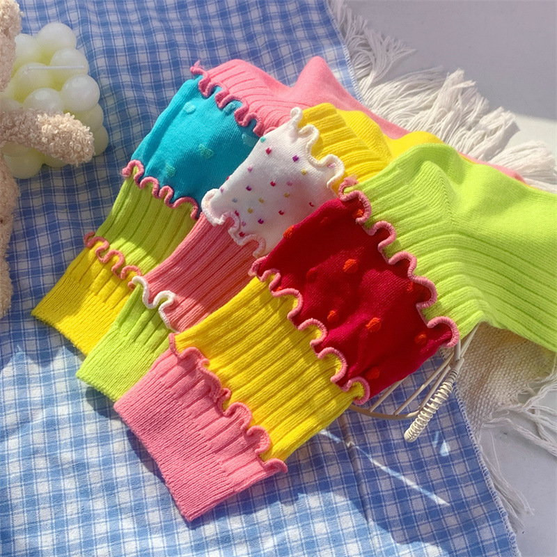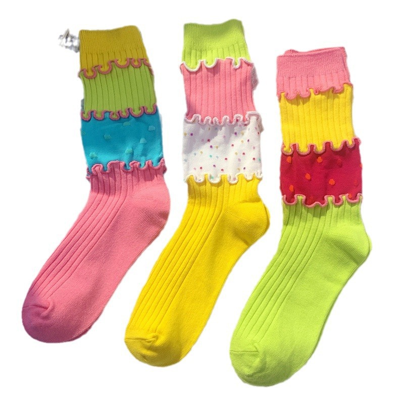 多巴胺色拼接袜子日系风街头吸汗袜网红可爱创意中筒堆堆袜女彩色