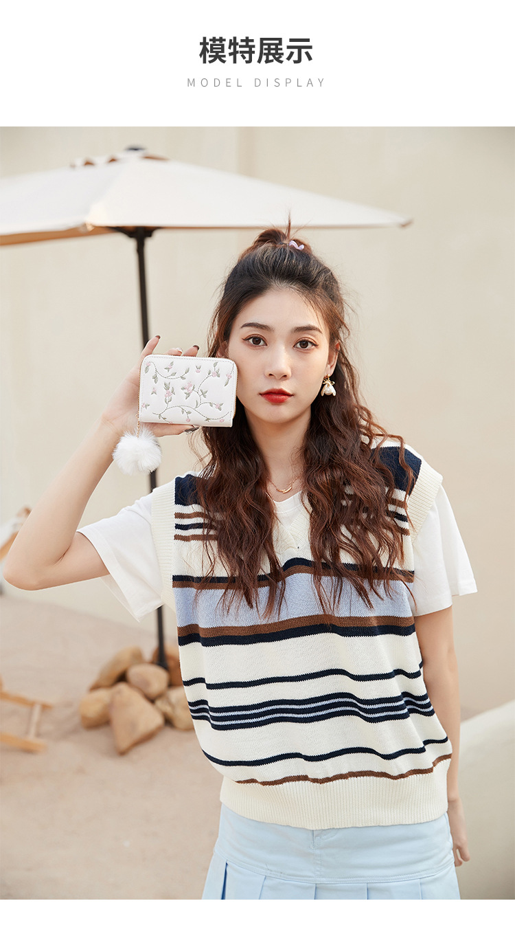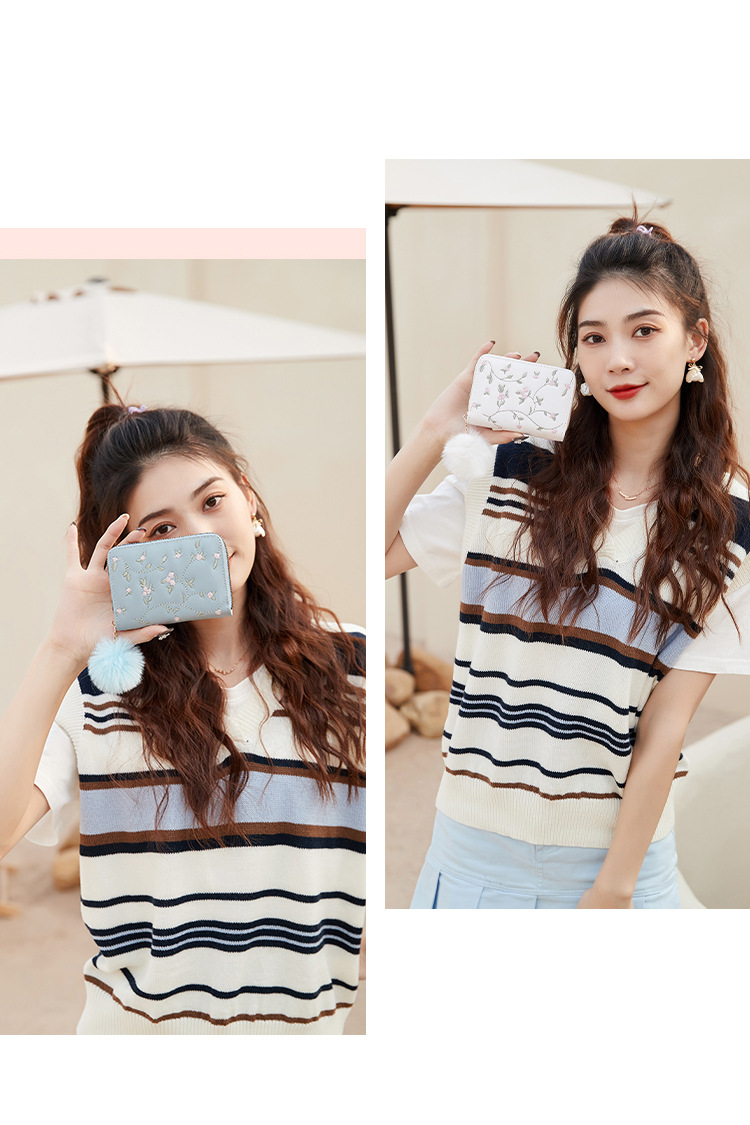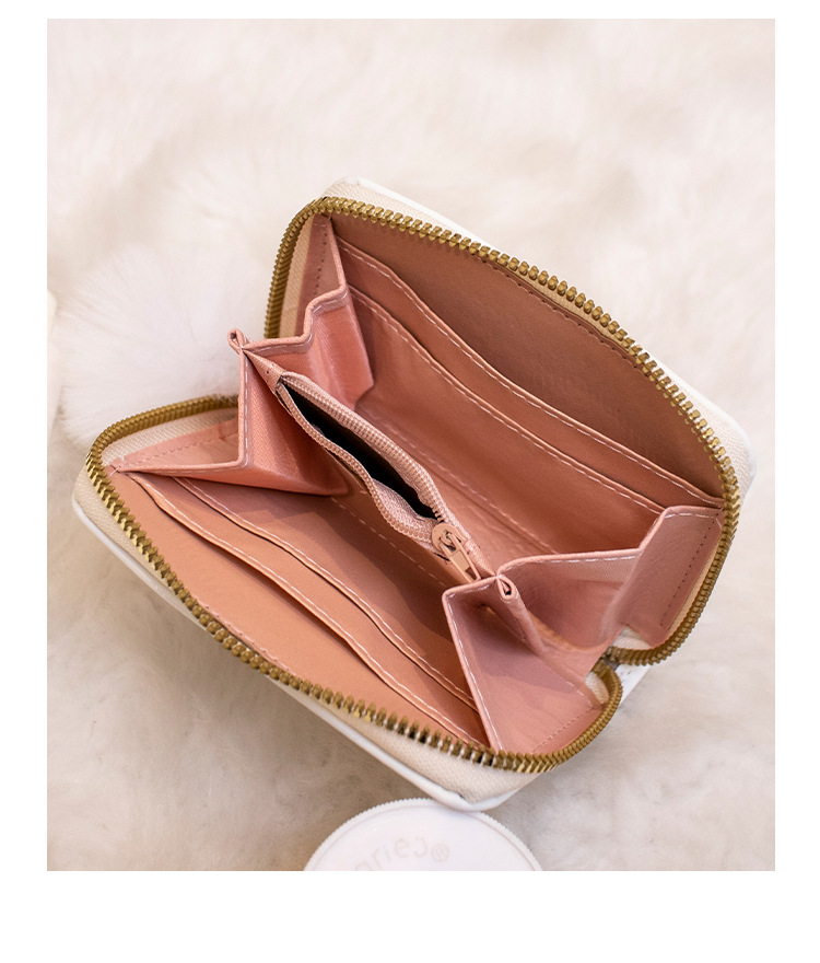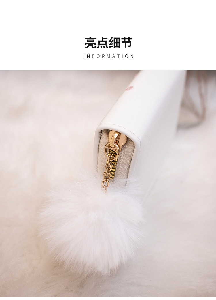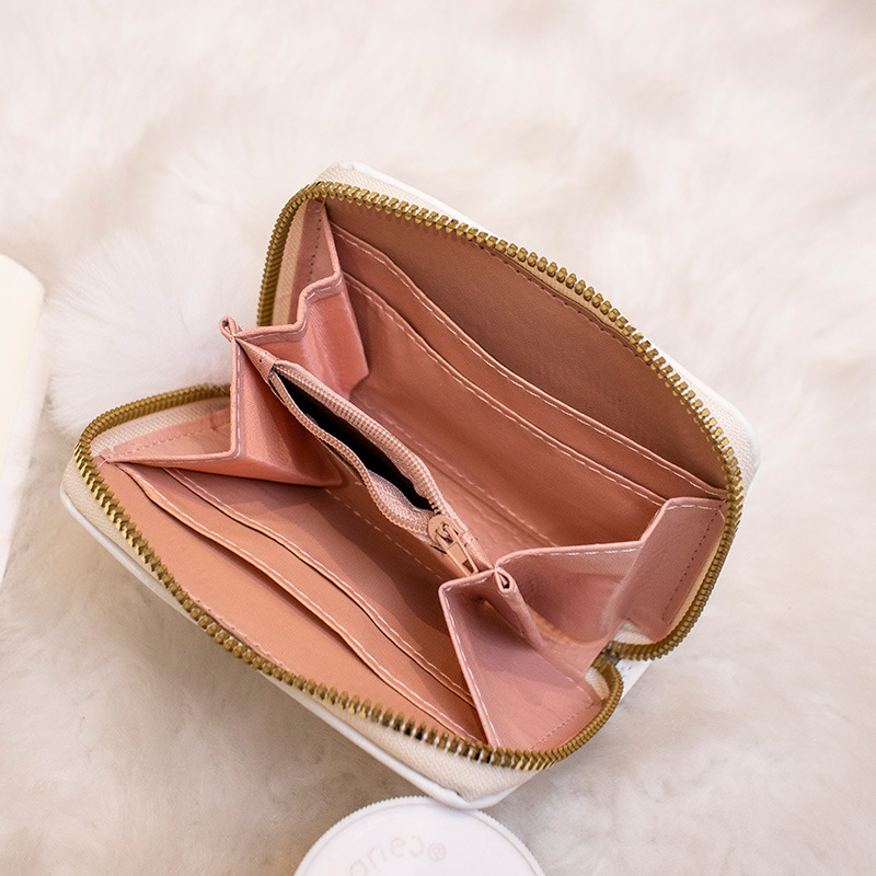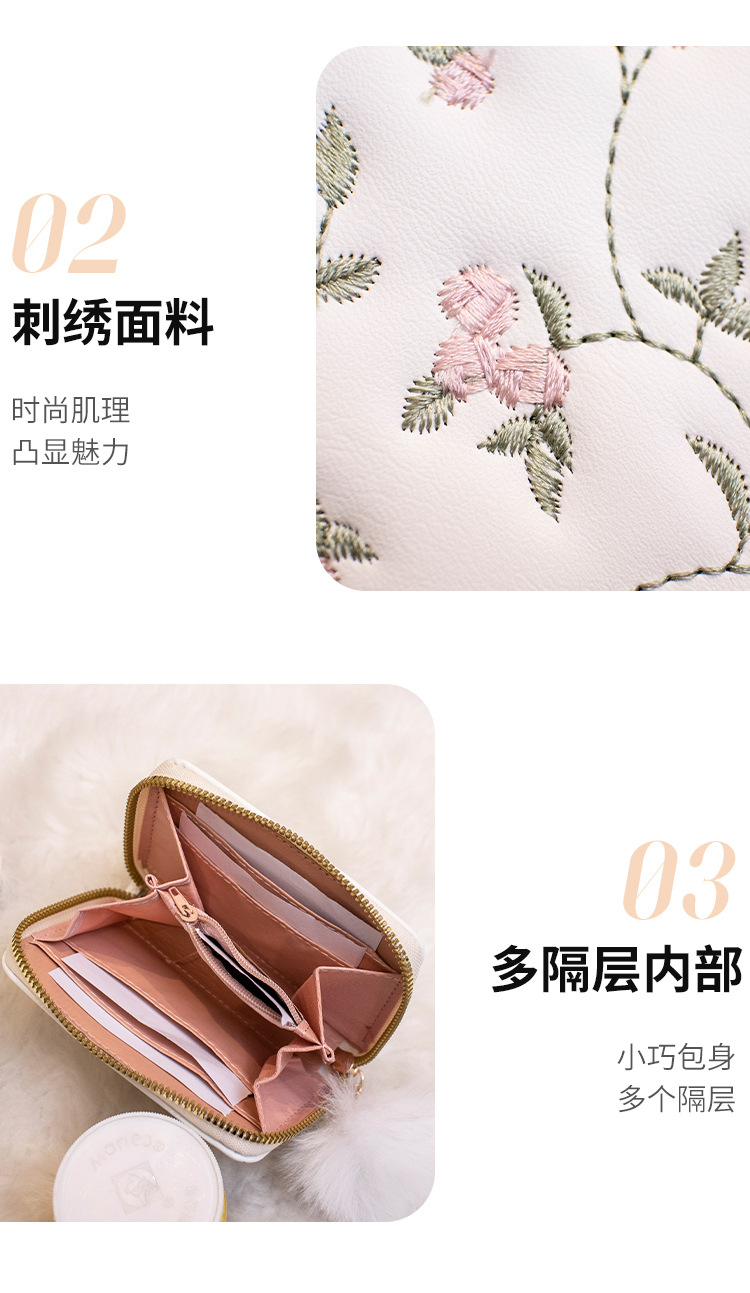 时尚短款刺小花钱包百搭零钱包外贸小包女士钱包毛绒挂件钱夹卡包