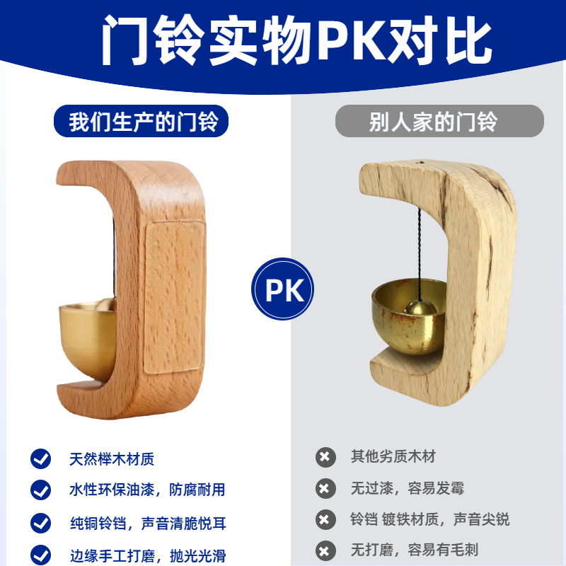 多巴胺门铃磁吸入户多风铃进门提醒家用装饰木质工艺品铜铃铛挂饰