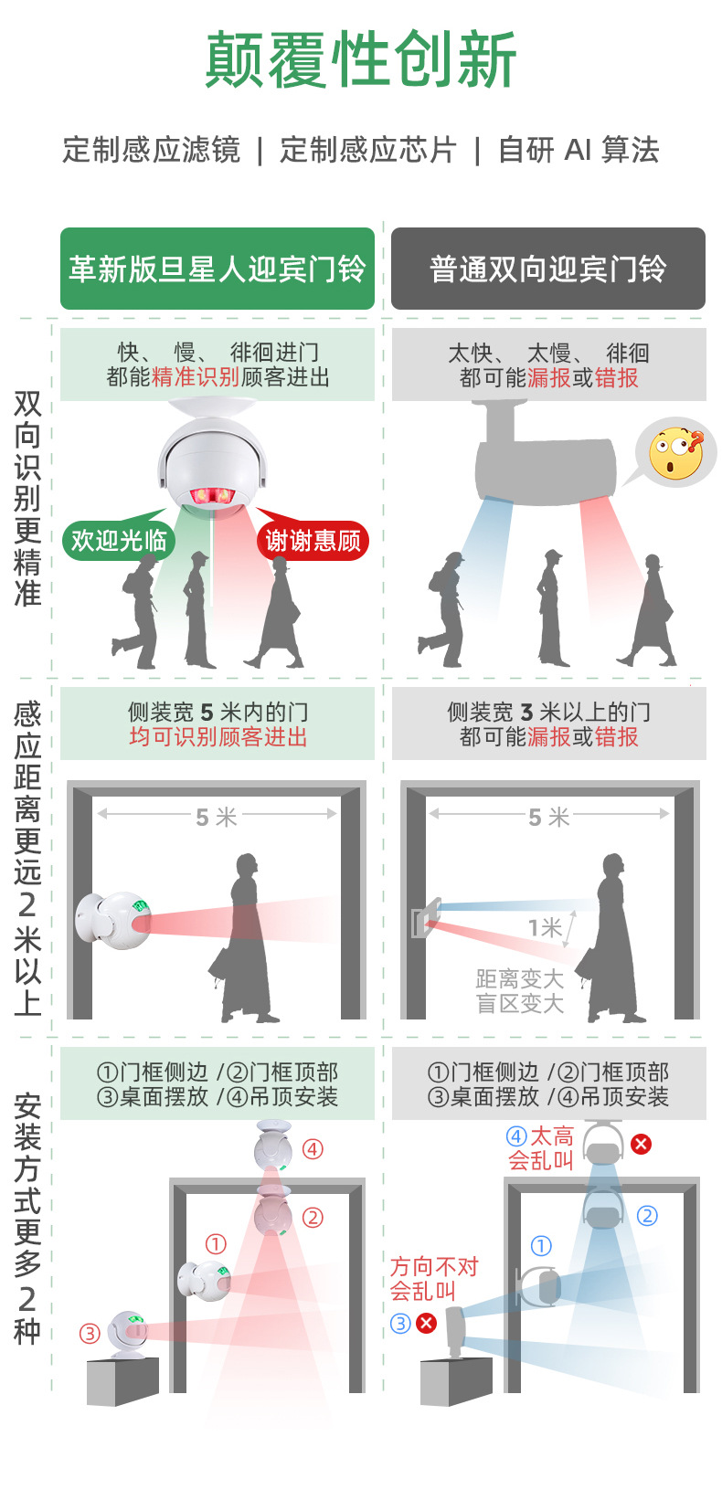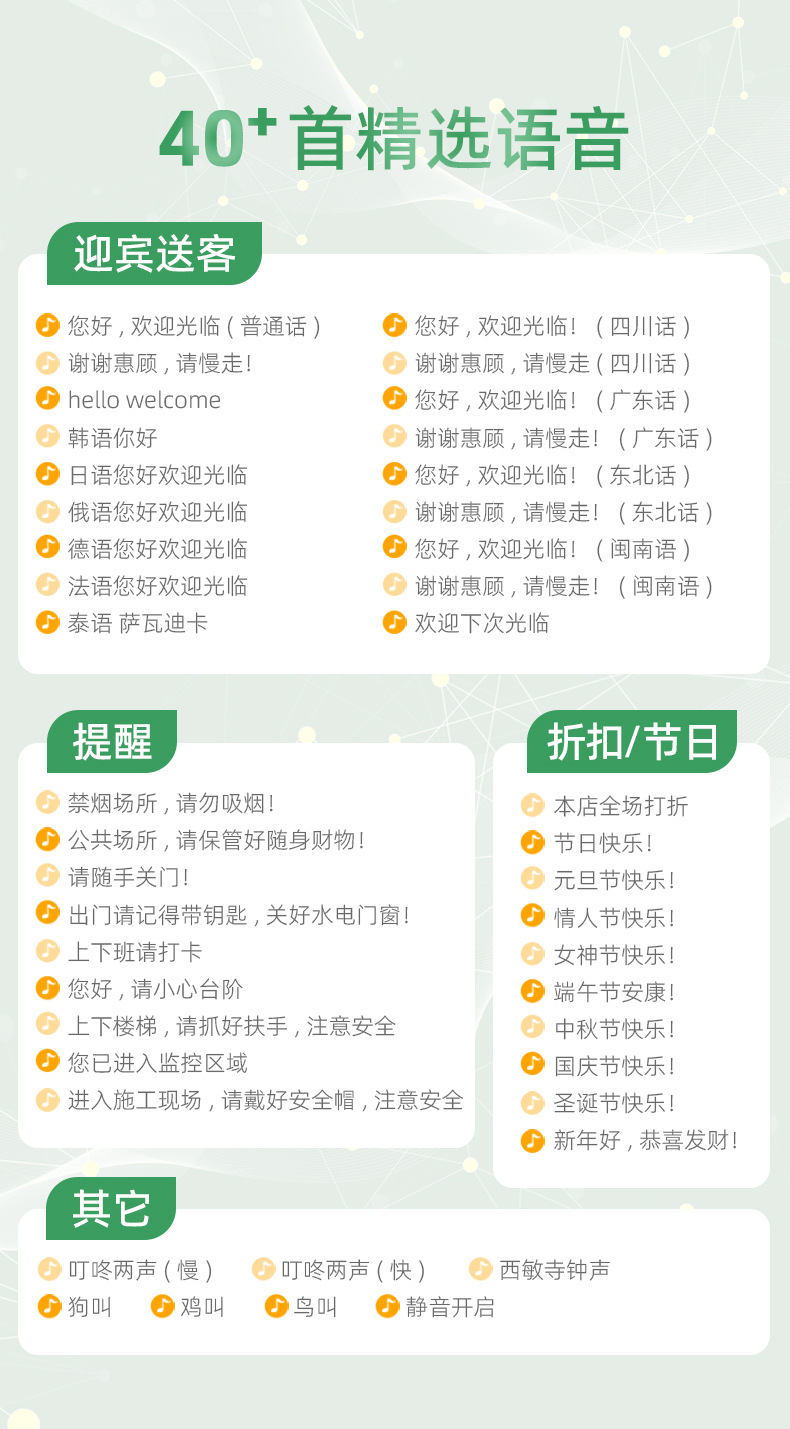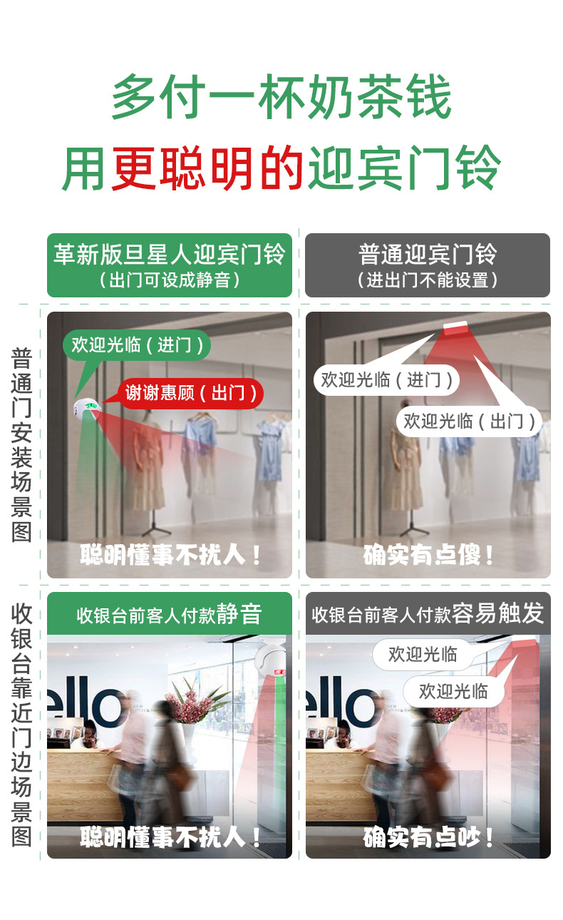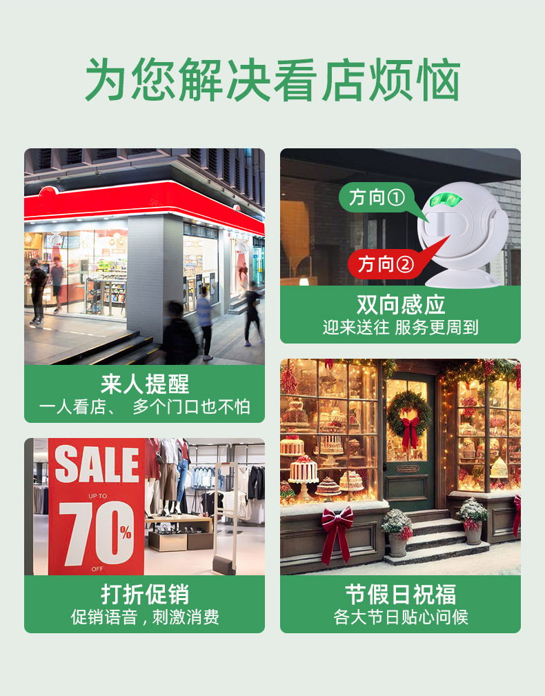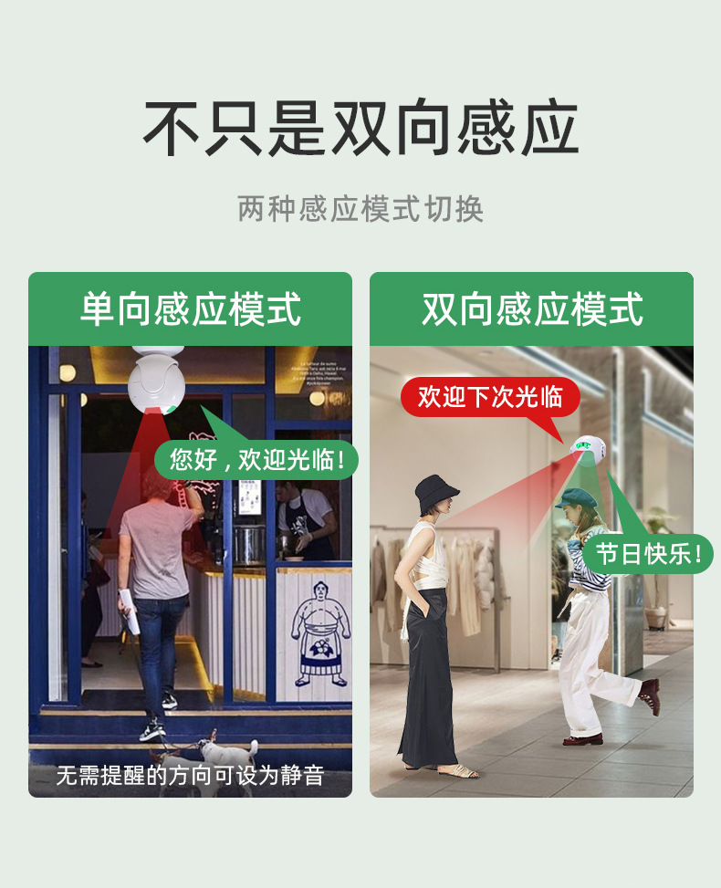 门铃欢迎光临双向迎宾感应器红外线店铺超市门口语音播报进门提示