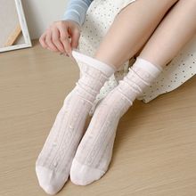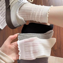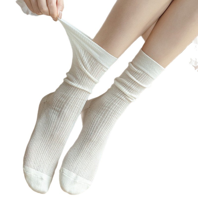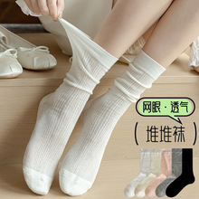 袜子女中筒袜夏季薄款纯色堆堆袜女春夏季网眼吸汗透气芭蕾风