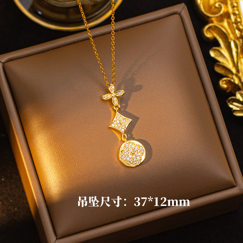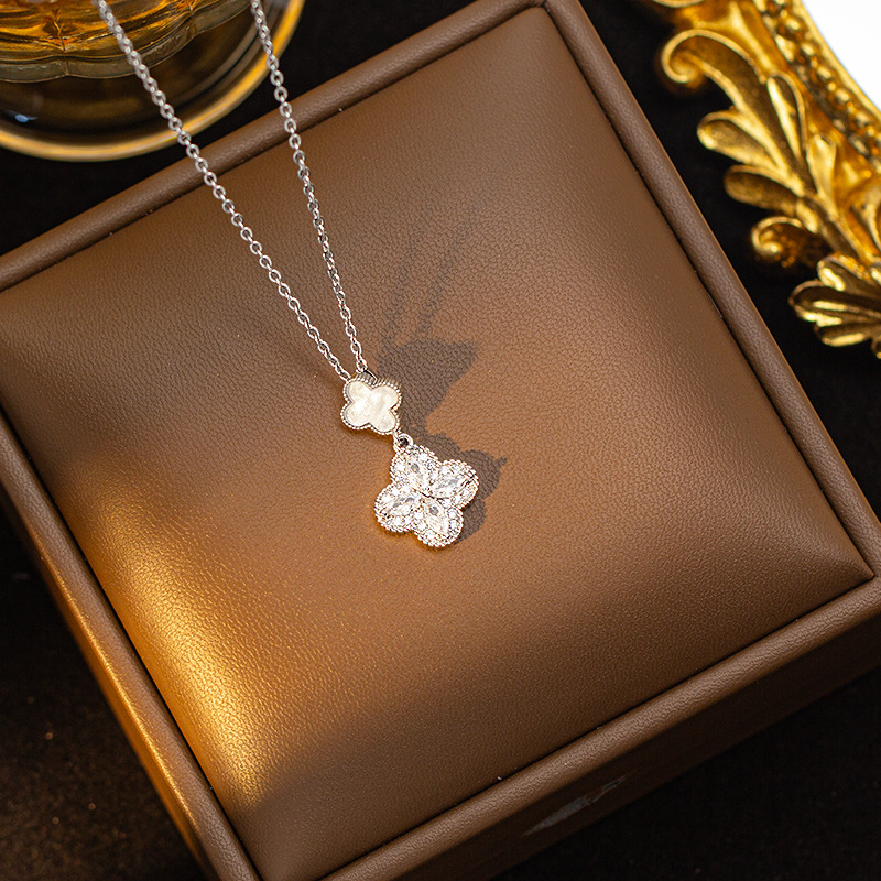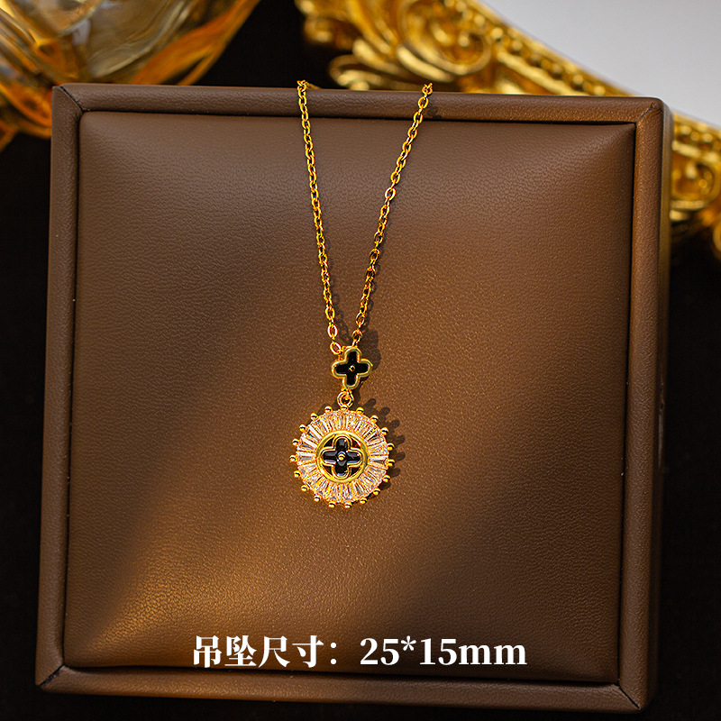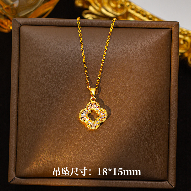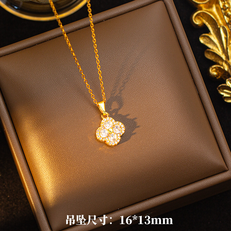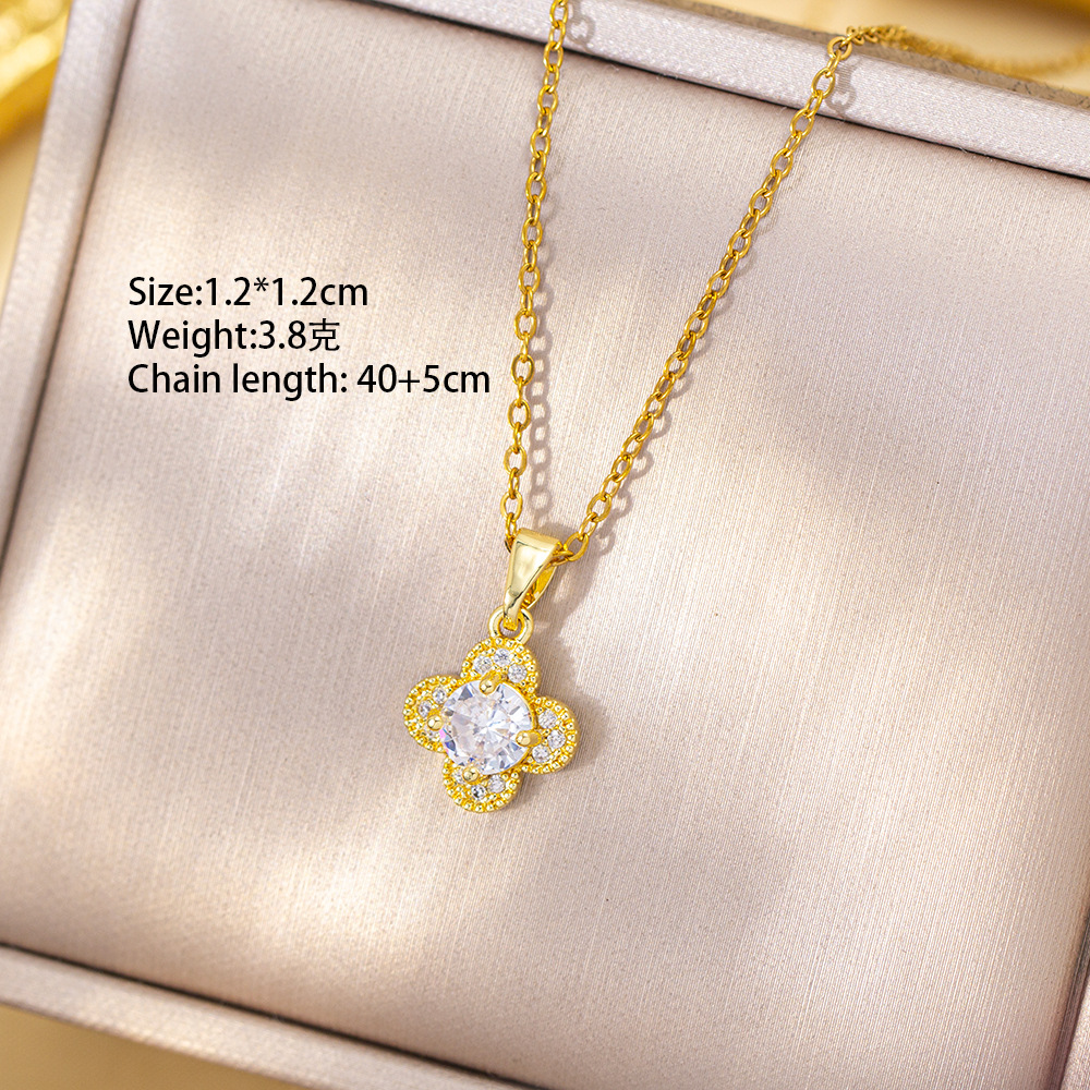 【铜镶锆】四叶草项链女钛钢真金电镀网红高级感花朵精致毛衣链饰