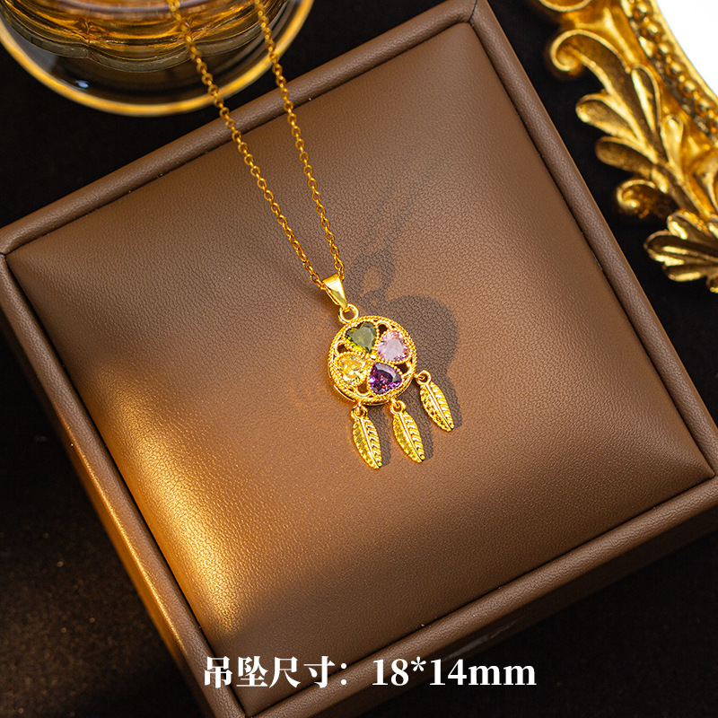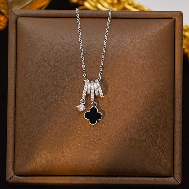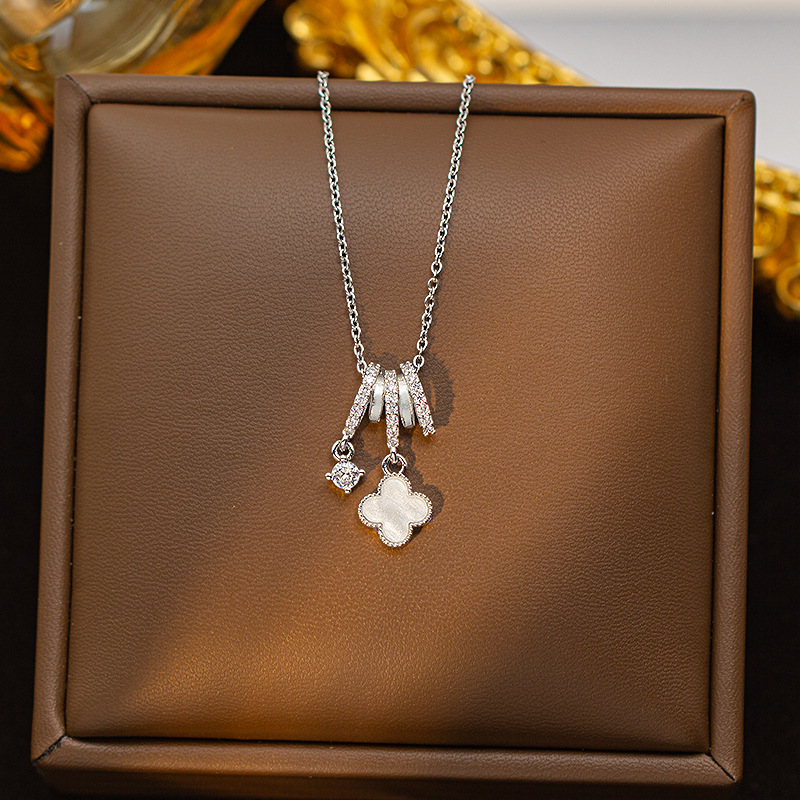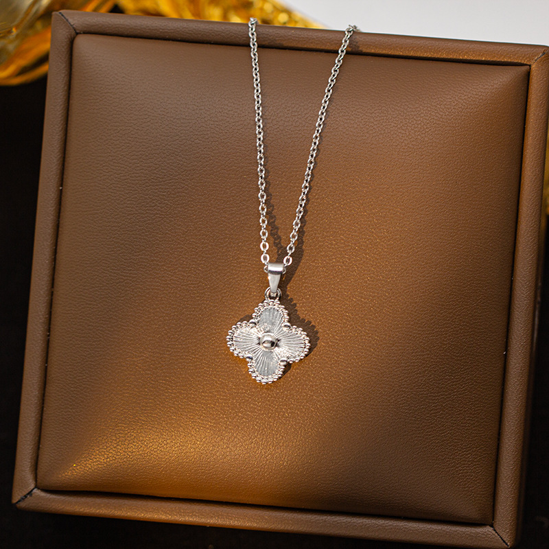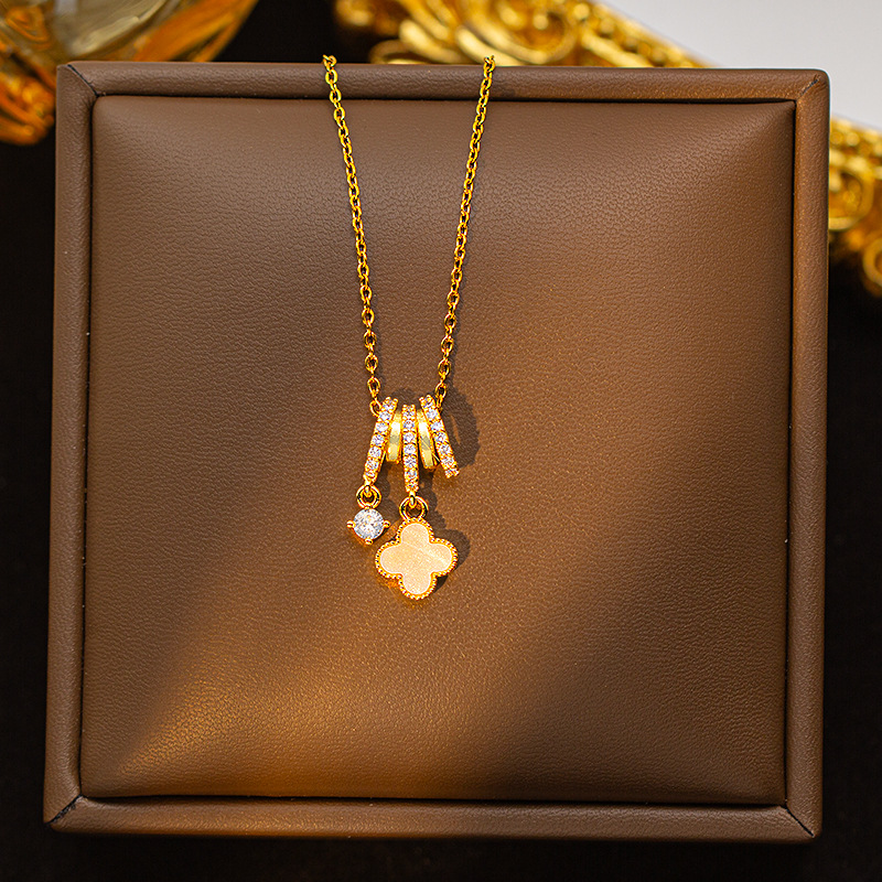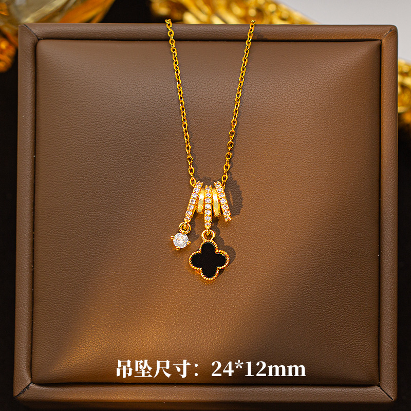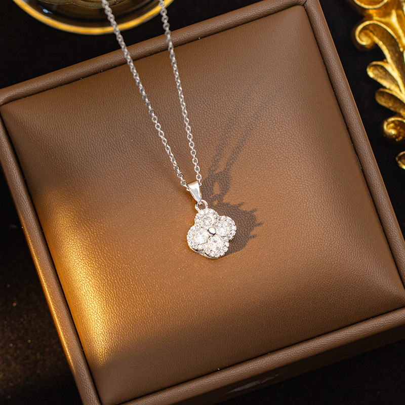 【铜镶锆】四叶草项链女钛钢真金电镀网红高级感花朵精致毛衣链饰