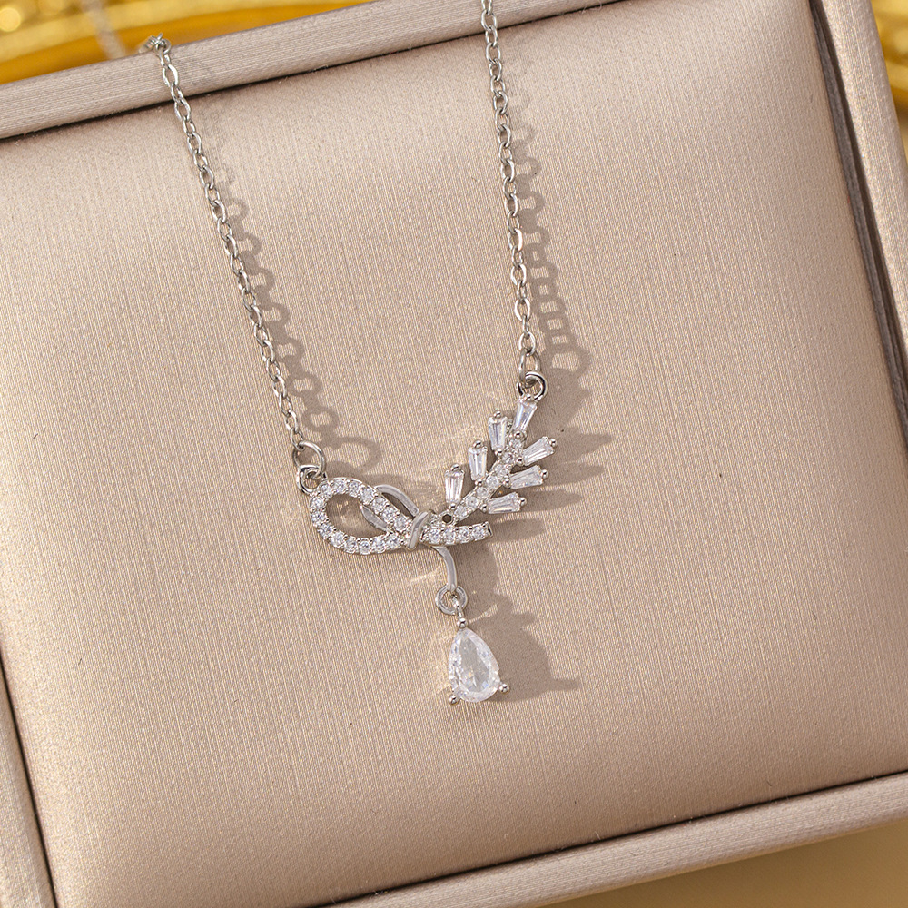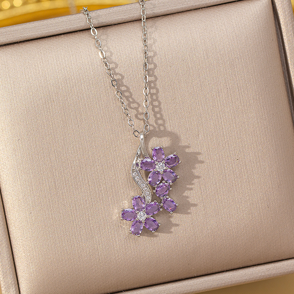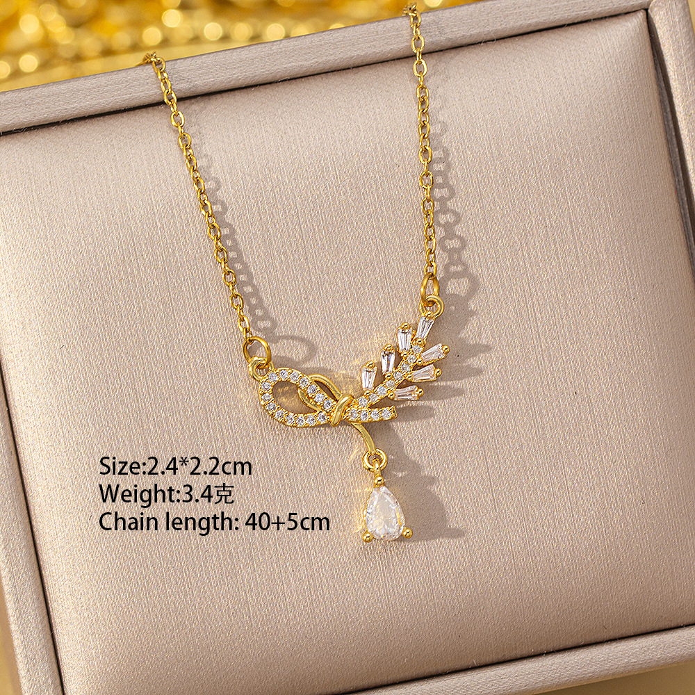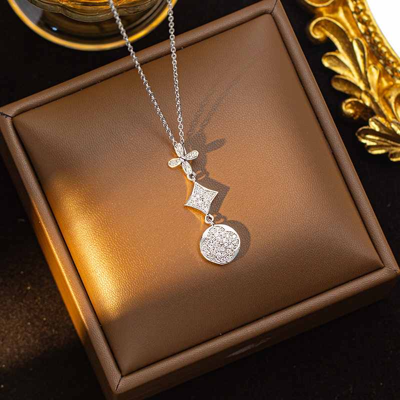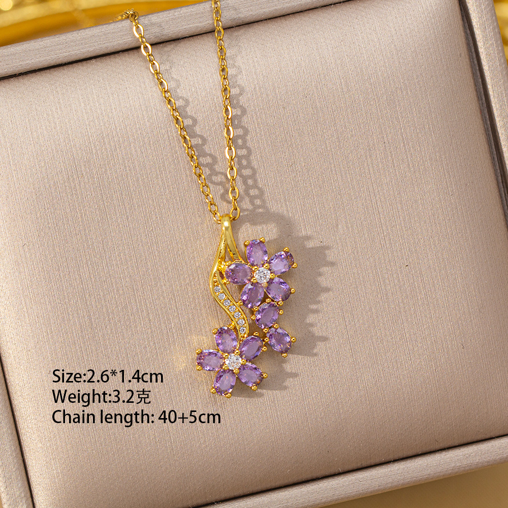 【铜镶锆】四叶草项链女钛钢真金电镀网红高级感花朵精致毛衣链饰