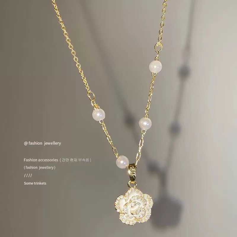 韩国ins风轻奢珍珠钛钢项链女百搭高级设计感吊坠锁骨链饰品批发
