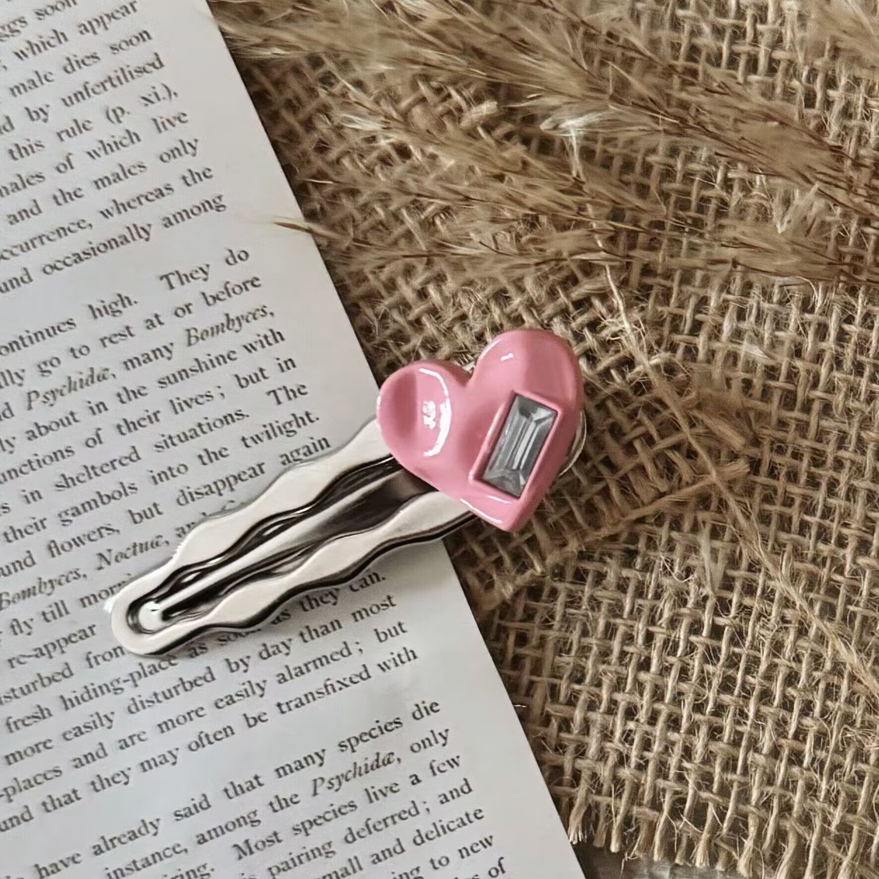 甜酷少女风爱心鸭嘴夹亮银色简约百搭波浪边夹高级感甜美发夹发饰